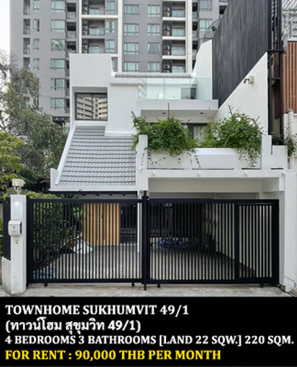 ทาวน์โฮมให้เช่า โครงการ : ทาวน์โฮม สุขุมวิท 49/1 ที่ตั้ง : ซอย สุขุมวิท 49/1 แขวงคลองตันเหนือ เขตวัฒนา กรุงเทพมหานคร อสังหาริมทรัพย์ : ทาวน์โฮม 3 ชั้น จำนวนห้องนอน / ห้องน้ำ : 3 ห้องนอน 3 ห้องน้ำ (1 ห้องทำงาน) ขนาดที่ดิน : 22 ตารางวา พื้นที่ใช้สอย : 220 ตารางเมตร รายละเอียด : เฟอร์นิเจอร์และเครื่องใช้ไฟฟ้าครบชุด สถานที่ใกล้เคียง : - รถไฟฟ้าบีทีเอสทองหล่อ - ร.พ.สมิติเวช สุขุมวิท ------------------------------------------------------- ราคาเช่า : 90,000 บาท / เดือน ------------------------------------------------------- ต้องการนัดหมายเข้าชมหรือต้องการข้อมูลเพิ่มเติม กรุณาติดต่อ เบอร์ติดต่อ : คลิกเพื่อดูเบอร์โทรติดต่อ [คุณนัท] LINE ID : @roomfinderthailand [ใส่ @ ด้วยครับ] WHAT'S APP : คลิกเพื่อดูเบอร์โทรติดต่อ WECHAT : saintz69 EMAIL : คลิกเพื่อดูอีเมล llllllllllllllllllllllllllllllllllllllllllllllllllllllllllllllllllllllllllllllllllllllll ROOMFINDER (THAILAND) CO.,LTD. PROPERTY AGENTS HOMEPAGE : www.facebook.com/roomfinderthailand ------------------------------------------------------- บริษัท รูมไฟเดอร์ (ไทยแลนด์) จำกัด ตัวแทนรับฝาก ขาย เช่า อสังหาริมทรัพย์ทุกชนิด