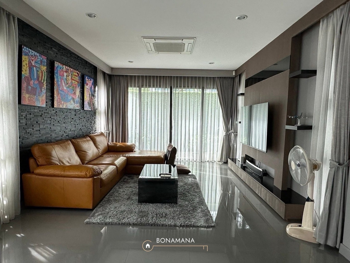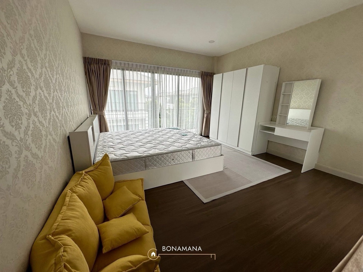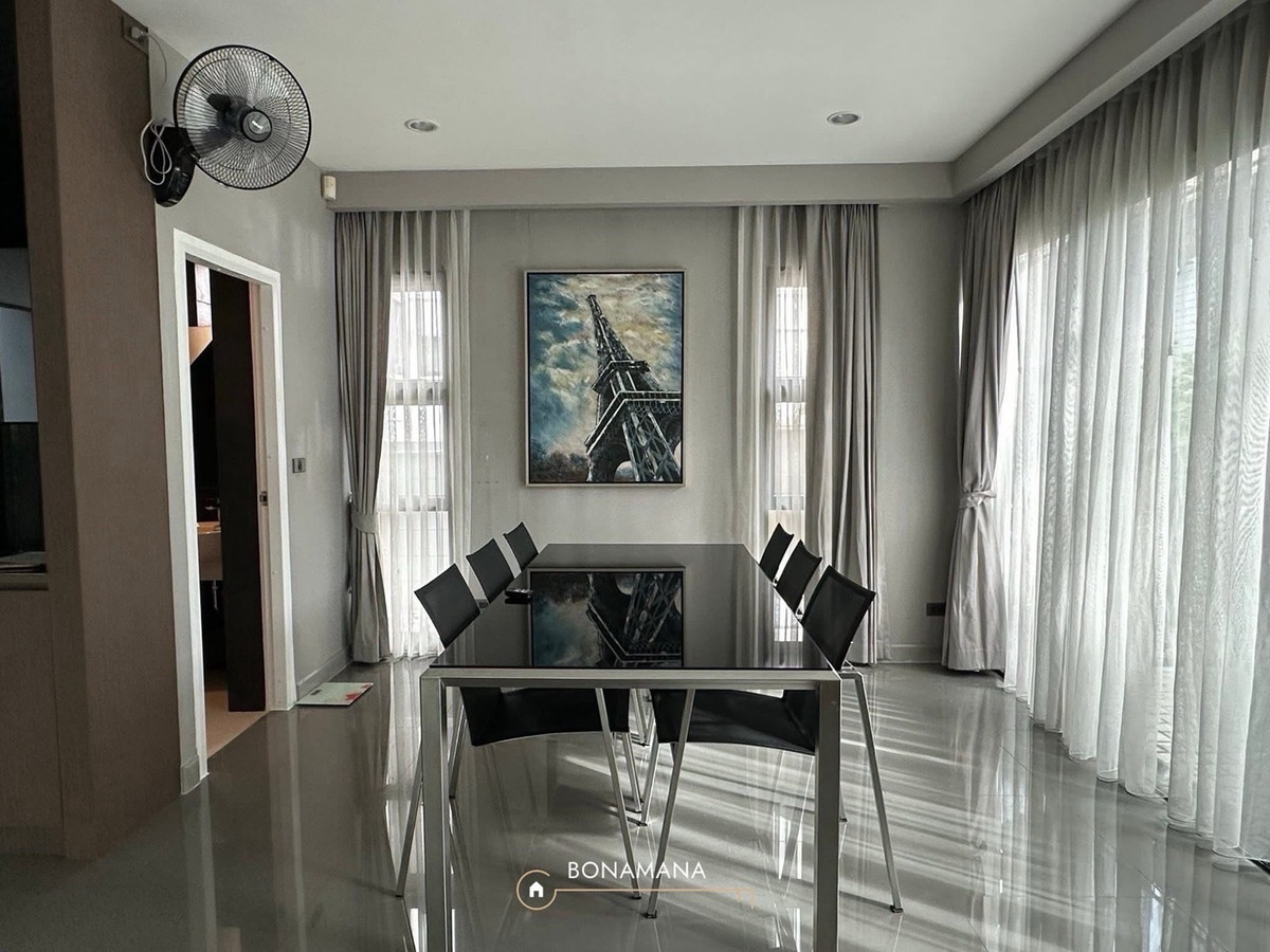 ขาย/เช่า บ้านตั้งอยู่ในโครงการ ลุมพินี สวนหลวง ร.9 บ้าน 3 ชั้น เนื้อที่ 54.5 ตรว. พื้นที่ใช้สอย 310 ตรม. 5 ห้องนอน 5 ห้องน้ำ (รวมห้องนอนและห้องน้ำแม่บ้าน) ครัว: มีทั้งครัวในบ้านและครัวนอกบ้าน ตกแต่งครบพร้อมเข้าอยู่ โปร่ง โล่ง สบาย ออกแบบให้มีแสงธรรมชาติเข้าถึงดี ที่จอดรถ 2 คัน ทำเลเงียบสงบ สวยงาม และสะดวกสบาย ใกล้สวนหลวง ร.9, ซีคอนสแควร์, พาราไดซ์พาร์ค และเมกาบางนา ซึ่งเป็นพื้นที่ที่มีความสะดวกในการอยู่อาศัยและการเดินทางเป็นอย่างยิ่ง ค่าเช่ารายเดือน: 109,000 บาท สัญญา: 1 ปี เงินประกัน 2 เดือน ล่วงหน้า 1 ขาย 16,900,0000 บาท สิ่งอำนวยความสะดวกและบริการเพิ่มเติม • มีบริการ Wi-Fi Internet รวมอยู่ในค่าเช่าแล้ว • ติดตั้ง เครื่องกรองน้ำ Coway • บริการดูแลสวนสัปดาห์ละ 1 ครั้ง • บริการดูแลภูมิทัศน์เดือนละ 1 ครั้ง • มีแม่บ้านทำความสะอาดอย่างละเอียดเดือนละ 2 ครั้ง สนใจติดต่อคุณตั้ง: คลิกเพื่อดูเบอร์โทรติดต่อ Line ID: @bonamana Whatsapp: คลิกเพื่อดูเบอร์โทรติดต่อ