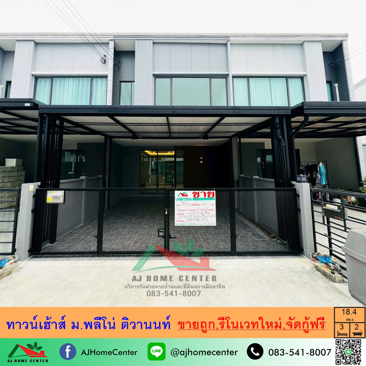 ขายถูก2.59ล้าน ทาวน์เฮ้าส์18.4ตรว. ม.พลีโน่ ติวานนท์ รีโนเวทใหม่ทั้งหลัง จัดกู้ฟรี . ทาวน์โฮม 2 ชั้น 18.4 ตรว. พื้นที่ใช้สอย 106 ตารางเมตร 3ห้องนอน 2ห้องน้ำ 1ห้องครัว 2ที่จอดรถ ***รีโนเวทใหม่ทั้งหลัง*** - ต่อเติมครัว+เคาท์เตอร์บิ้วท์อินครัว+เตาแก๊ส+เครื่องดูดควัน - ต่อเติมโรงจอดรถ+ปูกระเบื้อง - ปูพื้นลามิเนตใหม่ทั้งหลัง - ทำสีใหม่ทั้งหลัง - เปลี่ยนสุขภัณฑ์ใหม่ทั้งหมด - แถมแอร์ 1 ตัว / ปั๊มน้ำ+ถังเก็บน้ำ - ค่าส่วนกลาง/เดือน เดือนละ 800 บาท . ที่ตั้งทรัพย์สิน : ม.พลีโน่ ติวานนท์ ถ.ติวานนท์ ต.บางกะดี อ.เมืองปทุมธานี จ.ปทุมธานี พิกัด : https://maps.app.goo.gl/oBMowGJbUkGU3uHp6 การเดินทาง เริ่มจาก ถ.ศรีสมาน ⇒ แยกสวนสมเด็จฯ ⇒ ถ.ติวานนท์ ⇒ The Nine Center ขับตรงไปประมาณ 500 เมตรถึงโครงการ Pleno ติวานนท์ *ติดกรมปศุสัตว์ฯ . ราคาขาย 2.59 ล้านบาท . จุดเด่น - รีโนเวททั้งหลัง ต่อเติมครบ ราคาถูก กู้ได้100% - หน้ากว้าง 5.5 เมตร ขนาดของที่ดิน 18.4 ตร.ว. - ตัวโครงการติดถนนติวานนท์ ใกล้โรบินสัน ศรีสมาน เพียง 5 นาที - เดินทางสะดวก ทั้ง ถ.ติวานนท์ ถ.ศรีสมาน ถ.สรงประภา ถ.รังสิต-ปทุมธานี - ใกล้จุดขึ้นลงทางด่านบางพูน และ ด่านศรีสมาน - ใกล้รถไฟฟ้าสายสีแดง สถานีรังสิต (8.7 กม.) - บริการจัดสินเชื่อฟรีโดยมือาชีพ - มีบริการรับผ่อนตรง . สิ่งอำนวยความสะดวก ● คลับเฮ้าส์หรู ● สระว่ายน้ำระบบเกลือ ● ฟิตเนส ● สวนสาธารณะ ● สนามเด็กเล่น ● Multi Sport Club ● ระบบ KATSAN ● รปภ. 24 ชม. . สถานที่ใกล้เคียง ● กรมปศุสัตว์ : 50 เมตร ● เทศบาลตำบลบางกะดี : 100 เมตร ● The Nine Center ติวานนท์ : 500 เมตร (ระยะเดิน) ● Tesco Lotus บางกะดี : 550 เมตร (ระยะเดิน) ● สวนอุตสาหกรรมบางกะดี : 1 กม. ● นานาชาติสิรินธรฯ ม.ธรรมศาสตร์ (SIIT TU) : 1.1 กม. ● ตลาดพูนทรัพย์ : 2.5 กม. ● ตลาดนกฮูก 2 : 2.5 กม. ● ตลาดปู่โพธิ์ : 2.8 กม. ● ตลาดฐานเพชรปทุมพลาซ่า : 3 กม. ● ตลาดน้ำวัดมะขาม (วัดศาลเจ้า) : 3.4 กม. ● Robinson ศรีสมาน : 7.2 กม. ● เวิร์คพอยท์ : 8.3 กม. ● อิมแพคเมืองทองธานี : 9.2 กม. . สนใจติดต่อ คุณแบงค์ เบอร์โทรศัพท์ คลิกเพื่อดูเบอร์โทรติดต่อ / คลิกเพื่อดูเบอร์โทรติดต่อ / คลิกเพื่อดูเบอร์โทรติดต่อ