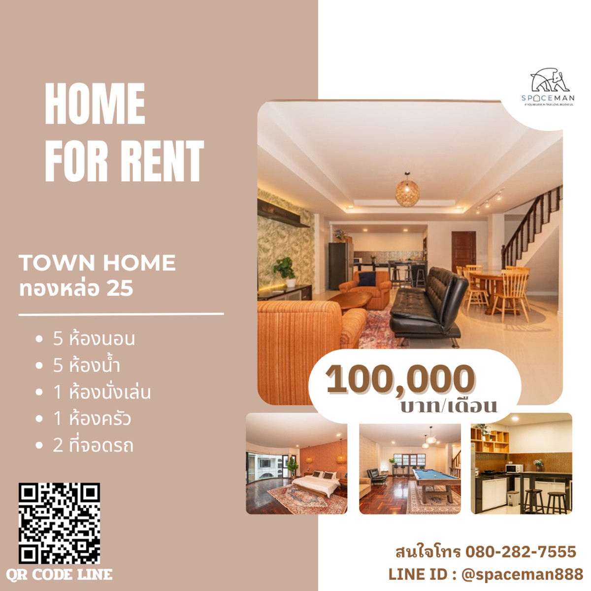✅ ราคาเช่า 100,000 บาท / เดือน 📣🌈🏡 เช่าบ้านหรู ใจกลางทองหล่อ ซอย 25 เหมาะกับครอบครัวใหญ่ แต่งสไตล์โมเดริ์น มีโต๊ะพูล 👉 พื้นที่ใช้สอย 400 ตรม. 👉 5 ห้องนอน 🛁 5 ห้องน้ำ 👉 1 ห้องนั่งเล่น 🍽️ 1 ห้องครัว 🚙 4