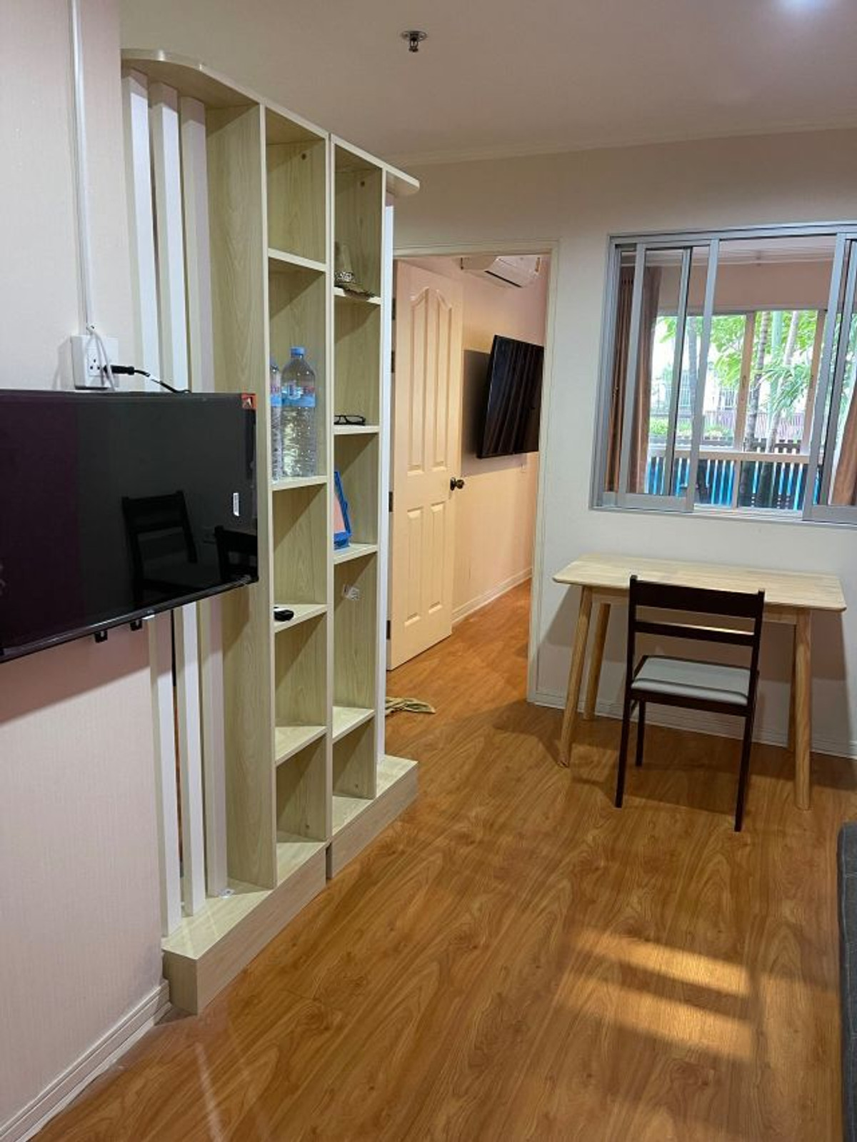 1 ห้องนอน 1 ห้องน้ำ 30.4ตรม ชั้น 4 8500/เดือน มัดจำ 2 เดือน ล่วงหน้า 1 เดือน สัญญาขั้นต่ำ 1 ปี เฟอร์นิเจอร์ - โซฟา - โต๊ะรับประทานอาหาร + เก้าอี้ - ชั้นวางทีวี - เตียง + ฟูก เครื่องใช้ไฟฟ้า - ทีวี - ต