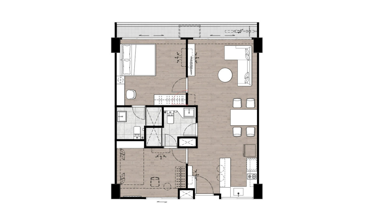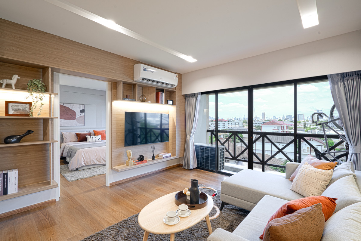 คอนโดห้องใหญ่ รามคำแหง 22 ตกแต่งสำเร็จพร้อมเข้าอยู่ เฟอร์นิเจอร์ครบทุกห้อง 2 ห้องนอน 2 ห้องน้ำ