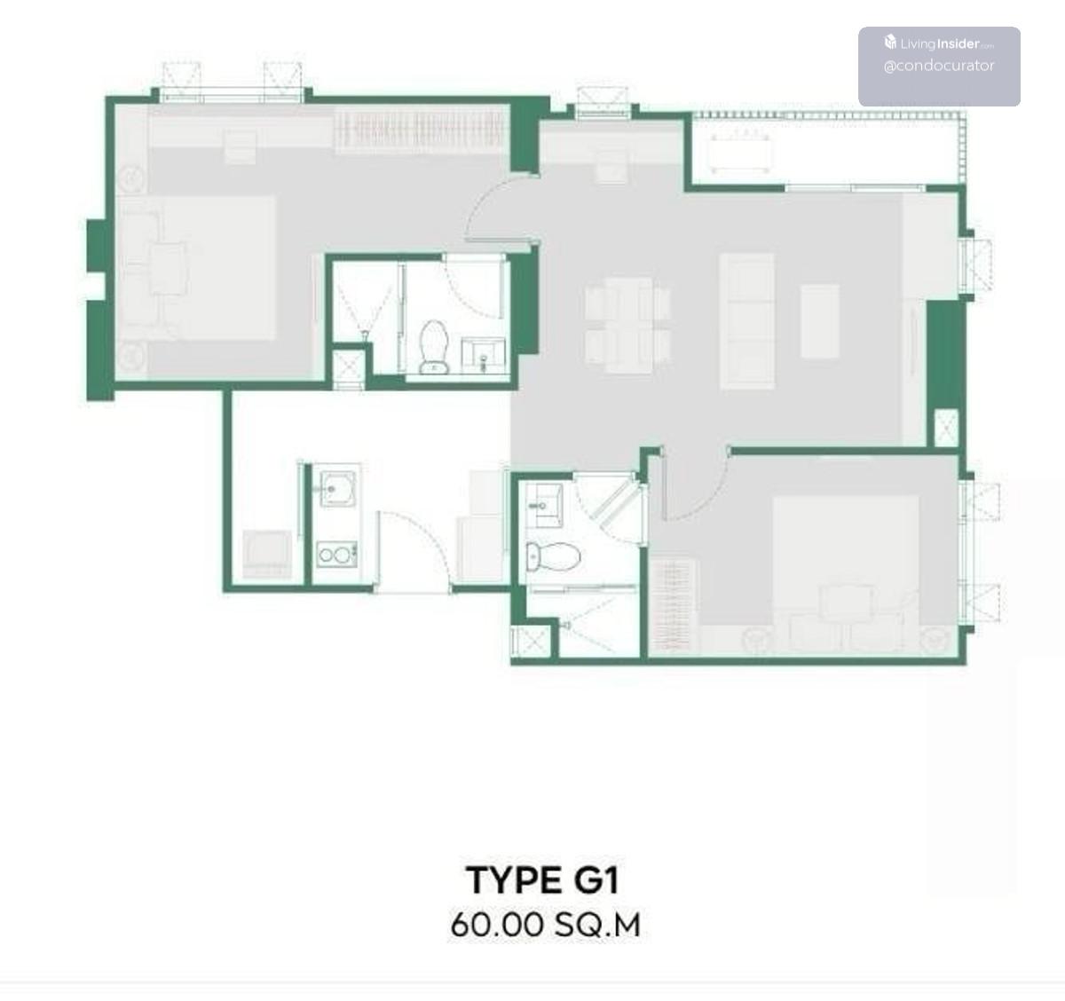 พื้นที่ใช้สอย 60.88 ตร.ม.