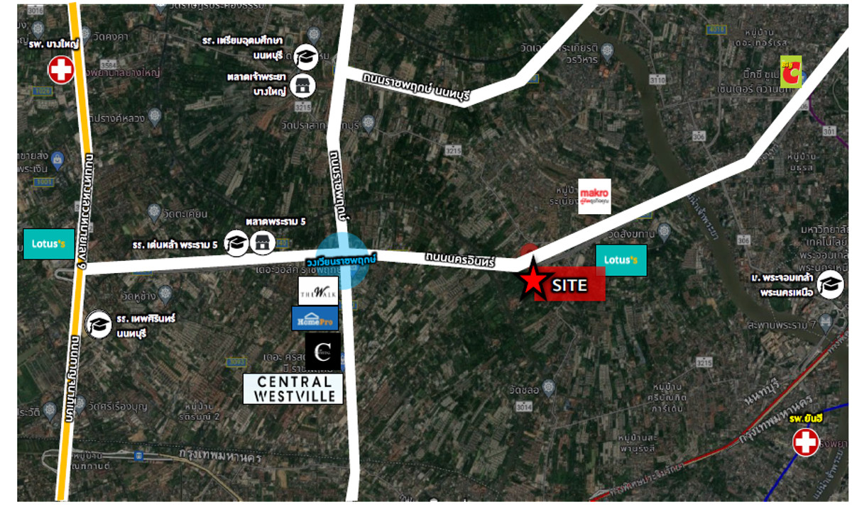 University 9 นาที โรงเรียนอนุบาลเด่นหล้า พระราม 5 11นาที โรงเรียนเทพศิรินทร์นนทบุรี 11นาที ม.เทคโนโลยีพระจอมเกล้าพระนครเหนือ Mall 4 นาที แม็คโครนครอินทร์ 6นาที The Walk ราชพฤกษ์ 8 นาที บิ๊กซี ติวานนท์ 11นาที Central Westville 15 นาที โฮมโปร ราชพฤกษ์15 นาที The Crystal Crystalราชพฤกษ์