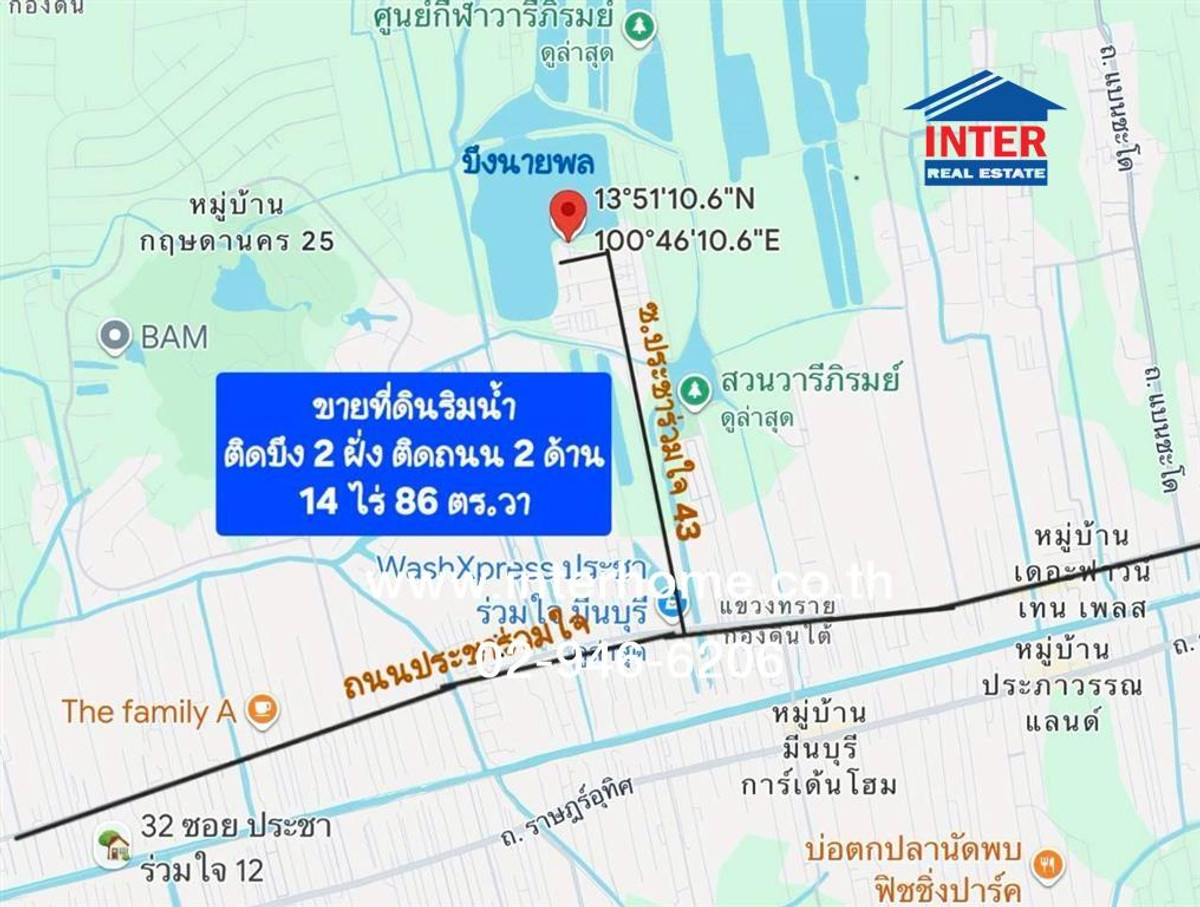 คุณ ภิญญาลักษณ์ เทพบุตร (ยุ้ย) เบอร์ติดต่อ : คลิกเพื่อดูเบอร์โทรติดต่อ Office : คลิกเพื่อดูเบอร์โทรติดต่อ สอบถามทางไลน์ https://lin.ee/xTo07Pn Line ID: @interhome รหัสอสังหาริมทรัพย์ : 65397 ขนาด 14 ไร่86 ตร.ว. ที่ตั้ง : ที่ดิน ติดบึงจอมพล ซอยประชาร่วมใจ43 (ซอยบึงจอมพล) ถ.ประชาร่วมใจ เขตคลองสามวา กรุงเทพมหานคร รายละเอียด ใกล้แฟชั่นไอซ์แลนด์ ใกล้โลตัสมีนบุรี ใกล้บิ๊กซีสุวินทวงศ์ ใกล้สวนวารีภิรมย์ ขายที่ดินเปล่า ติดบึงจอมพล ซอยประชาร่วมใจ43 (ซอยบึงจอมพล) ถนนประชาร่วมใจ ถนนนิมิตรใหม่ แขวงทรายกองดินใต้ เขตคลองสามวา กรุงเทพมหานคร ขายด่วน!!ที่ดินแปลงสวย วิวน้ำ ติดบึง 2 ฝั่ง ติดถนน 2 ด้าน ไม่ต้องถม เหมาะกับทำบ้านพักตากอากาศริมน้ำ สามารถสร้างโกดัง หรือ คลังสินค้าได้ อยู่ในพื้นที่สีขาวทแยงม่วง ( อุตสาหกรรมไม่เป็นพิษต่อชุมชน ) หน้ากว้างประมาณ 200 ม. ลึกประมาณ 100 ม. เนื้อที่ 14ไร่ 86 ตร.วา ไร่ละ 4,000,000 บาท ตารางวาละ 10,000 บาท ทำเลดี สถานที่ใกล้เคียง ใกล้แฟชั่นไอซ์แลนด์ ใกล้โลตัสมีนบุรี ใกล้บิ๊กซีสุวินทวงศ์ ใกล้สวนวารีภิรมย์ ใกล้ รร.สารสาสน์นิมิตใหม่ ใกล้ รร.อินเตอร์ คิดส์ นิมิตใหม่ ใกล้ รร.โชคชัยหทัยราษฎร์ ใกล้ ตลาดมีนบุรี โรงพยาบาลนวมินทร์ 9 ธานนท์ กอล์ฟวิว แอนด์ สปอร์ตคลับ การเดินทางสะดวก ถนนประชาร่วมใจ ถนนนิมิตใหม่ ถนนสุวินทวงศ์ ถนนราษฎร์อุทิศ บริษัท อินเตอร์โฮม เรียลตี้ เอสเตท จำกัด Interhome Realty Estate www.interhome.co.th โทร. คลิกเพื่อดูเบอร์โทรติดต่อ https://www.interhome.co.th/propertydetail.php?propcode=65397