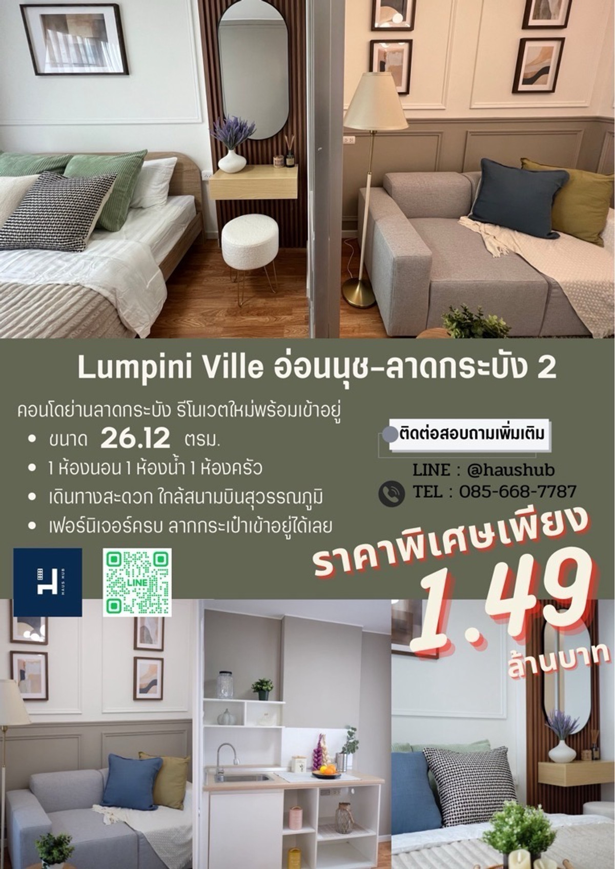 ✨คอนโดแต่งใหม่ ทำเลทอง ย่านลาดกระบัง✨ ผ่อนเบา ๆ เท่าค่าเช่า แต่ได้เป็นเจ้าของจริง! 📍 ลุมพินี วิลล์ อ่อนนุช-ลาดกระบัง 2 โครงการน่าเชื่อถือ ทำเลเยี่ยม เดินทางสะดวก เข้าเมืองง่าย ใกล้สนามบินสุวรรณภูมิ 🛋 ขนาด 26.12ตร.ม. • 1 ห้องนั่งเล่น | 1 ห้องนอน | 1 ห้องน้ำ 🎨 รีโนเวตใหม่ สไตล์อบอุ่น ตกแต่งสวยครบ 🏡 ห้องโปร่ง กว้าง อยู่สบายเหมือนอยู่บ้าน 🌿 ส่วนกลางร่มรื่น มีมุมพักผ่อนใกล้ธรรมชาติ 🧳 พร้อมเข้าอยู่ได้ทันที 🚗 เดินทางง่าย ใกล้สิ่งอำนวยความสะดวก • สนามบินสุวรรณภูมิ • Robinson ลาดกระบัง • ตลาด ของกิน และแหล่งชุมชนครบ 💰 ราคาเพียง 1.49 ล้านบาท 📉 ผ่อนรายเดือนเบา ๆ เหมือนจ่ายค่าเช่า แต่ได้เป็น "เจ้าของ" 📩 สนใจทักมาได้เลย 🤝 มีบริการยื่นกู้ครบจบ พร้อมให้คำปรึกษาฟรี เหมาะทั้งสำหรับอยู่อาศัยเอง หรือซื้อไว้ลงทุนปล่อยเช่า คุ้มมาก! สนใจติดต่อ คลิกเพื่อดูเบอร์โทรติดต่อ