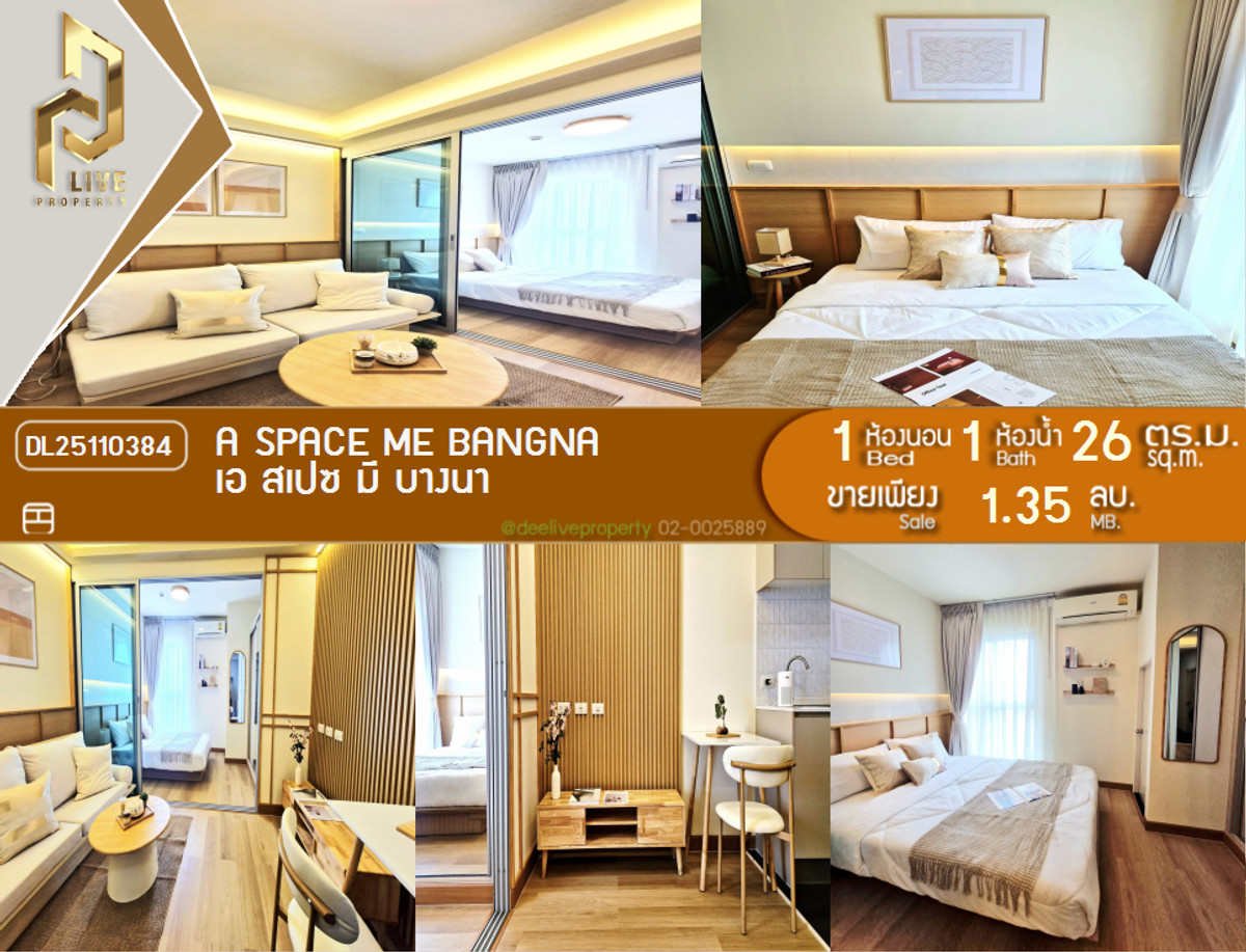DL25110384 ขายด่วน แต่งสวย เฟอร์ครบ คอนโด เอ สเปซ มี บางนา (A SPACE ME BANGNA) ควรค่าแก่การลงทุน ใกล้ Mega Bangna แอดไลน์ @897iyzll - 1 ห้องนอน 1 ห้องน้ำ - ชั้น 12 ขนาด 26 ตร.ม. ราคาเพียง 1,350,000 บาท สถานที่สำคัญใกล้เคียง 1. Mega Bangna 2. IKEA 3. เซ็นทรัลบางนา 4. พาราไดซ์ พาร์ค 5. ซีคอน สแควร์ ศรีนครินทร์ 6. แม็คโคร 7. บุญถาวร 8. บิ๊กซี 9. สนามบินสุวรรณภูมิ (15 นาที) สิ่งอำนวยความสะดวก – Lobby – สระว่ายน้ำลอยฟ้าชั้น 26 – ฟิตเนสลอยฟ้าชั้น 26 – รปภ. – ประตู Key Card – รถรับส่ง – สวนหย่อม สนใจติดต่อ พิกซ์เอเจนท์ Deelive Property โทรด่วน คลิกเพื่อดูเบอร์โทรติดต่อ , คลิกเพื่อดูเบอร์โทรติดต่อ Line id : @897iyzll