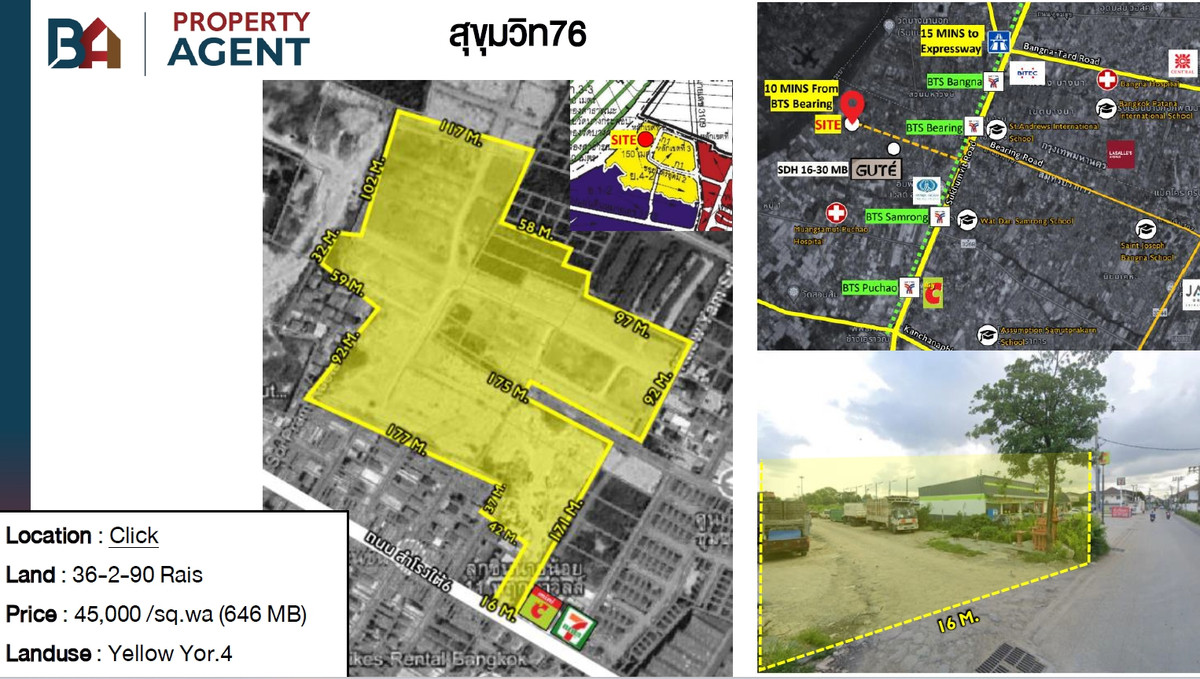 ที่ดินแปลงสวย ทำเลสุขุมวิท76 ใกล้ BTS และโรงพยาบาล ขนาด 35 ไร่ 3งาน ราคา645.84ลบ.