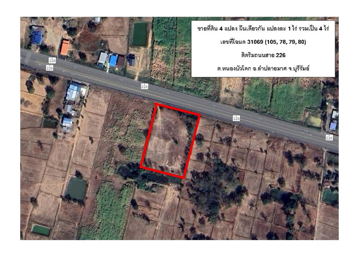 ขายที่ดินบุรีรัมย์ ต.หนองบัวโคก อ.ลำปลายมาศ ติดริมถนนสาย 226