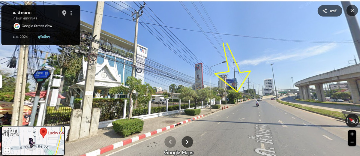 ขายที่ดิน 423 ตารางวา ติดถนนใหญ่ซอยรามคำแหง 24 รถผ่านตลอด เหมาะค้าขายหรือโครงการพาณิชย์ แปลงหัวมุมสวย ที่ดินเนื้อที่ 423 ตารางวา ผังเมือง: สีส้ม ย.6-20 ในแปลงที่ดินมีบ้านสภาพเก่าอยู่ในพื้นที่ หน้ากว้างติดถนนรามคำแหง 24 ประมาณ 24.50 เมตร ความลึกด้านละประมาณ 72–74 เมตร แปลงสี่เหลี่ยมผืนผ้าใช้พื้นที่ได้เต็มแปลง ตำแหน่ง: หัวมุมซอยหัวหมาก 4 – รามคำแหง 24 สามารถออกซอยรามคำแหง 50 และซอยศรีนครินทร์ 4 ได้ เดินทางเชื่อมต่อ รามคำแหง ศรีนครินทร์ จุดเด่นเฉพาะแปลง -แปลงหัวมุม มองเห็นชัดเจนจากทั้งสองด้าน -ติดถนนใหญ่ในซอยรามคำแหง 24 สัญจรสะดวก ห่างถนนศรีนครินทร์ แค่ 200เมตร -ใกล้รถไฟฟ้าสายสีส้ม (สถานีหัวหมาก) 250เมตร ระยะเดินได้ -เดินทางเชื่อมต่อหลายเส้นทาง รามคำแหง ศรีนครินทร์ พระราม 9 ความเหมาะสมในการใช้งาน -เหมาะสร้างบ้านหลังใหญ่ หรือบ้านหลายหลัง ทำโครงการพัฒนาที่อยู่อาศัย ทาวน์โฮม หรือโฮมออฟฟิศ -เหมาะสร้างสำนักงานขนาดใหญ่ หรือธุรกิจที่ต้องการพื้นที่ใช้สอยมาก รายล้อมด้วยชุมชน มหาวิทยาลัย ร้านค้า ตลาด และโครงการที่อยู่อาศัย ที่ตั้ง ซอยรามคำแหง 50 (หัวมุมซอยหัวหมาก 4 – ติดถนนรามคำแหง 24) แขวงหัวหมาก บางกะปิ กรุงเทพมหานคร 10240 ราคาขาย 50,760,000บาท (ตารางวาละ 120,000บาท) สอบถามเพิ่มเติม รบกวนแจ้งรหัสทรัพย์ T3614 คุณโอม คลิกเพื่อดูเบอร์โทรติดต่อ แอดไอดีไลน์ : @thenine18 (มี@ข้างหน้าด้วย) https://page.line.me/thenine18