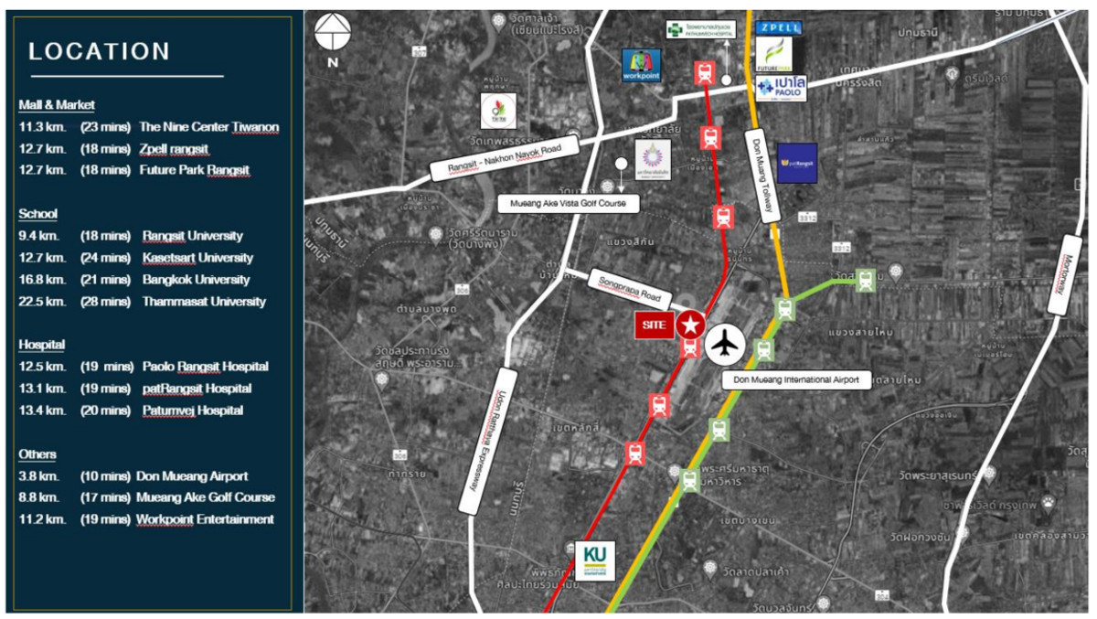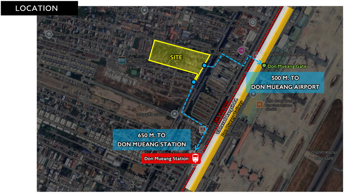 ห้ามพลาด!! ภาพรวมทำเลทอง! (1) ถนนทางเข้า-ออกโครงการ/ที่ดิน: กว้างขวาง สะดวกต่อการขนส่งและเดินทาง (2) บริเวณด้านหน้าโครงการ/ทางเข้า: แสดงความโดดเด่นและพร้อมใช้งานของพื้นที่ (3) สภาพถนนด้านข้างที่ดิน: ถนนกว้างขวาง สัญจรสะดวก (4) สภาพถนนเข้าสู่ชุมชน/พื้นที่ใกล้เคียง: เชื่อมต่อกับพื้นที่อยู่อาศัยและย่านธุรกิจได้อย่างง่ายดาย 📍 จุดเด่นของทำเล - ตั้งอยู่ในโซนที่มีความหนาแน่นของที่พักอาศัยและธุรกิจสูง - ถนนเส้นหลักสามารถเข้าถึงได้สะดวก เชื่อมต่อกับเส้นทางสำคัญ - เหมาะอย่างยิ่งสำหรับการพัฒนาเป็นโครงการจัดสรร คลังสินค้า โรงงานขนาดเล็ก หรืออาคารพาณิชย์ Location ใกล้ๆ กับ Mall & Market 11.3 km. (23 mins) The Nine Center Tiwanon 12.7 km. (18 mins) Zpell rangsit 12.7 km. (18 mins) Future Park Rangsit School 9.4 km. (18 mins) Rangsit University 12.7 km. (24 mins) Kasetsart University 16.8 km. (21 mins) Bangkok University 22.5 km. (28 mins) Thammasat University Hospital 12.5 km. (19 mins) Paolo Rangsit Hospital 13.1 km. (19 mins) patRangsit Hospital 13.4 km. (20 mins) Patumvej Hospital Others 3.8 km. (10 mins) Don Mueang Airport 8.8 km. (17 mins) Mueang Ake Golf Course 11.2 km. (19 mins) Workpoint Entertainment ขายที่ดินสวย ทำเลเข้าออกสะดวก ราคาต่อรองได้ ต้องการพิกัดแผนที่ หรือ ข้อมูลเพิ่มเติม แชท/โทร มาคุยได้ (เจ้าของขายเอง)