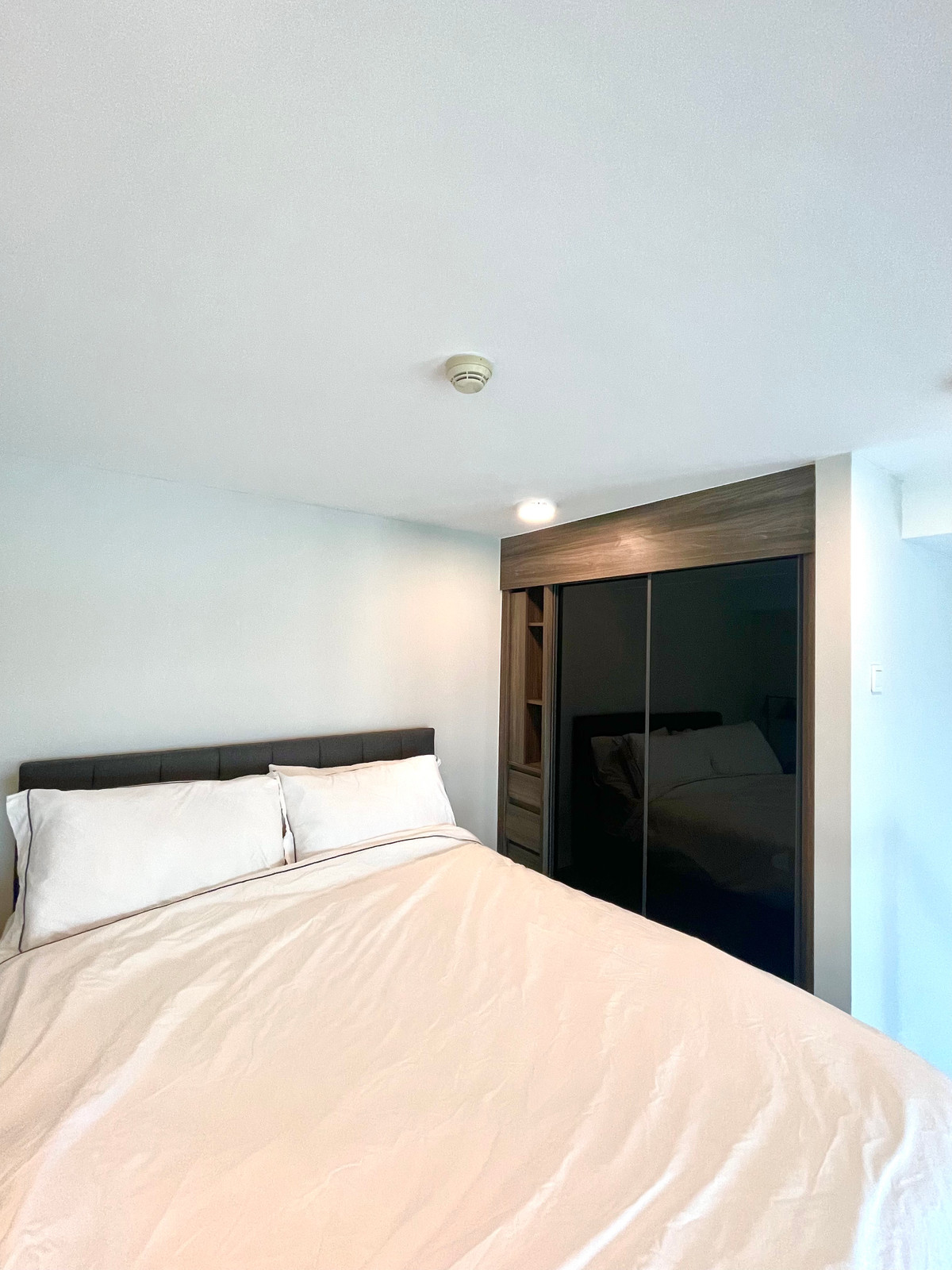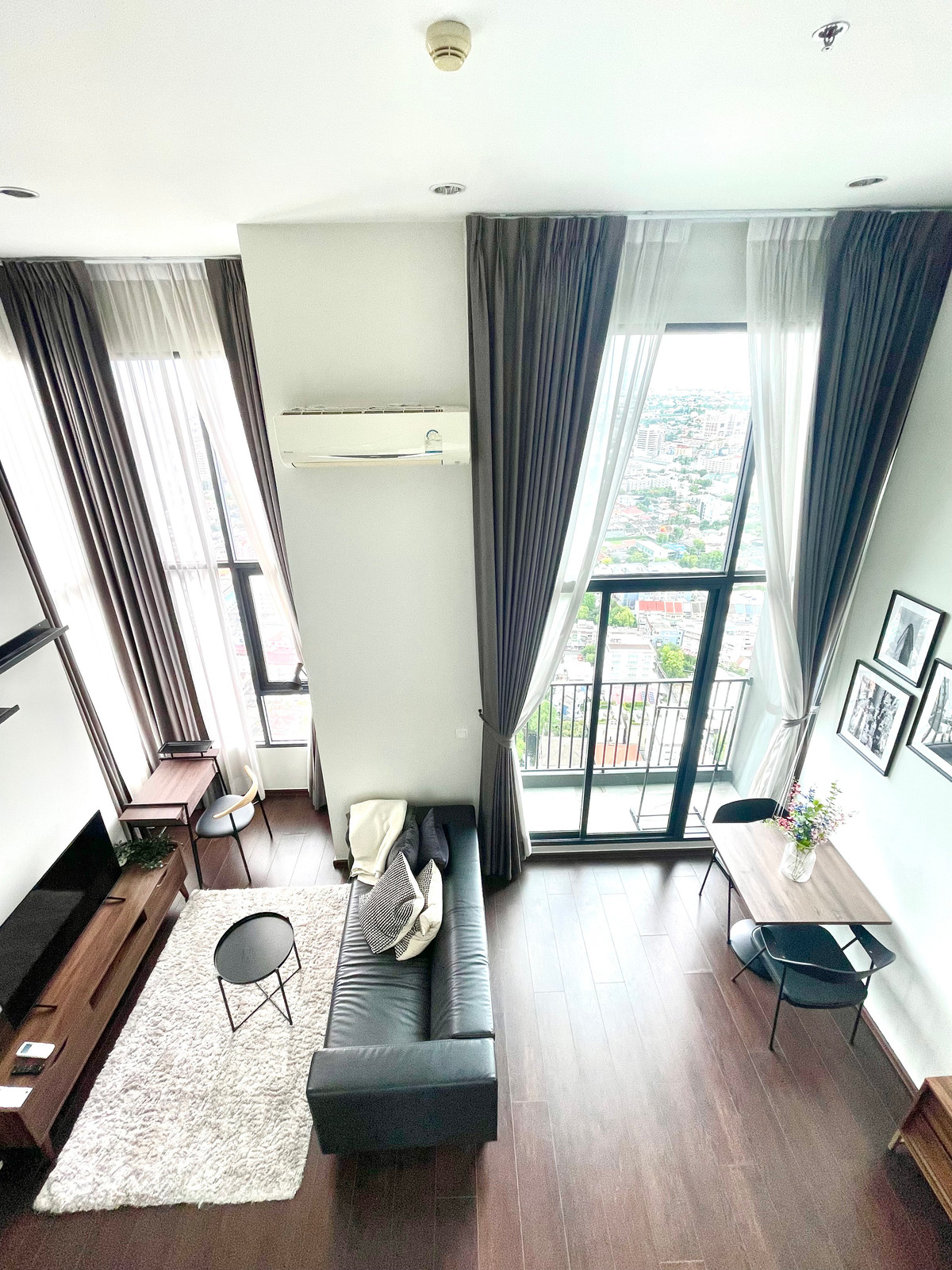 รายละเอียด 🛏️ 1 ห้องนอนดูเพล็กซ์ 1 ห้องน้ำ 📐 พื้นที่ 34.66 ตร.ม. ชั้น 42 🪑 เฟอร์นิเจอร์ครบ (เตียง ตู้ โต๊ะกินข้าว โซฟา) 🔌 เครื่องใช้ไฟฟ้า: แอร์ เครื่องทำน้ำอุ่น ทีวี ตู้เย็น ไมโครเวฟ เครื่องซักผ้า 🏢 ส