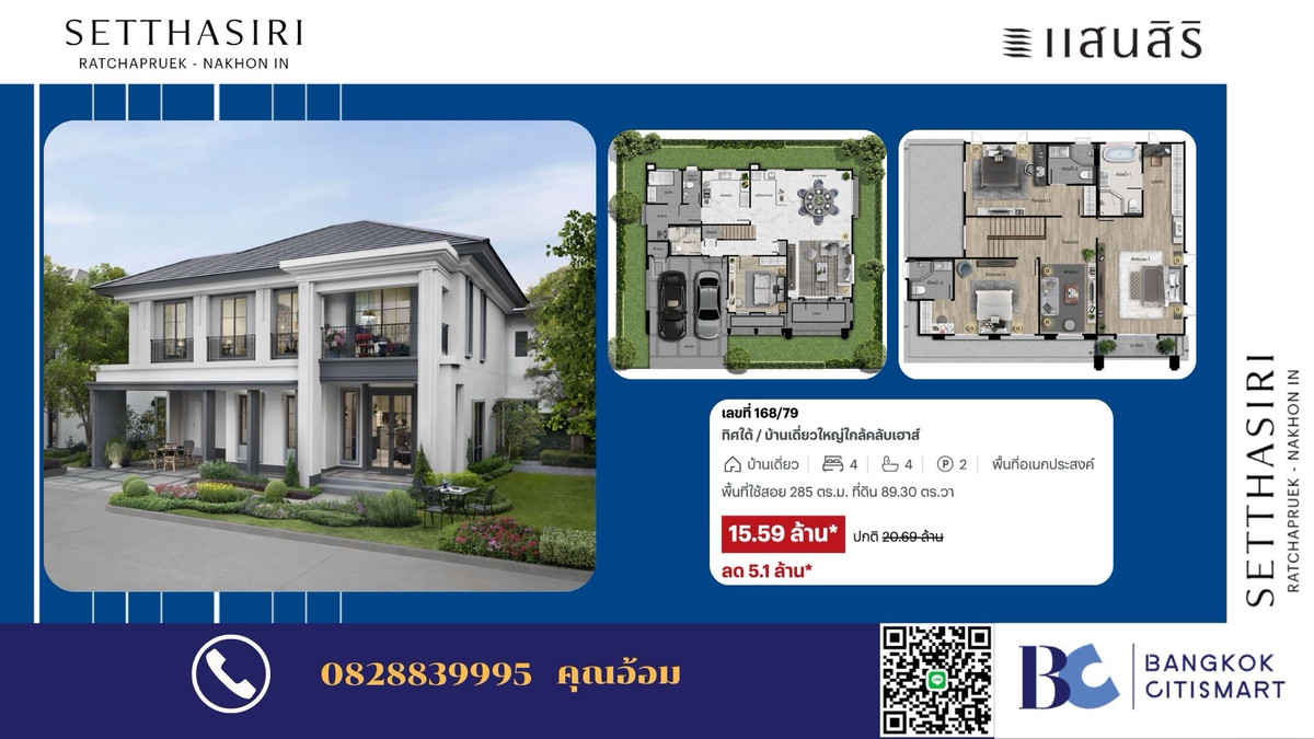 🏡 เศรษฐสิริ ราชพฤกษ์–นครอินทร์ (ทิศใต้) | บ้านเดี่ยวใหญ่ใกล้คลับเฮาส์ รายละเอียดบ้าน: 📍พื้นที่ใช้สอย 285 ตร.ม / ที่ดิน 89.30 ตร.วา 📍4 ห้องนอน / 4 ห้องน้ำ / 2 ที่จอดรถ / 1 ห้องแม่บ้าน 📍ใกล้ คลับเฮาส์ สระว่ายน้ำ ฟิตเนส และสวนส่วนกลาง 📍ทิศใต้ แสงธรรมชาติสวยเย็นสบายตลอดวัน จุดเด่น: ✨ บ้านใหญ่ สงบ สบาย ครอบครัวอยู่สบาย ✨ ทำเลดี เชื่อมต่อเมืองง่าย ✨ การออกแบบหรูหรา พร้อมฟังก์ชันครบ 💰 ราคา 15.59 ล้านบาท – สำหรับผู้ที่ต้องการคุณภาพชีวิตเหนือระดับ 📞 นัดชมบ้านตัวอย่างวันนี้ – โอกาสแบบนี้ไม่ควรพลาด please call คลิกเพื่อดูเบอร์โทรติดต่อ LINE: https://line.me/ti/p/Opvv4aGNMV