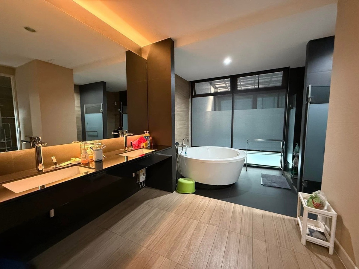 Nirvana Beyond เกษตรนวมินทร์ Type XL – ใหญ่ที่สุดในโครงการ สามารถจดทะเบียนบริษัทได้ (มีค่าใช้จ่าย) • พื้นที่ใช้สอย 350 ตร.ม. • 3 ชั้น • 4 ห้องนอน • 5 ห้องน้ำ • ห้องแม่บ้านแยก • จอดรถได้ 3–6 คัน รายละเอียดภายใน • ห้องรับแขกเพดานสูงสไตล์ Duplex • ห้องนอนเพดานสูงทุกห้อง • เฟอร์ครบทุกห้อง: เตียง ตู้ โต๊ะ • แอร์ 6 เครื่อง ครบทุกห้อง • ตู้เย็น, TV 2 เครื่อง จอ 65 นิ้ว • เครื่องซักผ้า, เครื่องกรองน้ำดื่ม • ระบบออโตเมชั่น + Wi-Fi Router ทำเลสะดวก • ใกล้ เกษตร–นวมินทร์, ทางด่วนเข้าเมือง, CDC, Central Eastville • ใกล้โรงเรียนเลิศหล้า, บุญถาวร, เลียบด่วน ถ.นวลจันทร์ • ทางออก 2 ทาง: ประเสิรฐมนูกิจ และ ประดิษฐ์มนูธรรม ค่าเช่า: 130,000 บาท/เดือน เงื่อนไข: ประกัน 3 เดือน, ล่วงหน้า 1 เดือน, สัญญา 1–3 ปี สอบถามข้อมูลเพิ่มเติม : 📞 คลิกเพื่อดูเบอร์โทรติดต่อ (Anew) 📞 คลิกเพื่อดูเบอร์โทรติดต่อ (Punn) Line Official • @sheserved