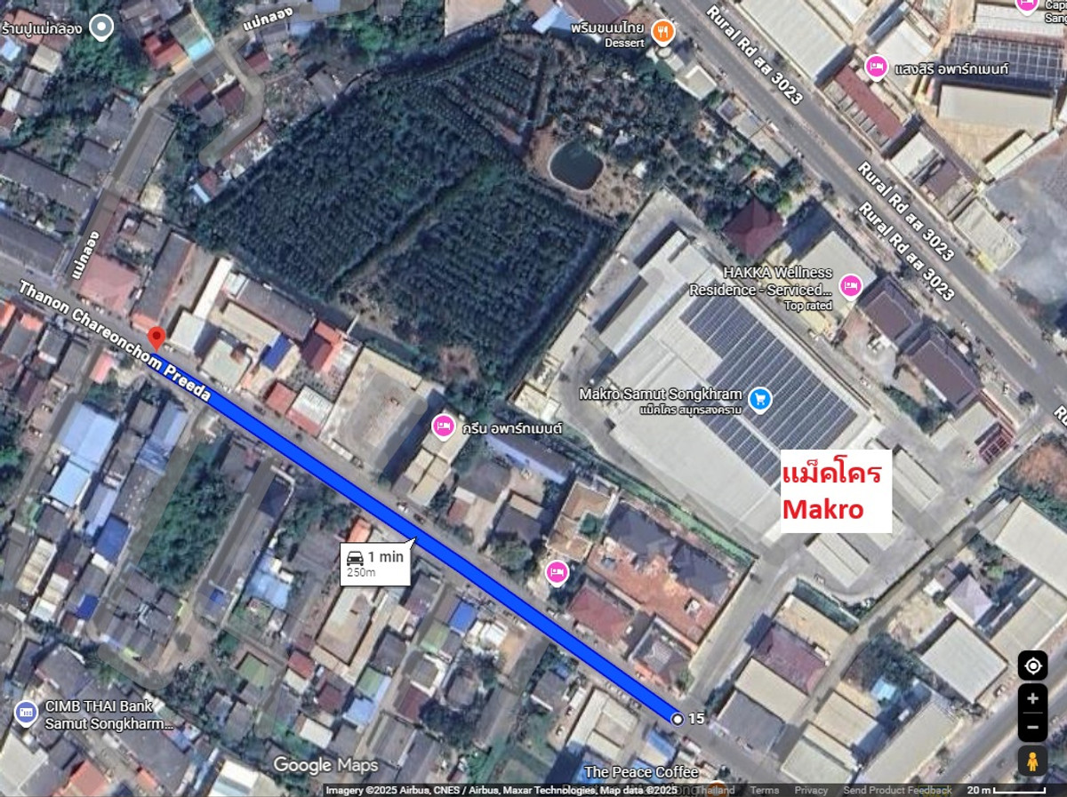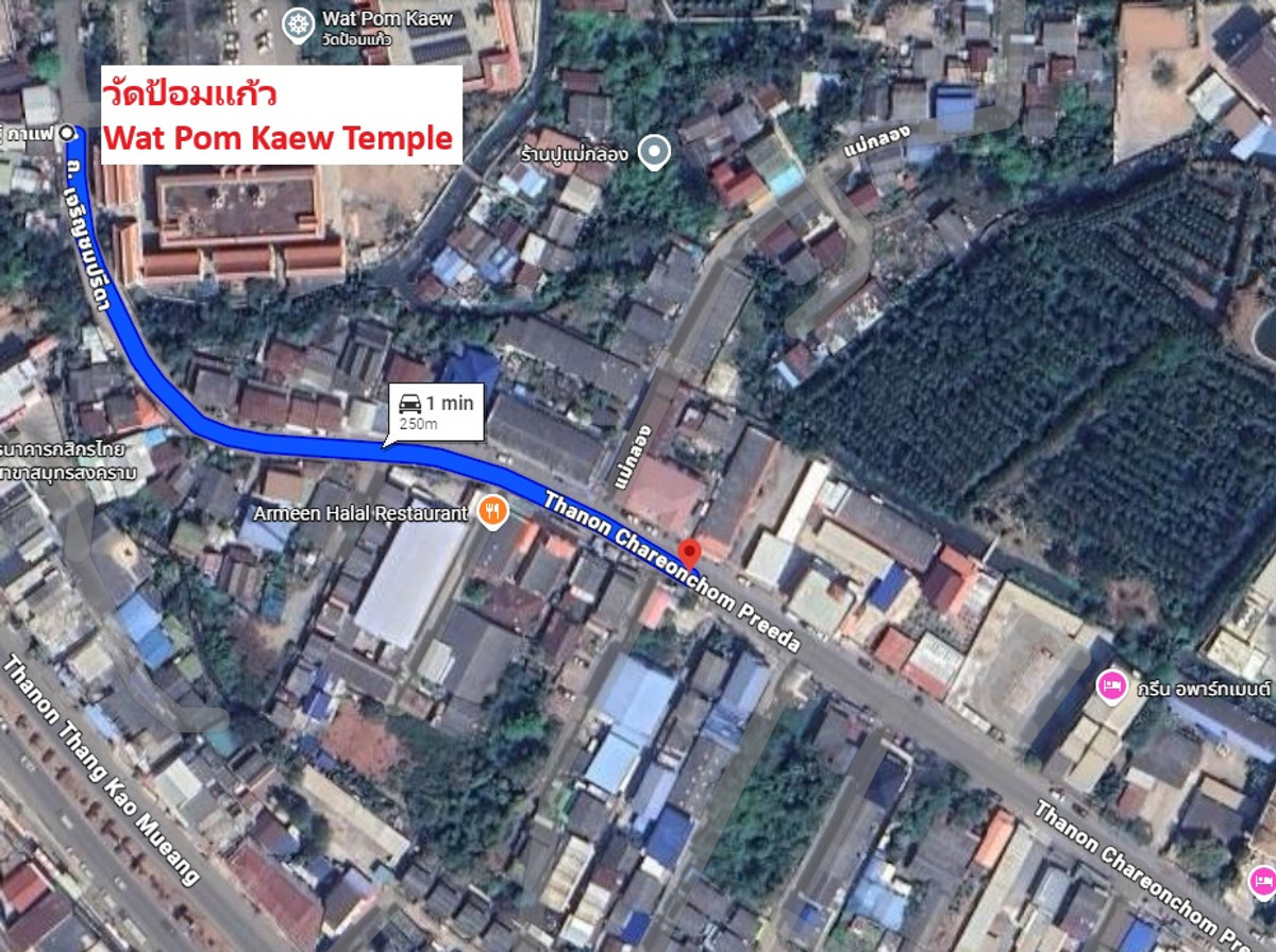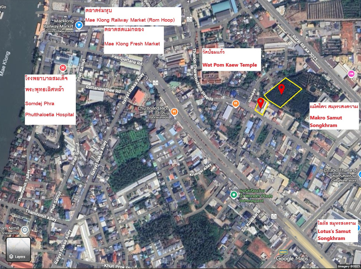 ที่ดินอยู่ใจกลางตัวเมืองแม่กลอง สมุทรสงคราม บนถนนเจริญชมปรีดา ระหว่างวัดป้อมแก้วกับห้างแม็คโคร (ห่างเพียงประมาณ 250 ม.) และยังอยู่ใกล้สถานที่สำคัญอื่นๆในระยะเดินไปได้ (ไม่เกิน 1 กม.) เช่น ห้างโลตัส ตลาดแม่กลอง ตลาดร่มหุบ รพ.สมเด็จพระพุทธเลิศหล้า โรงเรียน และสถานที่ราชการอีกหลายแห่ง ที่ดินเป็น 2 โฉนด (ไม่แบ่งหรือแยกขาย) คั่นกลางด้วยลำกระโดงสาธารณะประโยชน์ หากสร้างสะพานเชื่อมแล้วจะได้เป็นพื้นที่เรียบกว้างใหญ่ (ดูตัวอย่างจากทางเข้าแม็คโครซึ่งเชื่อมข้ามลำกระโดงนี้เช่นกัน) เหมาะสำหรับทั้งโครงการเชิงพาณิชย์และที่อยู่อาศัย ซึ่งที่ดินขนาดใหญ่ ทำเลใจกลางเมืองแม่กลองแบบนี้ แทบจะเรียกได้ว่าไม่มีอีกแล้ว ราคาขายรวมสิ่งปลูกสร้าง (ร้านค้า 2 ห้อง + ห้องเช่า 10 ห้อง + โรงจอดรถ 9 ช่องจอด) และสวนสน สนใจติดต่อมาได้เลย เจ้าของขายเอง ขอไม่ผ่านนายหน้านะครับ