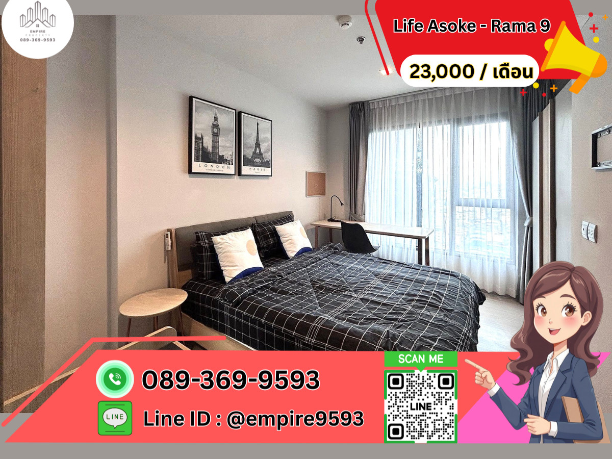 ให้เช่า 🎯 Life Asoke - Rama 9📍Line : @empire9593 📍ใกล้ MRT พระราม 9 พร้อมอยู่ 🛏️รายละเอียดห้อง: • ขนาด: 33 ตร.ม. • ประเภท: 1 ห้องนอน 1 ห้องน้ำ • ตึก B ชั้น: 24 วิวเมือง • เฟอร์นิเจอร์ + เครื่องใช้ไฟฟ้าครบ (แอร์, ทีวี, ตู้เย็น, เครื่องซักผ้า, ไมโครเวฟ, เตาไฟฟ้าพร้อมที่ดูดควัน, เครื่องทำน้ำอุ่น) 🏢สิ่งอำนวยความสะดวกโครงการ: • สระว่ายน้ำ / ฟิตเนส • สวนหย่อม / พื้นที่จัดบาร์บีคิว • ระบบรักษาความปลอดภัย 24 ชั่วโมง • ที่จอดรถ ทำเล: 📍 ใกล้ MRT พระราม 9, Airport Link มักกะสัน 📍 ติดถนนพระราม 9, ถนนรัชดาภิเษก, ถนนเพชรบุรี ใกล้กับจุดขึ้น-ลงทางด่วนพระราม 9 📍 ใกล้ เซ็นทรัลพระราม 9, Fortune Town, Terminal 21, Robinson สุขุมวิท 💰 ให้เช่า เพียง : 23,000 บาท/เดือน เงื่อนไขการเช่า: มัดจำ 2 เดือน ล่วงหน้า 1 เดือน ติดต่อสอบถาม / นัดชมห้อง: 📞 โทร: คลิกเพื่อดูเบอร์โทรติดต่อ 📱 Line ID: @empire9593 📧 Email: คลิกเพื่อดูอีเมล 🏡 รับฝากขาย - เช่า บ้าน | ที่ดิน | คอนโด | อสังหาริมทรัพย์ทุกประเภท 📌 บริการครบวงจร • ให้คำปรึกษาด้านการซื้อ – ขายอสังหาริมทรัพย์ • รับปรึกษาและยื่นสินเชื่อให้ ทุกอาชีพ มีเจ้าหน้าที่ดูแลทุกขั้นตอนกับทุกธนาคาร 📣 ลงโฆษณาฟรี! ช่วยคุณโปรโมททรัพย์ให้ ขาย / เช่า ได้ไวกว่าเดิม 📞 สนใจติดต่อเราได้เลย พร้อมให้คำปรึกษาแบบมืออาชีพ!