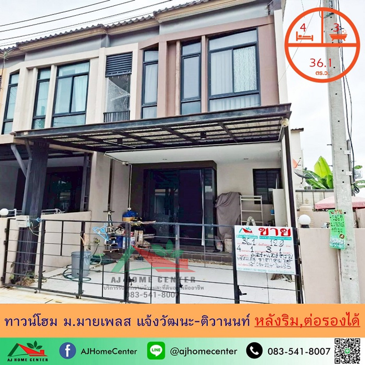ขายทาวน์โฮม2ชั้น 36.1ตรว. หลังริม ม.มายเพลส แจ้งวัฒนะ-ติวานนท์ ต่อเติมพร้อมอยู่ . ทาวน์โฮม2ชั้น 36.1 ตารางวา พื้นที่ใช้สอย 129 ตารางเมตร 4ห้องนอน 3ห้องน้ำ 1ห้องครัว 1ห้องรับแขก 2ที่จอดรถ - แถมแอร์ 5 ตัว , เครื่องทำน้ำอุ่น 3 เครื่อง - เฟอร์นิเจอร์ยกลอย(แล้วแต่ต่อรอง) - บิ้วอินห้องครัว - ต่อเติมหลังคาโรงจอดรถ - วัสดุปูพื้น : ชั้นล่าง-แกรนิตโต้ / ชั้นบน-ลามิเนต - อายุทรัพย์สิน 6 ปี - ค่าส่วนกลาง 1,000 บาท . ที่ตั้งทรัพย์สิน : ม.มายเพลส แจ้งวัฒนะ-ติวานนท์ ซ.พระแม่มหาการุณย์ ถ.ติวานนท์-ปากเกร็ด 56 ต.บ้านใหม่ อ.ปากเกร็ด จ.นนทบุรี พิกัด : https://maps.app.goo.gl/he7pzdLxvRkNwqSa6 สรุปการเดินทาง ถนนแจ้งวัฒนะ > ห้าแยกปากเกร็ด > ถนนติวานนท์ – ปากเกร็ด > ซอยพระแม่มหาการุณย์ > My Place แจ้งวัฒนะ – ติวานนท์ . ราคาขาย 2.9 ล้านบาท . จุดเด่น - ทาวน์เฮ้าส์หลังริม ขายตามสภาพ มีพื้นที่ด้านข้าง - ภายในบ้านออกแบบมาใช้งานได้สะดวก แต่ละห้องไม่มีห้องไหนเล็กเกินไปจนใช้งานลำบาก ฝ้าเพดานสูงและช่องแสงเยอะ วัสดุดีมาตรฐาน - ถนนหลักกว้าง 9 เมตร ถนนในซอยย่อยกว้าง 8 เมตร - โครงการตั้งอยู่บนถนนติวานนท์ – ปากเกร็ด56 (ซอยพระแม่มหาการุณย์) เข้ามาจากปากซอยฝั่งถนนติวานนท์ – ปากเกร็ด เพียง 1 กม. - ในซอยจะมีทางลัดไปออกถนนเลียบคลองประปาและถนนศรีสมาน ใกล้ทางด่วนอุดรรัถยาทั้งขาเข้าและขาออกเมือง - เหมาะสำหรับผู้ที่มองหาที่อยู่อาศัยโซนดอนเมืองและแจ้งวัฒนะ - ทำเลนี้ค่อนข้างเงียบสงบ ความอุดมสมบูรณ์ในวงกว้างเพียงพอต่อการใช้ชีวิตประจำวัน - เข้า-ออกได้หลายเส้นทาง ได้แก่ ซ.พระแม่มหาการุณย์ , ถนนติวานนท์ , ถนนศรีสมาน และถนนแจ้งวัฒนะ - ใกล้สถานีรถไฟฟ้าสายสีแดง ช่วง รังสิต-มหาวิยาลัยธรรมศาสตร์ สถานีดอนเมือง - ราคาต่อรองได้ - บริการจัดสินเชื่อฟรีโดยมืออาชีพ - มีบริการรับผ่อนตรงกับบริษัทชั้นนำ . สิ่งอำนวยความสะดวกในโครงการ - Club House - ฟิตเนส - สวนสาธารณะ - เจ้าหน้าที่รักษาความปลอดภัย - กล้อง CCTV - เข้า-ออก โครงการด้วยระบบ Key Card Access ระยะใกล้ . สถานที่ใกล้เคียง > ร.ร.พระหฤทัย นนทบุรี : 1 กม. > ตลาดดวงแก้ว : 1.1 กม. > Mint Village : 2 กม. > ตลาดรวมทรัพย์ : 2.4 กม. > โรบินสัน ศรีสมาน : 3.3 กม. > บางกอก กอล์ฟ คลับ : 6.2 กม. > SIIT ม.ธรรมศาสตร์ : 6 กม. > นิคมอุตสาหกรรมบางกะดี : 6.8 กม. > ร.ร.สวนกุหลาบ นนทบุรี : 7.3 กม. > ตลาดฐานเพชรปทุม : 8.0 กม. > ตลาดพูนทรัพย์ : 8.3 กม. > ตลาดรังสิต : 8.6 กม. > เซ็นทรัลแจ้งวัฒนะ : 9.1 กม. > Makro แจ้งวัฒนะ : 9.4 > สนามบินดอนเมือง : 11.9 กม. > ฟิวเจอร์ปาร์ค รังสิต : 13.7 กม. . สนใจติดต่อ คุณนัท เบอร์โทรศัพท์ คลิกเพื่อดูเบอร์โทรติดต่อ / คลิกเพื่อดูเบอร์โทรติดต่อ / คลิกเพื่อดูเบอร์โทรติดต่อ