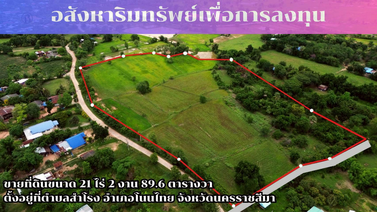 ขายที่ดินเปล่า อ.โนนไทย จ.นครราชสีมา - 21 ไร่ 2 งาน 89.6 ตร.ว. – ติดถนน น้ำไฟเข้าถึง ใกล้มอเตอร์เวย์ – ราคาไร่ละ 350,000 บาท ที่ดินสวย ทำเลดี อยู่กลางหมู่บ้านหนองประดู่ มีถนนผ่านหน้าที่ดิน น้ำไฟเข้าถึง เหมาะสำหรับปลูกบ้าน ทำเกษตร หรือซื้อเก็บไว้ลงทุนในอนาคต ใกล้ถนนมอเตอร์เวย์สายใหม่ นครราชสีมา–ขอนแก่น เพียง 300–500 เมตร ที่ตั้ง: หมู่ 10 ตำบลสำโรง อำเภอโนนไทย จังหวัดนครราชสีมา ขนาดที่ดิน: 21 ไร่ 2 งาน 89.6 ตารางวา ลักษณะ: ที่ดินเปล่าติดถนนในหมู่บ้าน น้ำไฟพร้อม จุดเด่นทำเล: ที่ดินอยู่กลางชุมชนหมู่บ้านหนองประดู่ มีถนนตัดผ่านหน้าที่ดิน น้ำไฟเข้าถึง ใกล้ถนนมอเตอร์เวย์ (โครงการ 2) นครราชสีมา–ขอนแก่น เพียง 300–500 เมตร ราคาขาย: ไร่ละ 350,000 บาท (ตร.ว.ละ 875 บาท) ราคารวม: 7,600,000 บาท ค่าโอน: คนละครึ่ง ลิงก์แผนที่: https://goo.gl/maps/ZG5y8bZ8MU8UCg7s9 ติดต่อ (Contact): ณิชาภา (Nichapa) Tel: คลิกเพื่อดูเบอร์โทรติดต่อ Line ID: nicha_win WhatsApp: คลิกเพื่อดูเบอร์โทรติดต่อ Email: คลิกเพื่อดูอีเมล #ขายที่ดิน #ที่ดินโคราช #ที่ดินนครราชสีมา #ที่ดินโนนไทย #ที่ดินใกล้มอเตอร์เวย์ #ที่ดินเปล่า #ที่ดินทำเลดี #ที่ดินราคาถูก #ที่ดินเหมาะลงทุน #อสังหาริมทรัพย์โคราช #ลงทุนที่ดิน #ขายที่ดินภาคอีสาน #NakhonRatchasimaLand #LandForSale #NonThai #ThailandProperty #RealEstateThailand #VacantLand #InvestmentLand #KorATProperty #PropertyForSale