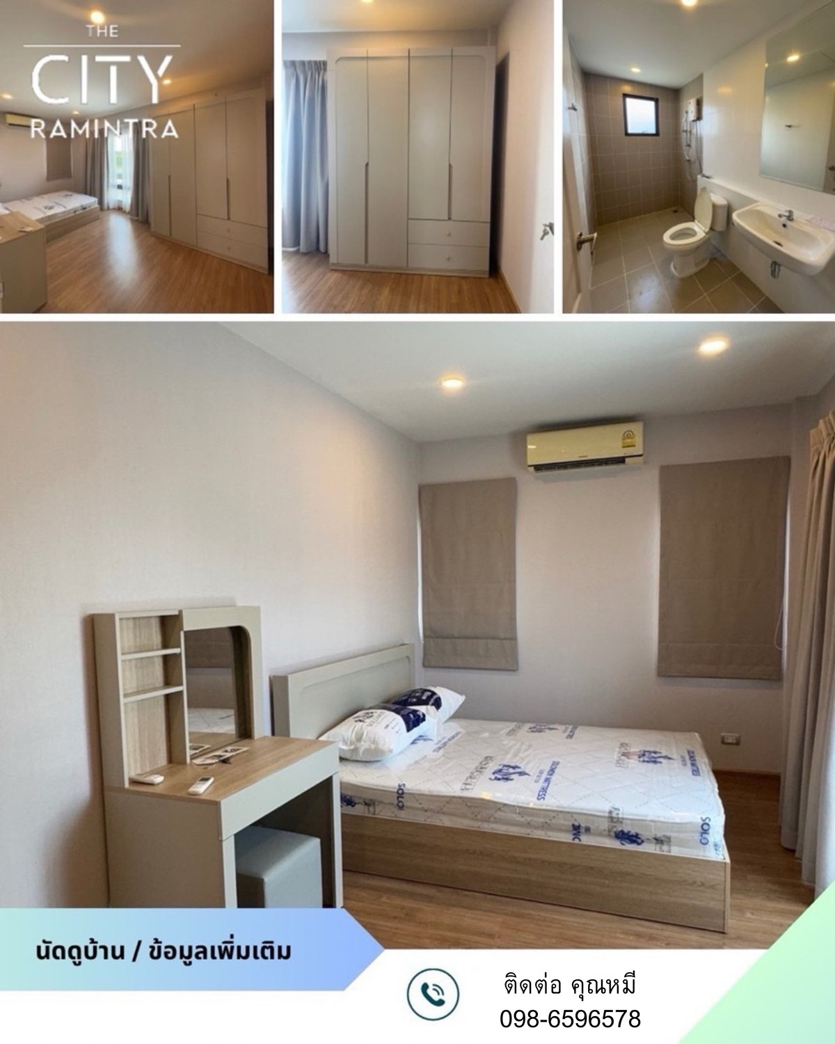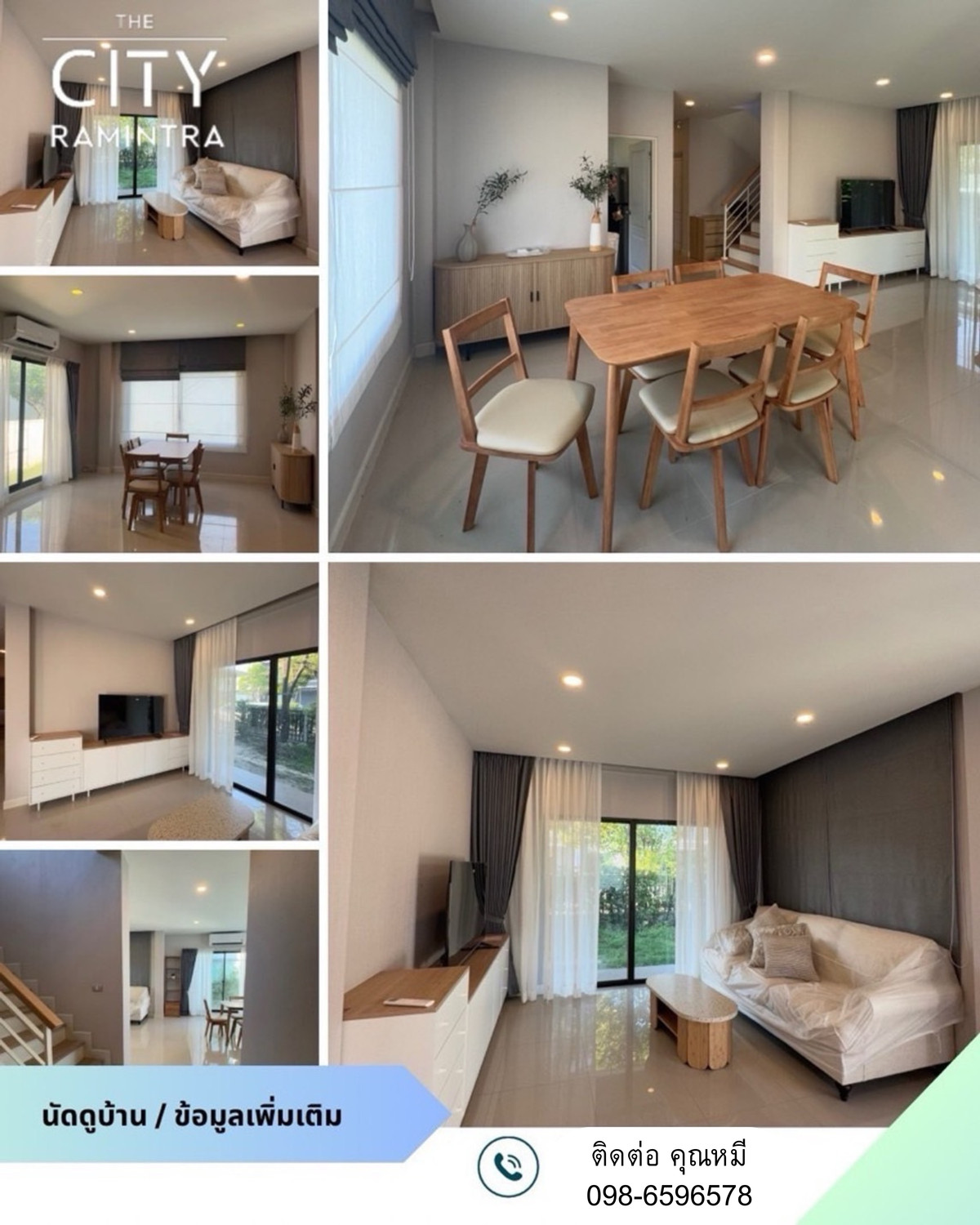 M1483 The City รามอินทรา บ้านสวย เงียบสงบ เฟอร์นิเจอร์ครบ พร้อมอยู่ทันทีพื้นที่ 77 ตร.วา พื้นที่ใช้สอยประมาณ 200 ตร.ม. 4 ห้องนอน / 3 ห้องน้ำ / 1 ห้องนั่งเล่น / 1 ห้องโถงรับรอง - ครัวแยก, มีพื้นที่หลังบ้าน, จอดรถได้ 2 คัน - เฟอร์นิเจอร์และเครื่องใช้ไฟฟ้าใหม่ทั้งหมด (โซฟา 2 ชุด / ทีวี 2 เครื่อง / เตียง 2 / ตู้เสือผ้า/ โต๊ะเครื่องแป้ง/ชุดโต๊ะทาน ข้าว/ แอร์ครบทุกห้อง รวมห้องโถง) บ้านอยู่โซนด้านใน เงียบสงบ ใกล้คลับเฮาส์ ฟิตเนส และสระว่ายน้ำ ค่าเช่า 42,000 บาท/เดือน * รวมค่าส่วนกลางแล้ว* ประกัน 2 เดือน ล่วงหน้า 1 เดือน -------------------------------------------------------- The City Ramintra: Beautiful, quiet, fully furnished home ready to move into. 77 sq wah (1,000 sq m) with approximately 200 sq m of usable space. 4 bedrooms / 3 bathrooms / 1 living room / 1 reception room. - Separate kitchen, backyard area, parking for 2 cars - All new furniture and appliances (2 sofas / 2 TVs / 2 beds / wardrobes / dressing table / dining table / air conditioning in every room, including the living room) The house is located in a quiet, inner zone, near the clubhouse, fitness center, and swimming pool. Rent: 42,000 baht/month *Including common area fees* 2-month security deposit, 1-month advance payment Contact Line : atlasestatemhee Tel : คลิกเพื่อดูเบอร์โทรติดต่อ