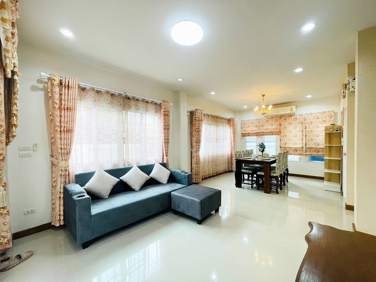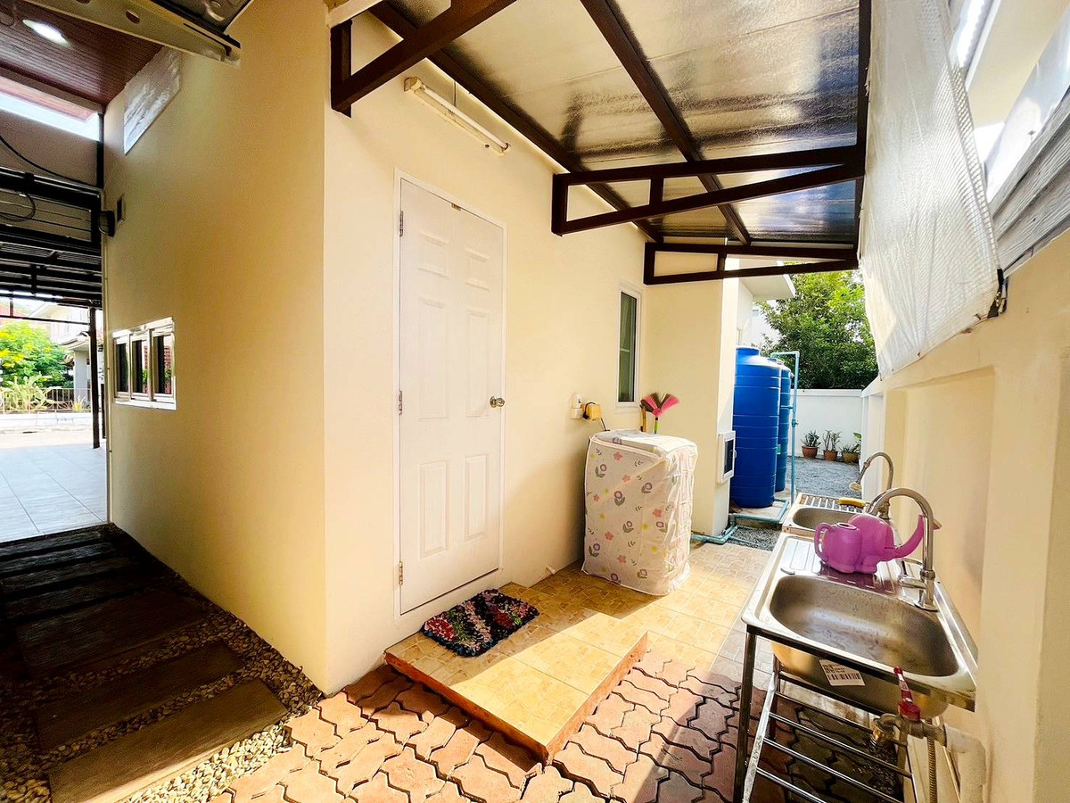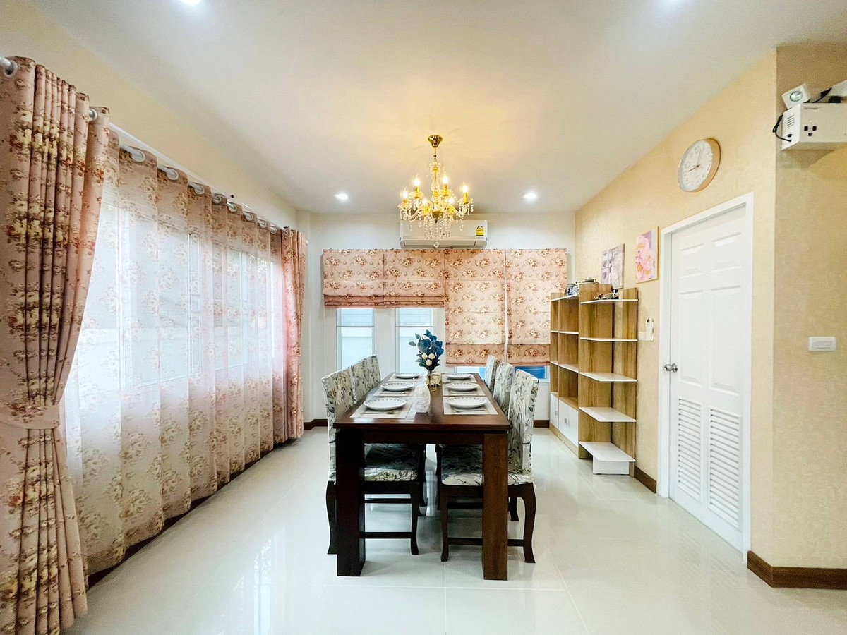 บ้านหลังนี้ตอบโจทย์ทั้งอยู่อาศัยและ Work–life แบบครบจริง • 4 ห้องนอน 3 ห้องน้ำ • ห้องนอนใหญ่พร้อมห้องน้ำในตัว • ครัวไทย + ครัวตะวันตก เชื่อมโซนซักล้างและสวน • ห้องนั่งเล่น + โซนทานอาหาร • แอร์ครบทุกห้