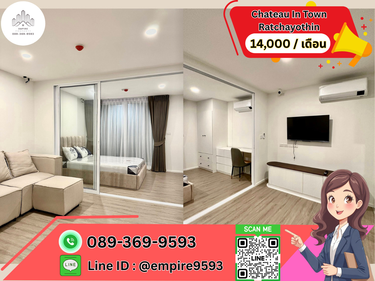ให้เช่า 🎯 Chateau In Town Ratchayothin ใกล้ BTS รัชโยธิน น่าอยู่ 📍Line : @empire9593 📍 🛏️รายละเอียดห้อง: • ขนาด: 35 ตร.ม. • ประเภท: Studio 1 ห้องนอน 1 ห้องน้ำ • ชั้น: 4 • เฟอร์นิเจอร์ + เครื่องใช้ไฟฟ้าครบ (แอร์, ทีวี, ตู้เย็น, เครื่องซักผ้า, ไมโครเวฟ, เตาไฟฟ้าพร้อมที่ดูดควัน, เครื่องทำน้ำอุ่น) 🏢สิ่งอำนวยความสะดวกโครงการ: • สระว่ายน้ำ / ฟิตเนส • สวนหย่อม / พื้นที่จัดบาร์บีคิว • ระบบรักษาความปลอดภัย 24 ชั่วโมง • ที่จอดรถ ทำเล: 📍 ใกล้ BTS รัชโยธิน 📍 อยู่ในซอยเสนานิคม 1 ซอย 12 ใกล้ถนนพหลโยธิน, ถนนรัชดาภิเษก, ถนนลาดพร้าว และถนนประเสริฐมนูกิจ ใกล้ทางด่วนหลัก 2 สาย ทั้งดอนเมืองโทลล์เวย์ และทางด่วนศรีรัช 📍 ใกล้ Central ลาดพร้าว, Union Mall, Major รัชโยธิน, SCB Park, ม.เกษตรศาสตร์, ม.ศรีปทุม, รพ.เปาโล เกษตร 💰 ให้เช่า เพียง : 14,000 บาท/เดือน เงื่อนไขการเช่า: มัดจำ 2 เดือน ล่วงหน้า 1 เดือน ติดต่อสอบถาม / นัดชมห้อง: 📞 โทร: คลิกเพื่อดูเบอร์โทรติดต่อ 📱 Line ID: @empire9593 📧 Email: คลิกเพื่อดูอีเมล 🏡 รับฝากขาย - เช่า บ้าน | ที่ดิน | คอนโด | อสังหาริมทรัพย์ทุกประเภท 📌 บริการครบวงจร • ให้คำปรึกษาด้านการซื้อ – ขายอสังหาริมทรัพย์ • รับปรึกษาและยื่นสินเชื่อให้ ทุกอาชีพ มีเจ้าหน้าที่ดูแลทุกขั้นตอนกับทุกธนาคาร 📣 ลงโฆษณาฟรี! ช่วยคุณโปรโมททรัพย์ให้ ขาย / เช่า ได้ไวกว่าเดิม 📞 สนใจติดต่อเราได้เลย พร้อมให้คำปรึกษาแบบมืออาชีพ!