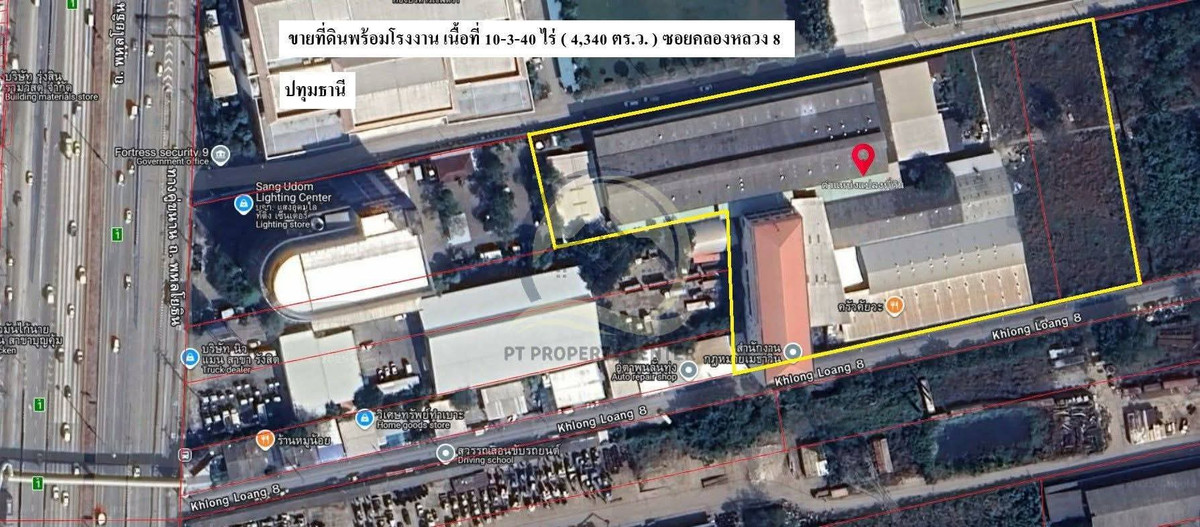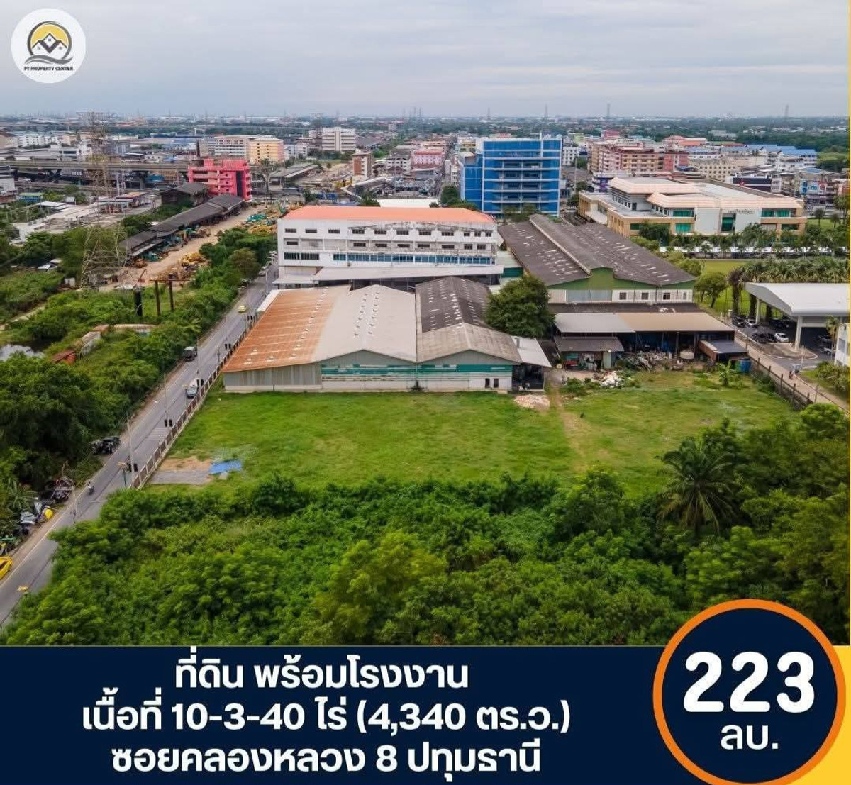 ขายที่ดินพร้อมโรงงาน ซอยคลองหลวง 8 ปทุมธานีเนื้อที่ 10-3-40 ไร่ (4,340 ตร.ว.) รายละเอียด : • ที่ดิน 10-3-40 ไร่ ( 4,340 ตารางวา ) หน้ากว้างขนานถนน 150 เมตร • พื้นที่ใช้สอย รวมทั้งหมด 18,000 ตารางเมตร • อาคารโรงผลิตและสำนักงานOffice 2 ชั้น ขนาด 7,083.50 ตารางเมตร • อาคารพักอาศัย 5 ชั้น และมีห้องน้ำ ขนาด 5,093.50 ตารางเมตร • อาคารโกดัง ( หลังที่ 1-2 ) มีลงเสาเข็มรองรับเครื่องจักร ขนาด 2,1750 ตารางเมตร • อาคารโกดัง ( หลังที่ 3 ) ขนาด 1,257 ตารางเมตร • อาคารโรงจอดรถรถยนต์ ขนาด 191 ตารางเมตร • อาคารโรงซ่อมบำรุง ขนาด 72 ตารางเมตร • อาคารโรงเก็บของ ขนาด 58 ตารางเมตร • รั้วพร้อมประตูรั้วรอบแนวเขตที่ดิน • มีส่วนโล่งหลังคาคลุมบางส่วน • พื้นที่ ผังสีม่วง หมายเลข 4.5 เหมาะอุตสาหกรรมและคลังสินค้า • มีใบอนุญาตสิ่งปลูกสร้าง • ใบอนุญาตโรงงานประเภท 4 • ที่ดินมีรูปทรง ค่อนข้างเป็นสี่เหลี่ยมยาว ซึ่งถือว่าดี • เป็นที่ดินทำกิจการ โรงงาน หรือโกดังได้ดีมาก เพราะมีลักษณะสำคัญที่ส่งเสริม "การไหลเวียนเข้า–ออก" ของงานและเงิน ซึ่งเหมาะกับธุรกิจที่ต้องการการหมุนเวียนสูง สถานที่ใกล้เคียง : • โรงกษาปณ์ / สนามบินดอนเมือง • ไทวัสดุ รังสิต / ฟิวเจอร์ พาร์ค รังสิต • ตลาดรังสิต / โกโฮล เซลล์ รังสิต การเดินทาง : • ใกล้ทางด่วน : ทางยกระดับอุตราภิมุข ที่ตั้ง ถนนพหลโยธิน ถนนรังสิต-ปทุมธานี ถนนวิภาวดี-รังสิต – ที่ดินพร้อมสิ่งปลูกสร้าง 10-3-40 ไร่ (4,340 ตารางวา) ตำบลคลองหนึ่ง อำเภอคลองหลวง จังหวัดปทุมธานี ราคาขาย 223,000,000 บาท ( รวมค่าภาษีทั้งหมด) WP001