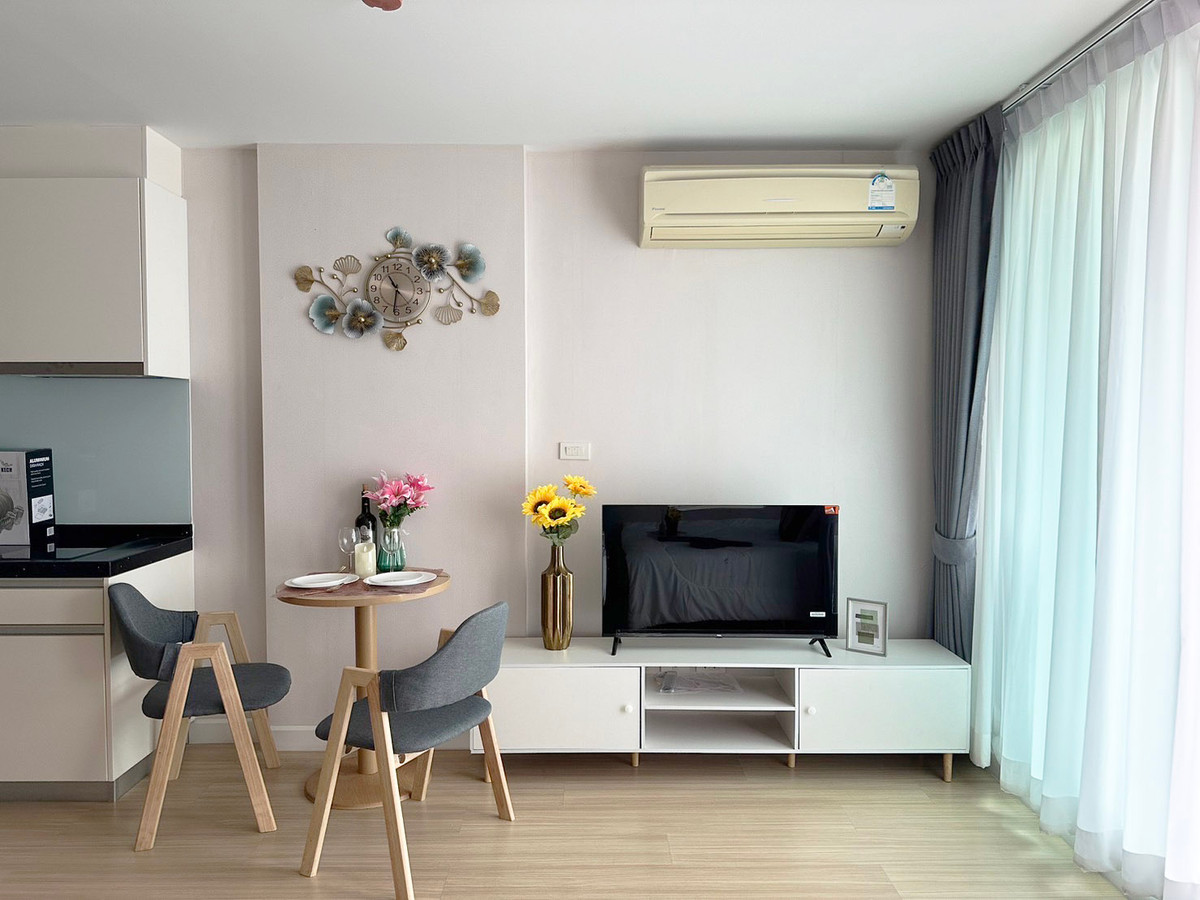ให้เช่า Mayfair Place Sukhumvit 64 พร้อมเฟอร์นิเจอร์ (ใกล้ BTS ปุณณวิถี, รร.นานาชาติแองโกล สิงคโปร์, ทรูดิจิตัลพาร์ค) ราคาเช่า : 11,000 บาท/เดือน อาคาร : B ที่ตั้ง : ซ.สุขุมวิท 64 สถานีรถไฟฟ้า BTS (สายสีเขียว) : ปุณณวิถี (ประมาณ 350 ม.) สถานที่ใกล้เคียง : สำนักงานธุรกิจและศูนย์จ่ายน้ำมันบางจาก (โรงกลั่นบางจาก สุขุมวิท 64) // รร.นานาชาติแองโกล สิงคโปร์ // ทรูดิจิตัล พาร์ค // ทางด่วน (สุขุมวิท 62) รายละเอียด : - ห้องสตูดิโอ แต่งสวย ครบครันพร้อมอยู่ บนพื้นที่ใช้สอย 28 ตร.ม., ชั้น 5, 1 ห้องน้ำ, เคาน์เตอร์ครัวบิวท์อิน, เฟอร์นิเจอร์และเครื่องใช้ไฟฟ้าครบ (แอร์, โทรทัศน์, ตู้เย็น, เตาไฟฟ้า + เครื่องดูดควัน, เครื่องซักผ้า, เครื่องทำน้ำอุ่น) - คอนโดแบบ low rise สไตล์รีสอร์ท โดย บ.พีทีเอฟ เรียลตี้ ตั้งอยู่ใน ซ.สุขุมวิท 64 (สูง 8 ชั้น, จำนวน 3 อาคาร) เดินเพียง 4-5 นาทีจากสถานี BTS พร้อมสิ่งอำนวยความสะดวกในโครงการ เช่น สระว่ายน้ำ + จากุซซี่, ฟิตเนส, สวนหย่อม, สนามเด็กเล่น, ห้องสมุด, ห้องซักล้างส่วนกลาง มีตู้น้ำดื่มหยอดเหรียญให้บริการ, ล้อบบี้, ลิฟท์, ลานจอดรถยนต์ (1 คัน/1 ห้อง - ไม่ฟิคที่จอดประจำ), เจ้าหน้าที่รักษาความปลอดภัยตลอด 24 ชั่วโมง พร้อมระบบกล้อง CCTV, เข้า-ออกอาคารด้วยคีย์การ์ด และรถบริการรับ-ส่งสถานี BTS - เงื่อนไข : สัญญาเช่าขั้นต่ำ 1 ปี // เงินประกัน 2 เดือน + ค่าเช่าล่วงหน้า 1 เดือน (ไม่อนุญาตให้เลี้ยงสัตว์) ต้องการรายละเอียดเพิ่มเติม หรือนัดหมายเพื่อดูห้อง โปรดติดต่อ คลิกเพื่อดูเบอร์โทรติดต่อ หรือ Line ID : ibobcat