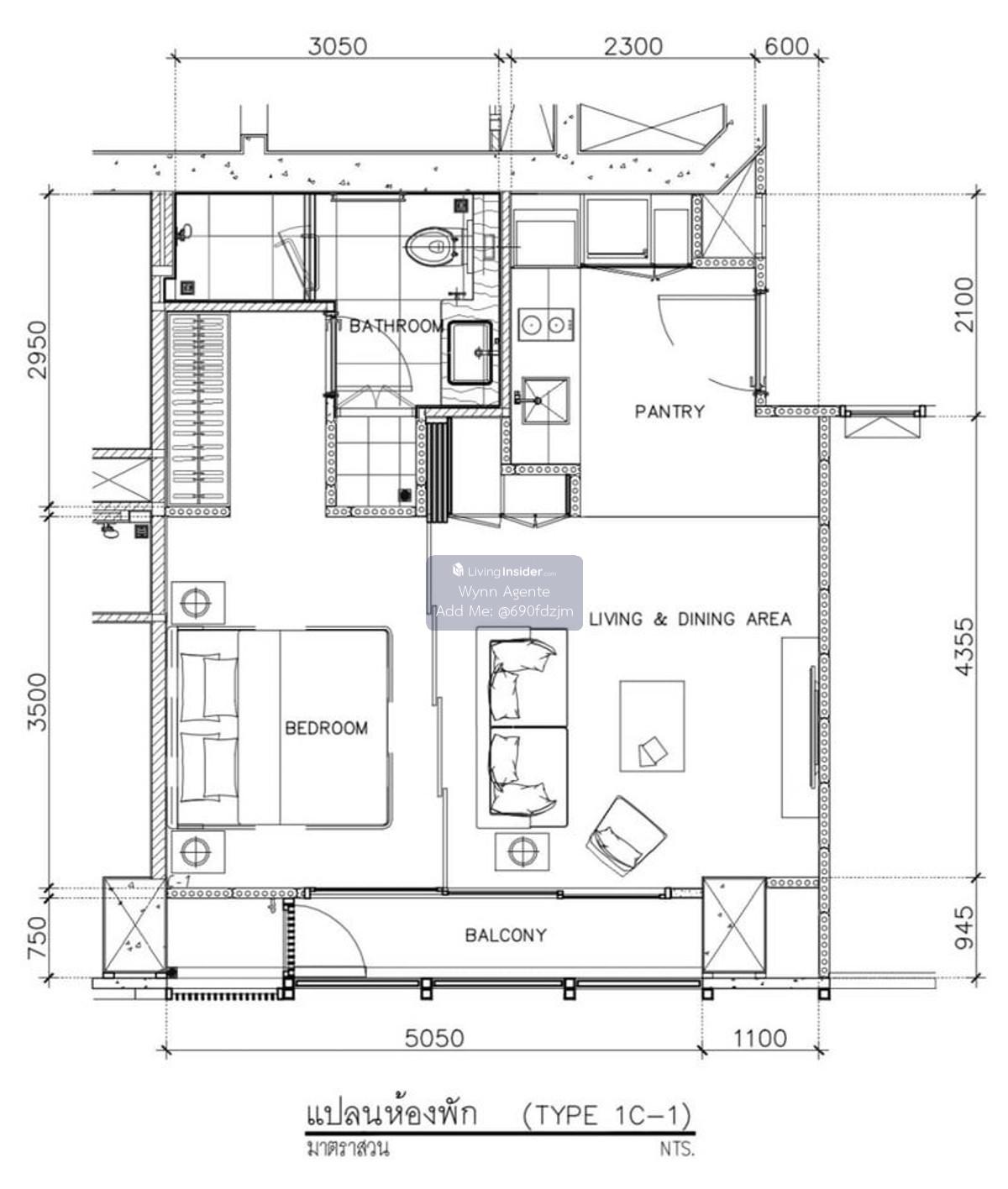 พื้นที่ใช้สอย 43.50 ตร.ม.