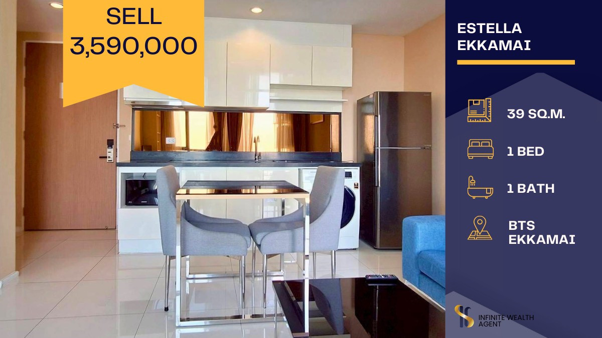 📍 ทำเล: Sukhumvit, Ekamai, BTS Ekkamai 🏢 โครงการ: Estella Ekkamai 📐 ขนาด: 39 ตร.ม. 🛏️ แบบห้อง: 1 Bed 1 Bath 💰 ราคาขาย: 3,590,000 บาท 📌 สถานะ: Available ✅ จุดเด่นของห้อง: 🛋️ ห้องเฟอร์ครบ แต่งสวยพร้อมเข