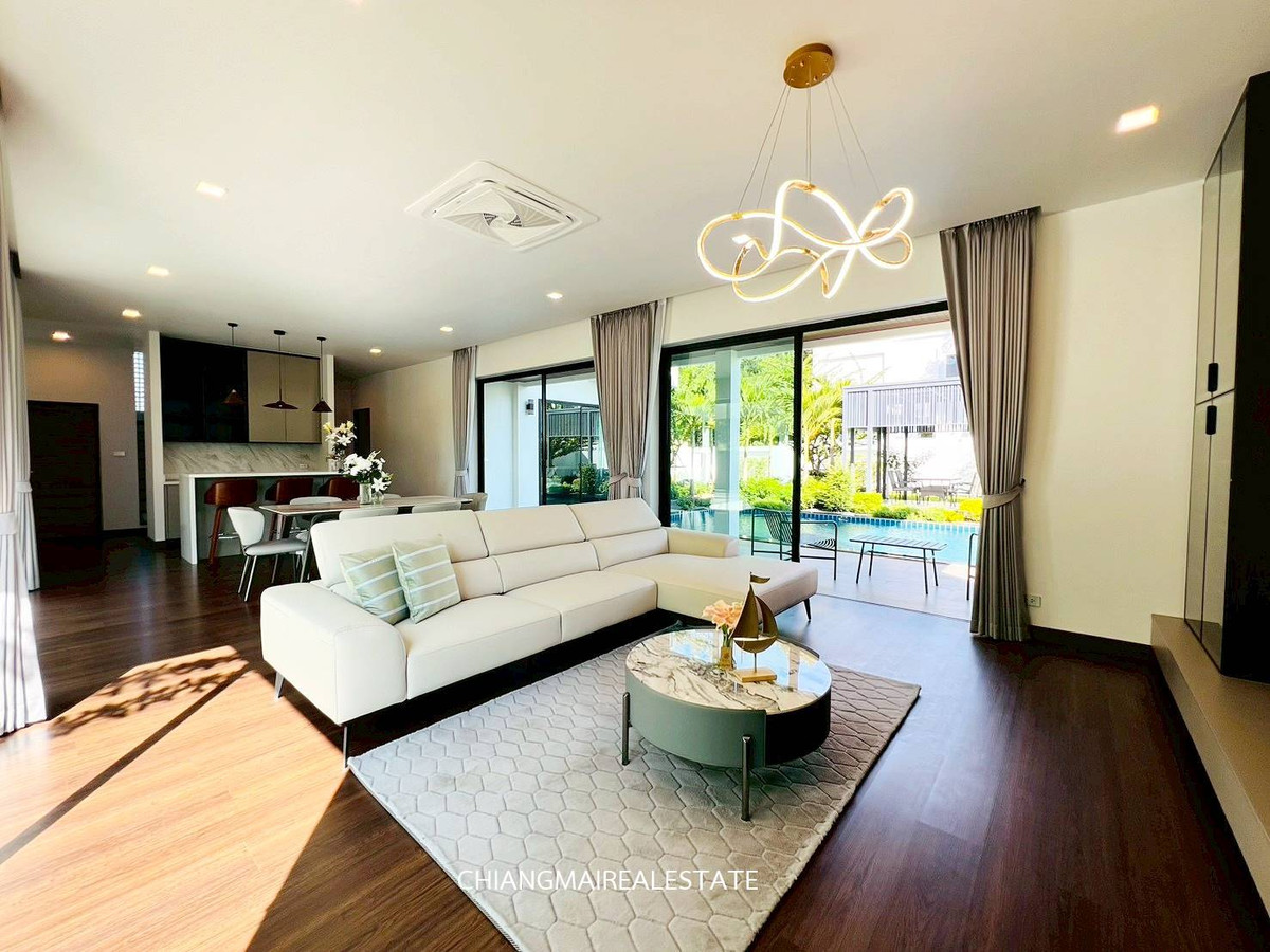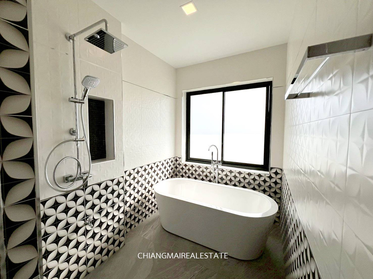 บ้านหลังนี้คือพื้นที่ของ "ครอบครัวที่ต้องการคุณภาพชีวิตจริง ๆ" S2672 | พูลวิลล่า 2 ชั้นหลังใหญ่ – แม่เหียะ เมืองเชียงใหม่ เพียง 3 นาทีถึงถนนเชียงใหม่–หางดง น้ำไม่ท่วม พร้อมเข้าอยู่ทันที สิ่งที่ทำให้หลังนี้แตกต่าง… ไม่ใช่แค่ขนาดใหญ่ แต่คือ พื้นที่ใช้ชีวิตที่ถูกออกแบบให้ทุกคนได้มีมุมของตัวเอง ตั้งแต่สระว่ายน้ำ ที่มี Semi–outdoor ริมสระทั้ง 2 ฝั่ง ไปจนถึง 2 ห้องนั่งเล่น ที่ให้ความรู้สึกเหมือนอยู่รีสอร์ตในบ้านตัวเอง ห้องนอนใหญ่มีอ่างอาบน้ำให้แช่ผ่อนคลาย สวนและพื้นที่รอบบ้านกว้างจนจัดกิจกรรมครอบครัวได้แบบไม่อึดอัด นี่คือบ้านที่ "อยู่แล้วชีวิตดีขึ้น" มากกว่าแค่ที่พักอาศัย รายละเอียดตัวบ้าน • พื้นที่ใช้สอย 500 ตร.ม. • ที่ดิน 186 ตร.วา • 4 ห้องนอน | 5 ห้องน้ำ • ห้องน้ำแบบมีอ่างอาบน้ำ 2 ห้อง • 2 ห้องนั่งเล่น + โซนทานอาหาร • ครัว + Pantry + โซนซักล้าง • พื้นที่รอบบ้าน + สวนกว้าง • โรงจอดรถ 2 คัน + ห้องเก็บของ • แอร์ครบทุกห้องนอน • สระว่ายน้ำระบบเกลือ 3×10 ม. ราคา 17,900,000 บาท พร้อมเฟอร์นิเจอร์ | ค่าโอน 50/50 ทำเลใกล้เมือง เดินทางสะดวกมาก • Big C / Makro – 3 นาที • รร.สารสาสน์วิเทศล้านนา – 4 นาที • กาดฝรั่ง วิลเลจ – 8 นาที • รพ.เชียงใหม่ใกล้หมอ – 8 นาที • รร.นานาชาติลานนา – 12 นาที • สนามบินเชียงใหม่ – 15 นาที