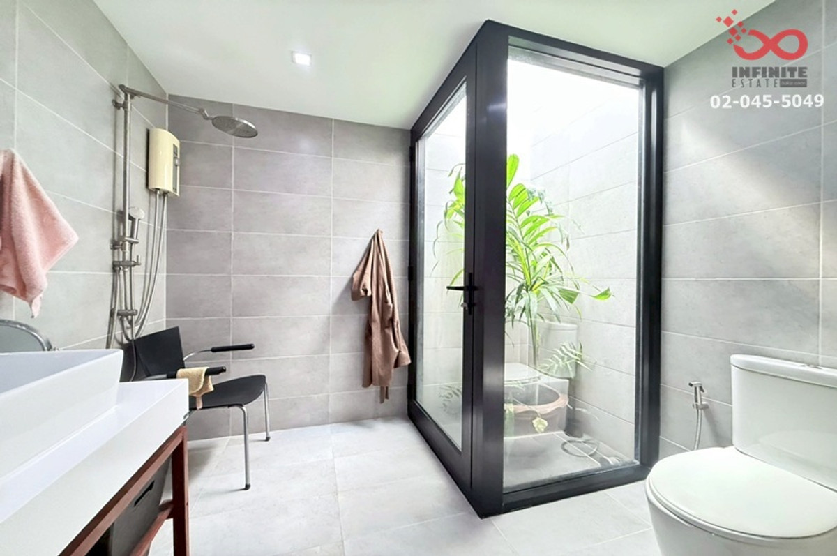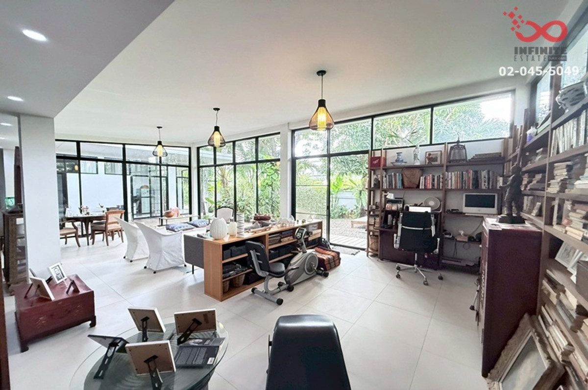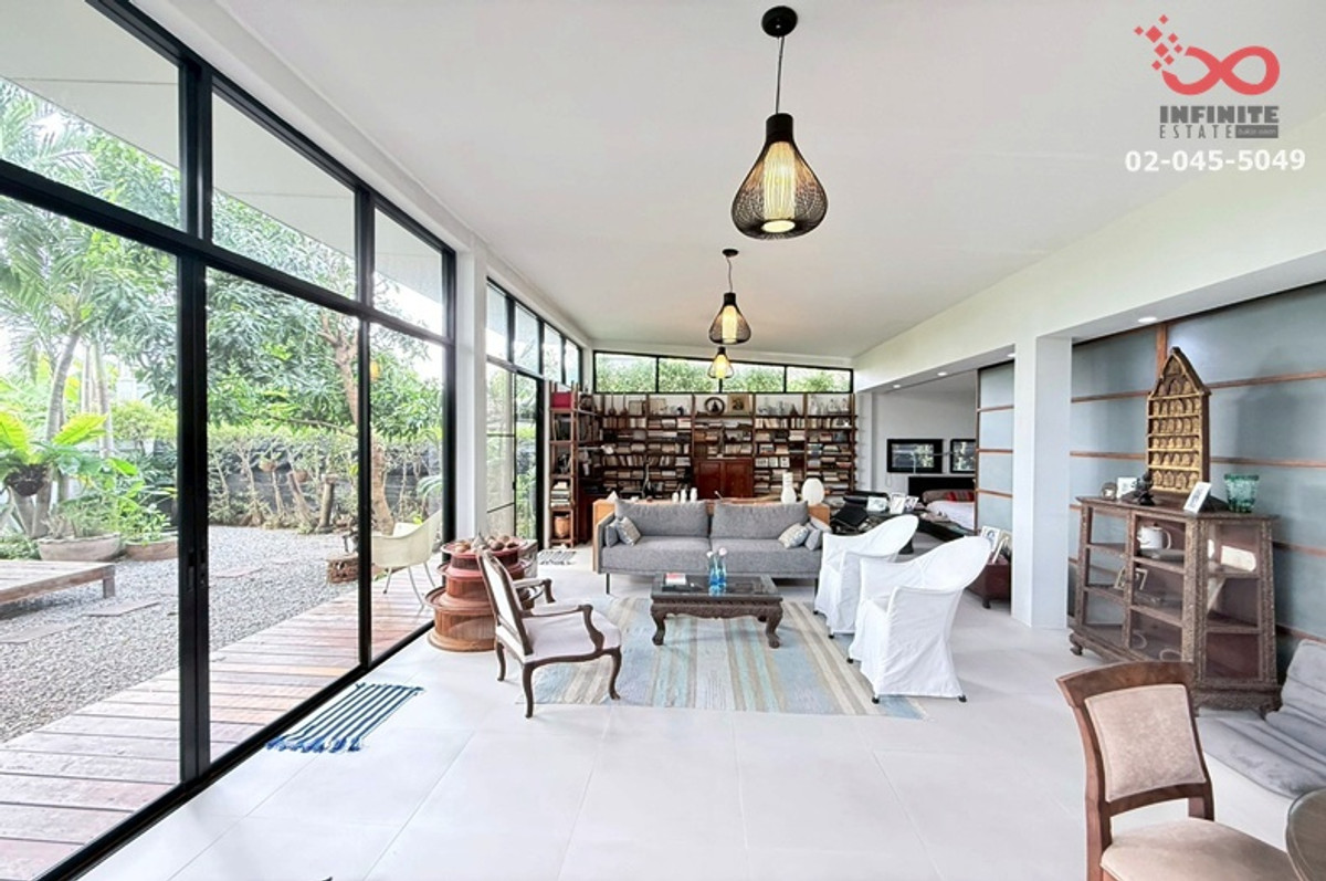 ติดต่อ : คุณหนึ่ง คลิกเพื่อดูเบอร์โทรติดต่อ office : คลิกเพื่อดูเบอร์โทรติดต่อ ชื่อโครงการ : รามอินทรา ที่ตั้ง : ซอยรามอินทรา 39 แยก 10 ถนนรามอินทรา แขวงท่าแร้ง เขตบางเขน กรุงเทพมหานคร 10230 พื้นที่ : 124 ตารางวา | พื้นที่ใช้สอย 237 ตารางเมตร จำนวนห้อง : 4 ห้องนอน 4 ห้องน้ำ 1 ห้องรับแขก 1 ห้องครัว ตกแต่ง : แอร์ 5 เครื่อง ตกแต่งสไตล์บ้านสวน ต่อเติมโรงจอดรถและห้องน้ำแม่บ้านแยกจากตัวบ้าน ที่จอดรถ : 1 คัน ทรัพย์สินหันหน้าทิศ : ใต้ รีวิว : Luxury Living บ้านสวนสไตล์รีสอร์ท 2 หลัง ออกแบบโดยสถาปนิกชาวต่างชาติ เน้นความโล่งโปร่งสบาย สัมผัสธรรมชาติ ทำเลดีย่านรามอินทรา จากถนนหลักรามอินทราเพียง 400 เมตร เชื่อมต่อพหลโยธินและวัชรพล ใกล้รถไฟฟ้าสายสีชมพู หันหน้าทิศใต้ เหมาะพักอาศัยหรือทำโฮมออฟฟิศ สถานที่ใกล้เคียง : สถานที่ช้อปปิ้งและไลฟ์สไตล์ - แฟชั่นไอส์แลนด์ - เซ็นทรัล อีสวิลล์ - เซ็นทรัล รามอินทรา - ตลาดถนอมมิตร สถานศึกษา - มหาวิทยาลัยศรีปทุม - มหาวิทยาลัยราชภัฎพระนคร - โรงเรียนรัตนโกสินทร์สมโภช - โรงเรียนนานาชาติกีรพัฒน์ โรงพยาบาล - โรงพยาบาลสินแพทย์ - โรงพยาบาล CGH พหลโยธิน - โรงพยาบาลมงกุฎวัฒนะ การเดินทาง - รถไฟฟ้า BTS สายสีชมพูและสีเขียว - ทางด่วนศรีรัช - สนามบินดอนเมือง