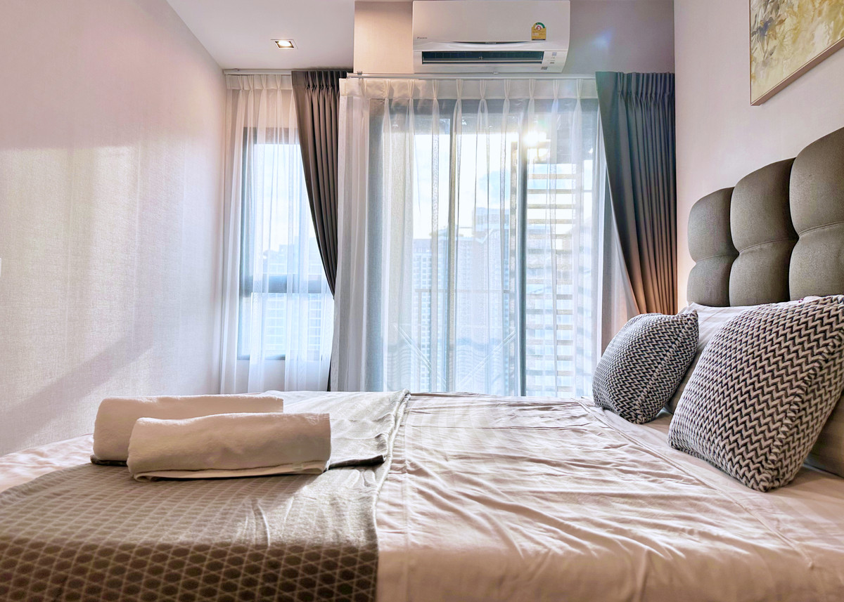 สัมผัสชีวิตใจกลางเมืองกับคอนโด 2 ห้องนอน ชั้น 24 ที่ ไอดีโอ พระราม 9 – อโศก ห้องตกแต่งสวยครบพร้อมเข้าอยู่ พร้อมวิวเมืองเปิดโล่งจากชั้นสูง ให้ความเป็นส่วนตัวและน่าอยู่มาก รายละเอียดห้อง: • 2 ห้องนอน •