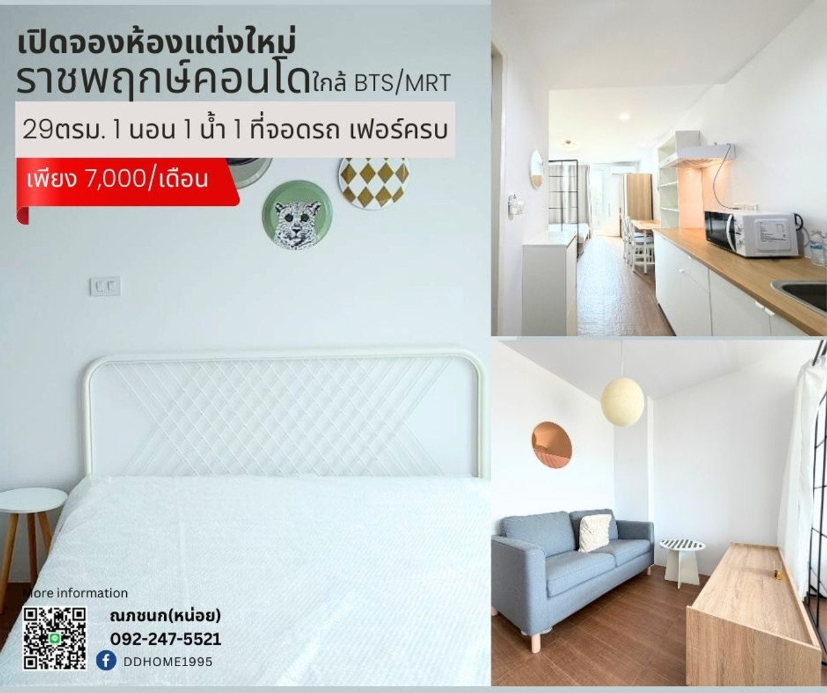 ให้เช่า! ห้องรีโนเวทใหม่ ทำเลราชพฤกษ์ใกล้รถไฟฟ้า BTS/MRT ค่าเช่า 7,000 บาท/เดือน (สัญญาขั้นต่ำ 1 ปี) ประกัน 2 เดือน + ล่วงหน้า 1 เดือน (รวม 3 เดือน) รายละเอียด * ราชพฤกษ์คอนโด ซอยราชพฤกษ์6 * ห้องขนาด 29 ตรม. ชั้น3 1 นอน 1 น้ำ 1 สิทธิ์ที่จอดรถ * ใกล้สถานีรถไฟฟ้า BTS บางหว้า และ MRT บางไผ่ ประมาณ 2 กิโล * ห้องรีโนเวทใหม่ ไม่เคยมีผู้เช่า * บรรยากาศเงียบ สงบ เหมาะกับการอยู่อาศัย * ปลอดภัยด้วยระบบ Digital Door Lock เฟอร์นิเจอร์และสิ่งอำนวยความสะดวกภายในห้อง * เตียงนอน 5 ฟุต + ฟูก Dunloppillo อย่างดี นอนสบาย * ชั้นวางทีวี, โซฟา, ตู้เสื้อผ้า * ชุดโต๊ะทานข้าว * โต๊ะทำงาน + ชั้นวางของขนาดใหญ่ * มีเคาเตอร์ทำอาหาร พร้อมเครื่องดูดควัน * ตู้รองเท้า+กระจก เครื่องใช้ไฟฟ้า * แอร์ใหม่เย็นฉ่ำ * ตู้เย็นขนาด 8.9 คิว, ไมโครเวฟ * เครื่องทำน้ำอุ่น สิ่งอำนวยความสะอวด * ฟิตเนส, สระว่ายน้ำ * ระบบรักษาความปลอดภัย 24 ชม. การเดินทาง * BTS สถานีบางหว้า * MRT สถานีบางไผ่ ต่อมอเตอร์ไซต์ประมาณ 20 บาท * หากใช้รถยนต์/มอเตอร์ไซต์ส่วนตัวสามารถฝากจอดเพื่อต่อรถ BTS/MRT ได้ พิกัด : https://maps.app.goo.gl/F6LSWymEZeVd1zhZ8 สนใจนัดชมห้อง คลิกเพื่อดูเบอร์โทรติดต่อ (หน่อย) หรือไลน์แอด @523pkuqc คลิกที่นี่: https://lin.ee/gkJA4Oz +++++++++++++++++++++++++++++++ Facebook : www.facebook.com/ddhome1995 Youtube : https://www.youtube.com/@DDhome1995/ Tiktok : https://tiktok.com/@ddhome1995 บริการฝากขาย-เช่า อสังหาริมทรัพย์ ครบวงจร ดูแลจนถึงวันโอนกรรมสิทธิ์ ยินดีให้คำปรึกษาฟรีไม่มีค่าใช้จ่าย พร้อมวิเคราะห์ราคาตลาด เพื่อให้ลูกค้าไม่เสียโอกาส ไม่มีค่าใช้จ่ายจนกว่าจะทำงานสำเร็จ #รับฝากขายบ้านที่ดินคอนโดกรุงเทพ #บ้านมือสอง #บ้านเดี่ยว #บ้านมือสองราคาถูก #ทาวน์เฮ้าส์มือสอง #ทาวน์โฮมมือสอง #ขายบ้าน #ฝากขายบ้าน #คอนโดมือสอง #บ้านราคาถูก #สาทร #สีลม #ท่าพระ #ตลาดพลู #สีลม #วุฒากาศ #โพธิ์นิมิตร#คอนโดติดรถไฟฟ้า #วงเวียนใหญ่ #homeforsale #home2ndhand #condoforsale #condoforrent #realestateagent #Phonimit #Thapra #Silom #sathorn #曼谷生活 #泰国旅行 #泰国 #曼谷旅行 #泰国旅游 #泰国生活 #泰国房产好房发现 #泰国房 #泰国找房 #泰国好房 #泰国好房推荐 #泰国曼谷房 #泰国特价房 #泰国看房 #曼谷房产 #曼谷公寓 #曼谷公寓出租 #曼谷租房 #泰国曼谷 #曼谷找房 #曼谷看房