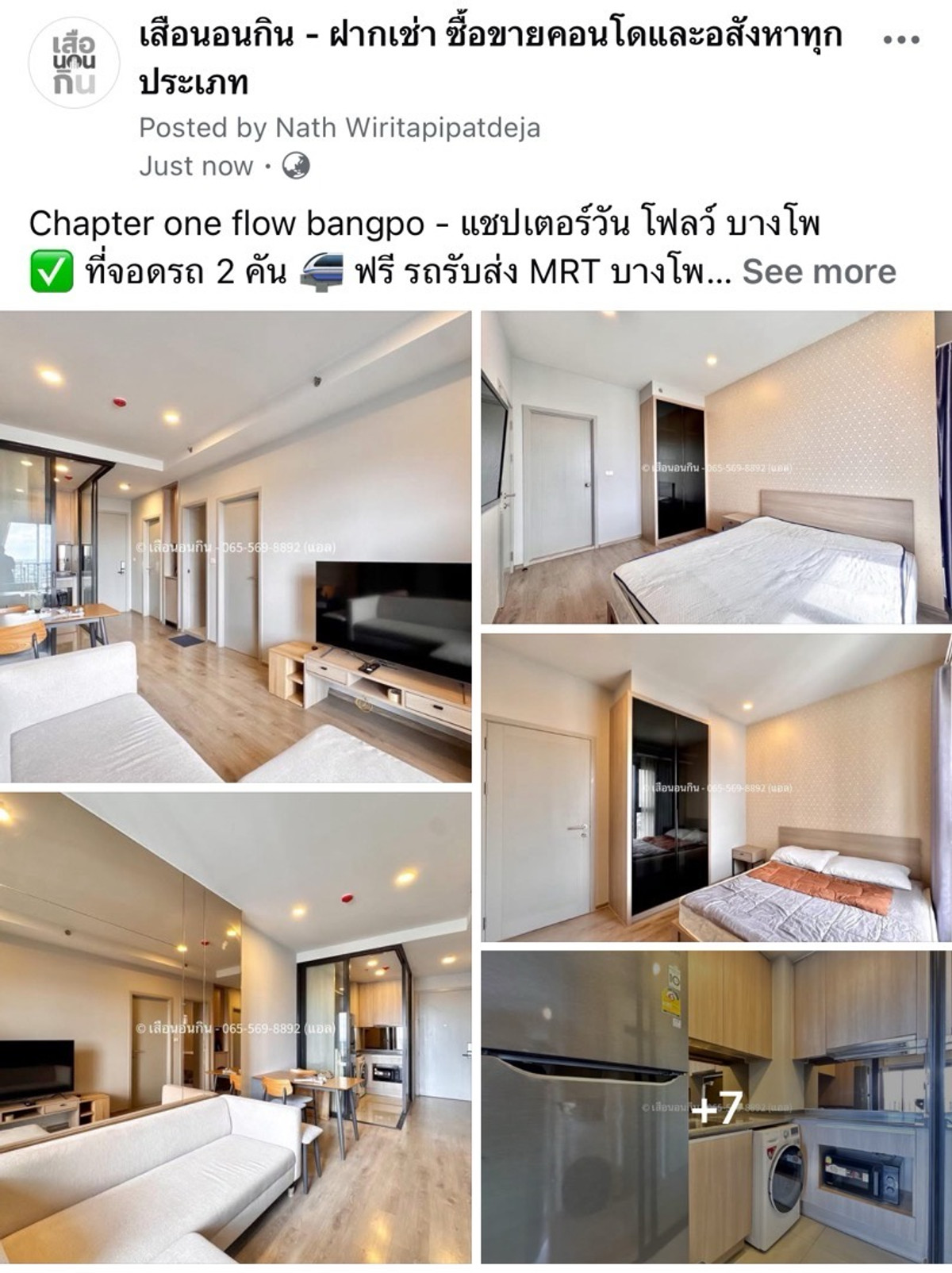 Chapter one flow bangpo - แชปเตอร์วัน โฟลว์ บางโพ ✅ ที่จอดรถ 2 คัน 🚝 ฟรี รถรับส่ง MRT บางโพ 🍾 โครงการใหม่พร้อมเข้าอยู่ วิวแม่น้ำจากระเบียงห้อง 🪪 ระบบความปลอดภัย 2 ชั้น keycard-face scan 🏠 2 ห้องนอน 1 ห้องน้ำ 1 ห้องครัว (ครัวปิด) ขนาด 50 ตรม. ชั้น 31 วิวแม่น้ำ ระเบียงกว้าง จอดรถ 2 คัน 🛋️ เฟอร์นิเจอร์ เครื่องใช้ไฟฟ้า ครบ เตียง 5 ฟุตทั้ง 2 ห้อง 🪑 20,000 / เดือน ( สัญญาเริ่มต้น 1 ปี ) ประกัน 2 เดือน , ล่วงหน้า 1 เดือน ▶️ จอง / นัดดูห้อง Contact Call. คลิกเพื่อดูเบอร์โทรติดต่อ ( แอล ) ag Line official : https://lin.ee/GMLgTyt **no co**