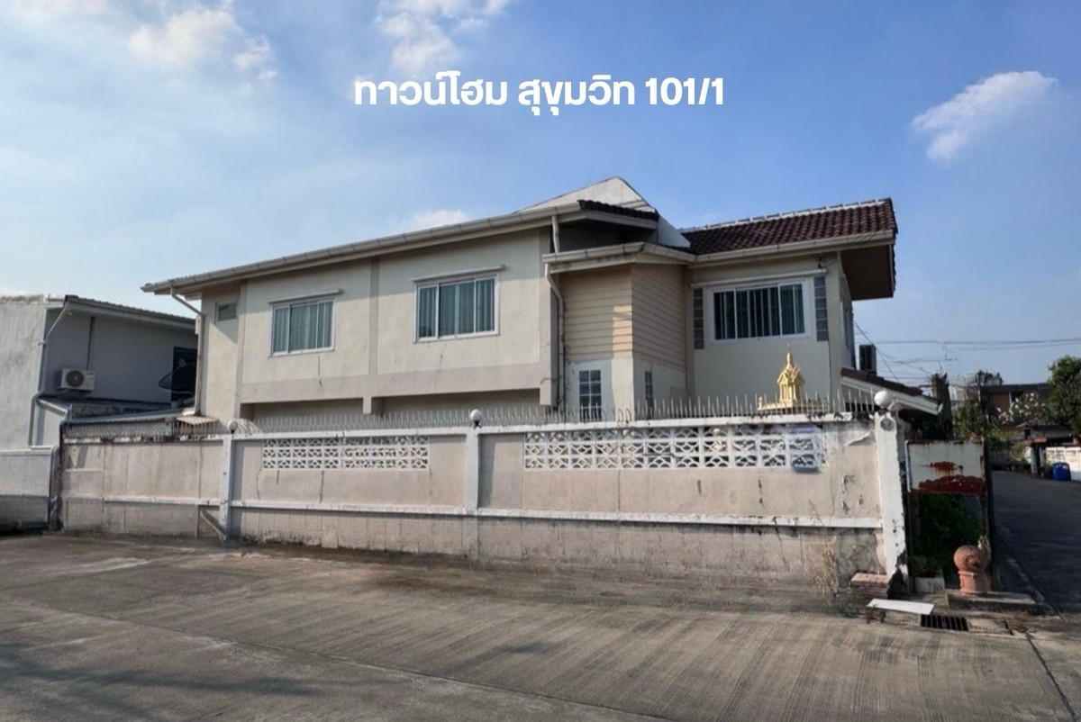 ขายทาวน์โฮม 2 ชั้น หลังมุม – หมู่บ้านทับแก้ว สุขุมวิท 101/1 ทำเลแบบนี้ หาไม่ได้บ่อย ใกล้ BTS เดินทางสะดวก ราคาเพียง 4.95 ล้านบาท รายละเอียด * ทาวน์โฮม 2 ชั้น หลังมุม ขนาดที่ดิน 36 ตารางวา พื้นที่ใช้สอยประมาณ 140 ตรม. * 4 ห้องนอน 2 ห้องน้ำ * มีห้องคร้ว และห้องเก็บของ * โถงกลางบ้านขนาดใหญ่ * สามารถจอดรถได้ 1-2 คัน * หันหน้าทางทิศตะวันออก รับแดดเช้า บรรยากาศดี * ถนนหน้าบ้าน และบริเวณโดยรอบมีการปรับปรุงใหม่ และกว้างขวาง สถานที่ใกล้เคียง * หมู่บ้านทับแก้ว สุขุมวิท 101/1 ตั้งอยู่ใน ซอยวชิรธรรม 29 (หรือซอยวชิรธรรมสาธิต 58) บนถนนสุขุมวิท 101/1 แขวงบางจาก เขตพระโขนง กรุงเทพมหานคร * เดินทางสะดวก เข้าออกได้หลายทาง สุขุมวิท 101 และ สุขุมวิท 101/1 * ใกล้รถไฟฟ้าสายสีเขียว สถานีปุณณวิถี และ สายสีเหลือง สถานี สวนหลวง ร.9 * Ture Digital Park และ Cloud 11 * พาราไดซ์พาร์ค และ ซีคอนสแควร์ * ละแวกบ้านมีร้านค้า ร้านอาหาร และสิ่งอำนวยความสะดวกครบ * ใกล้กับ Tops Market ปิยรมย์ * ใกล้โรงเรียนนานาชาติแองโกลสิงคโปร์ * บ้านหลังนี้เหมาะมากสำหรับครอบครัวที่ต้องการพื้นที่ใช้สอยเยอะ อยู่โซนสุขุมวิทในราคาเอื้อมถึง * อยู่ในโซนชุมชน เข้าออกได้หลายเส้นทาง สนใจนัดชม ฝากขายทรัพย์ ติดต่อ: คุณพอล Tel/line: คลิกเพื่อดูเบอร์โทรติดต่อ Line OA: @paulestate #บ้านสุขุมวิท101 #ทาวน์โฮมสุขุมวิท101