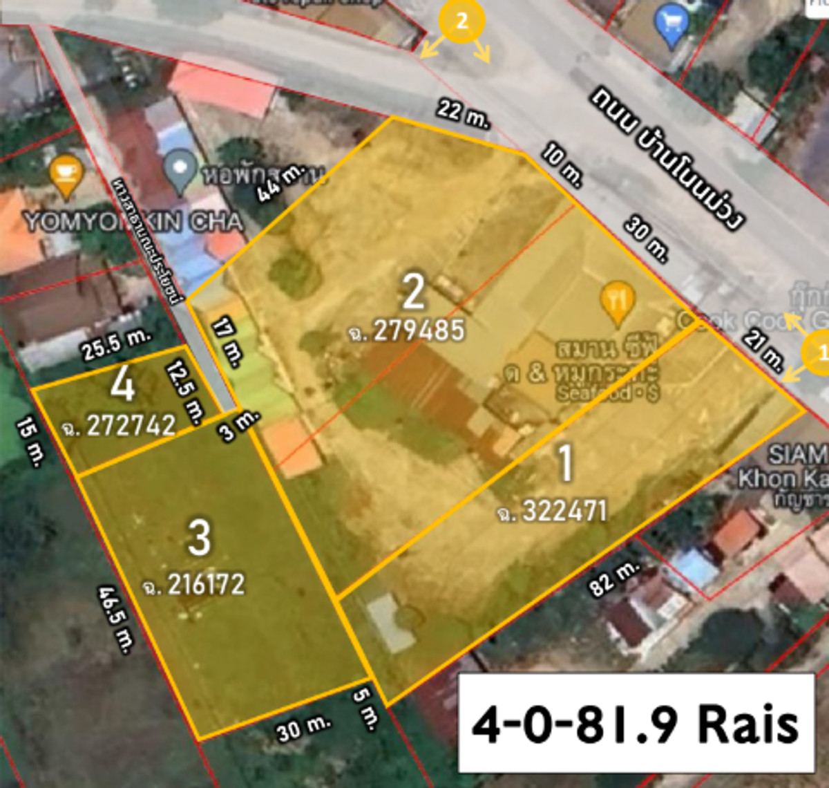 ขนาดที่ดิน 4 ไร่ 81 ตร.ว.
