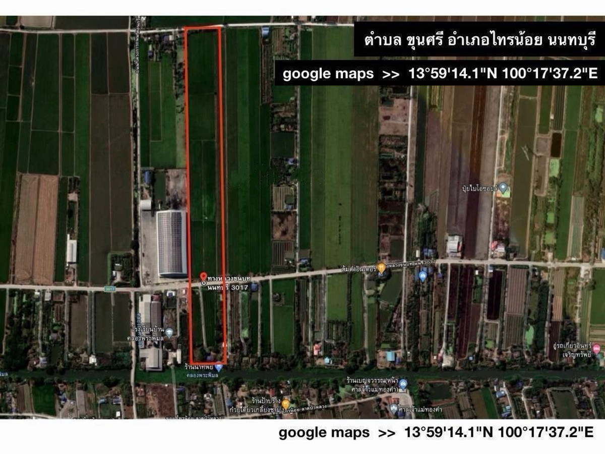 " ขายที่ดินแปลงใหญ่ ทําเลดี ขุนศรี ไทรน้อย นนทบุรี — ริมคลองพระพิมล ติดทางหลวง ชนบทกว้าง 30 เมตร " ที่ดินรูปสี่เหลี่ยมผืนผ้า มี 2 แปลง ติดถนนทางหลวงชนบท 3017 เดินทางสะดวก ที่ดินสวย ทําเลกําลังพัฒนา ใกล้โรงสีขุนศรี บ้านจัดสรร โฮมออฟฟิศ ⸻ ⸻ ⸻ ⸻ ⸻ ⸻ 🟩 แปลงใหญ่ (40 ไร่ 3 งาน 44.3 ตร.วา) — ราคาขาย 143,100,000 บาท ราคา: 3.5 ล้านบาท/ไร่ * หน้ากว้าง: 85 เมตร * ลึก: 765 เมตร * ลักษณะ: สี่เหลี่ยมผืนผ้า * หน้าแปลงติดทางหลวงชนบทกว้าง 30 เมตร * หลังแปลงติดถนนและลํารางสาธารณะ _ _ _ _ _ _ _ _ _ _ _ _ _ _ _ 🟩 แปลงเล็ก (12 ไร่ 59.4 ตร.วา) — ราคาขาย 46,170,000 บาท ราคา: 3.8 ล้านบาท/ไร่ * หน้ากว้าง: 85 เมตร * ลึก: 235 เมตร * ลักษณะ: สี่เหลี่ยมผืนผ้า * หน้าแปลงติดทางหลวงชนบทกว้าง 30 เมตร * หลังแปลงติดคลองพระพิมล_ _ _ _ _ _ _ _ _ _ _ _ _ _ _ 🟩 ซื้อทั้ง 2 แปลงรวม (53 ไร่ 3.7 ตร.วา) — ราคาขาย 185,540,000 บาท ราคาเหมารวม: 3.5 ล้านบาท/ไร่ *** ค่าธรรมเนียมการโอน ภาษี และอากรแสตมป์ ผู้ขายออกให้ทั้งหมด *** ⸻ ⸻ ⸻ ⸻ ⸻ ⸻ จุดเด่น: * เหมาะมากแก่การพัฒนาเป็นโครงการใหญ่ เช่น โครงการบ้านจัดสรร โฮมออฟฟิศ โรงงาน หรือ โกดังขนาดกลาง –ใหญ่ * บริเวณโดยรอบมีโครงการพัฒนาอย่างต่อเนื่อง ส่งผลให้ศักยภาพของที่ดินสูงขึ้นในอนาคตเหมาะแก่การลงทุนระยะยาว ⸻ ⸻ ⸻ ⸻ ⸻ ⸻ ทําเลที่ตั้ง: ขุนศรี ไทรน้อย นนทบุรี แปลงใหญ่ https://maps.app.goo.gl/qUaV9L84XAXVcqJz6?g_st=ipc แปลงเล็ก: https://maps.app.goo.gl/Y2VWz7Dr3LBWc6LW8?g_st=ipc ⸻ ⸻ ⸻ ⸻ ⸻ ⸻ ผังเมือง: สีเขียว ก.2-13 ⸻ ⸻ ⸻ ⸻ ⸻ ⸻ บริเวณที่ดิน: * หน้าแปลงติดทางหลวงชนบท 3017 กว้าง 30เมตร * ยังไม่ถม (เหมาะให้ผู้ซื้อปรับระดับเองตามโปรเจกต์) * นํ้า–ไฟเข้าถึง ⸻ ⸻ ⸻ ⸻ ⸻ ⸻ สถานที่ใกล้เคียง: * ใกล้แหล่งชุมชน * Central Westgate 21 km * MRT สายสีม่วง สถานีคลองบางไผ่ 19 km ⸻ ⸻ ⸻ ⸻ ⸻ ⸻ — ผ่านเจ้าของโดยตรง — ติดต่อสอบถาม / นัดดูที่ดิน: โทร: คลิกเพื่อดูเบอร์โทรติดต่อ Line: icrm. (มีจุด)