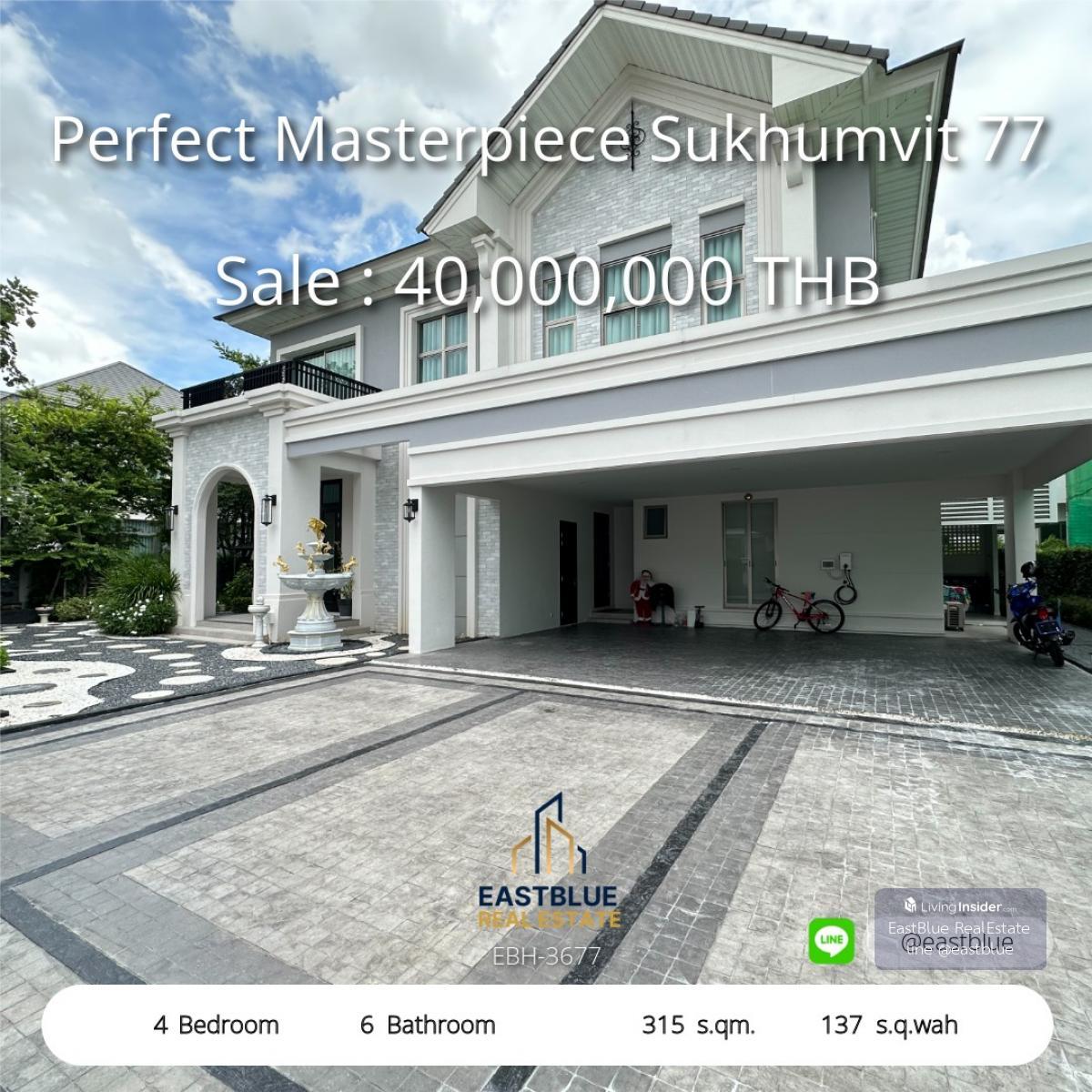 Project : Perfect Masterpiece Sukhumvit 77 ID : EBH-3677 4 Bed 6 Baht House Area :315 sqm Land Area :137 sq.wah Rental Price : 250,000 THB per month Selling Price : 40,000,000 THB . ิติดต่อ Contact, Appointment for viewing. call: คลิกเพื่อดูเบอร์โทรติดต่อ WhatsApp: คลิกเพื่อดูเบอร์โทรติดต่อ - Eastblue เราคือทีมตัวแทนอสังหาริมทรัพย์มืออาชีพ ที่ได้รับความไว้วางใจด้วยยอดขายรวมมูลค่าหลายพันล้านบาท พร้อมทีมที่ปรึกษาผู้เชี่ยวชาญด้านการซื้อ ขาย และการลงทุนในอสังหาริมทรัพย์ . ดูทรัพย์อื่นๆมากกว่า 50,000 รายการ ,explore over 50,000 listings on our website: https://www.eastblueth.com ❗️❗️not accept co-agent❗️❗️ . Perfect Masterpiece Sukhumvit 77 ID: EBH-3677 • 4 ห้องนอน 6 ห้องน้ำ ที่จอดรถ 6 คัน (จอดซ้อนคัน) • พื้นที่ใช้สอย 315 ตร.ม. ขนาดที่ดิน 137 ตร.วา • ห้องนั่งเล่น 1 ห้อง • ห้องพักผ่อน 1 ห้อง • ห้องครัว 1 ห้อง • ห้องอเนกประสงค์ (ห้องนอน 4) • ห้องแม่บ้าน 1 ห้อง ราคาเช่า 300,000 บาท/เดือน ราคาขาย 45,000,000 บาท จุดเด่นโครงการ • บ้านหันทิศเหนือ ไม่โดนสายไฟหน้าบ้าน • พร้อมเข้าอยู่ทันที สิ่งอำนวยความสะดวกในโครงการ • สภาพแวดล้อมดี ร่มรื่น สถานที่ใกล้เคียง • สนามบินสุวรรณภูมิ 7 กม. • โรบินสันลาดกระบัง 5 กม. #PerfectMasterpieceSukhumvit77 #บ้านหรู #บ้านเช่า #บ้านขาย #Sukhumvit77