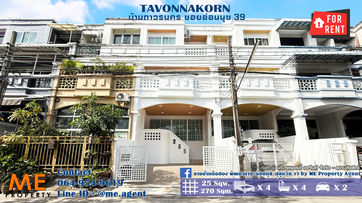 ให้เช่า ทาวน์โฮม 3.5 ชั้น ถาวรนคร อ่อนนุช39 พื้นที่ใหญ่กว่าบ้านเดี่ยว 270 ตรม. พร้อมเฟอร์นิเจอร์ เข้าอยู่ได้ทันที ใกล้รถไฟฟ้า BTS อ่อนนุช และ ใกล้ MRT ศรีนุช โทร คลิกเพื่อดูเบอร์โทรติดต่อ (RTS16-25) . แบบทาวน์โฮมเล่นระดับเหมาะสำหรับอยู่อาศัย ครอบครัวขนาดใหญ่ ใกล้แยกศรีนครินทร์,ตลาด เข้า-ออกได้ ซ.อ่อนนุช39 และ ซ.พัฒนาการ38 , ตลาดเอี่ยมสมบัติ . - เนื้อที่ 25 ตร.วา. พื้นที่ใช้สอย 270 ตร.ม. - 4 ห้องนอน 4 ห้องน้ำ 1 ห้องครัว - 2 ห้องนั่งเล่น - 2 ที่จอดรถ - พร้อมมีชั้นดาดฟ้า จุดเด่นของบ้านหลังนี้ - บ้านมีการเล่นระดับ - พื้นที่ใหญ่กว่าบ้านเดี่ยว - ไม่เสียค่าส่วนกลาง - หน้าหมู่บ้านมี Mini Big C (300ม.) จากหน้าบ้าน . ค่าเช่าเพียง 47,000 บาท/เดือน . สนใจติดต่อ ME Property Agent โทร: คลิกเพื่อดูเบอร์โทรติดต่อ (K.มุก) LINE: @me.agent Instagram: mepropertyagent TikTok: meagent YouTube: @meagent5131 Facebook: ขายบ้านมือสอง พัฒนาการ-อ่อนนุช-สุขุมวิท 77 by ME Property Agent . สถานที่ใกล้เคียง - Mini Big C อยู่หน้าหมู่บ้าน - ตลาดเอี่ยมสมบัติ - Seacon Square - Paradise Park - Thanya Park - Makro สาขาศรีนครินทร์ และสาขาอ่อนนุช - Tesco Lotus สาขาพัฒนาการ และสาขาอ่อนนุช - Big C อ่อนนุช - BTS อ่อนนุช และใกล้รถไฟฟ้าสายสีเหลือง สถานีศรีนุช #MEpropertyagent #ONEStopService #บ้านมือสอง #บ้านพัฒนาการ #บ้านอ่อนนุช #รับฝากขายบ้านและที่ดิน #นายหน้าขายบ้านและที่ดิน #บ้านมือสอง #หมุ่บ้านถาวรนครอ่อนนุช39 #ทาวน์เฮ้าส์อ่อนนุช #ทาวน์เฮ้าส์3ชั้น #พร้อมอยู่ #บ้านมือสอง #ทำเลดี #พัฒนาการ #อ่อนนุชตัดใหม่ #ประเวศ #เอกมัย #สวนหลวง #khaibaan #รับฝากขาย #ให้เช่า #จำนอง #ขายฝาก