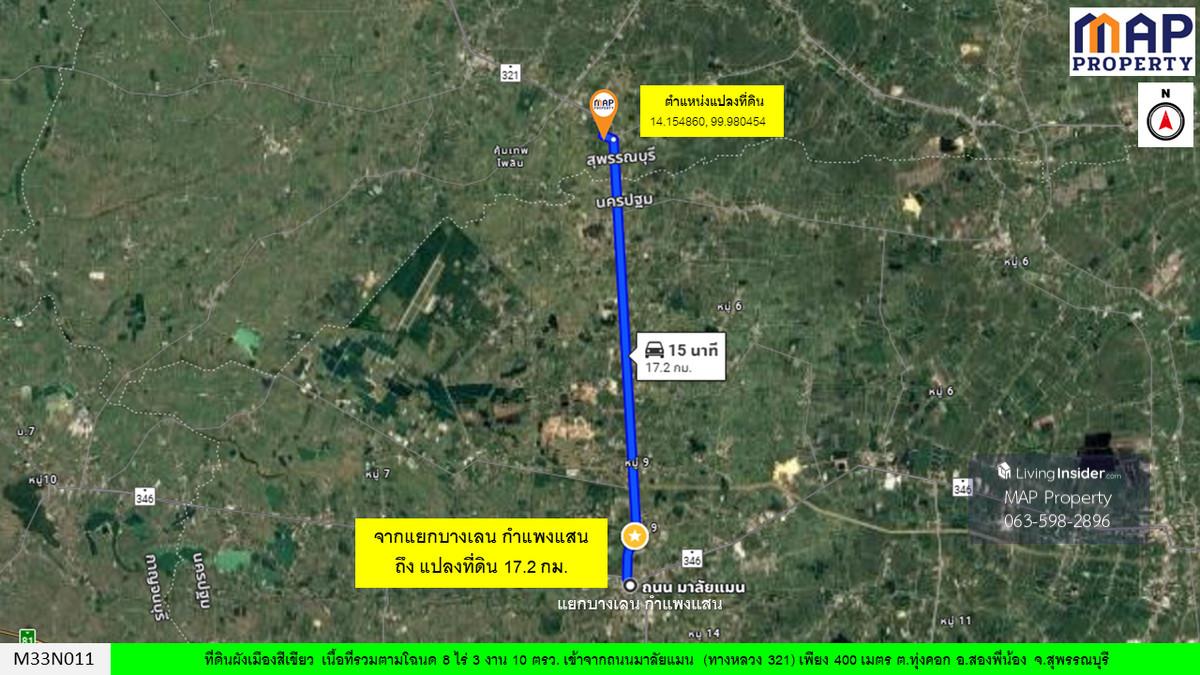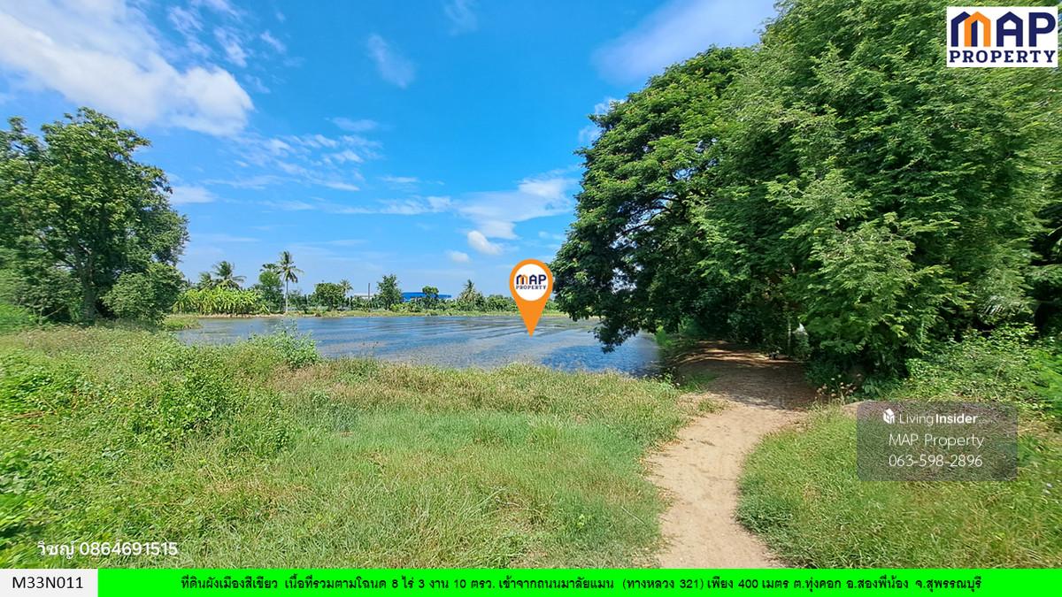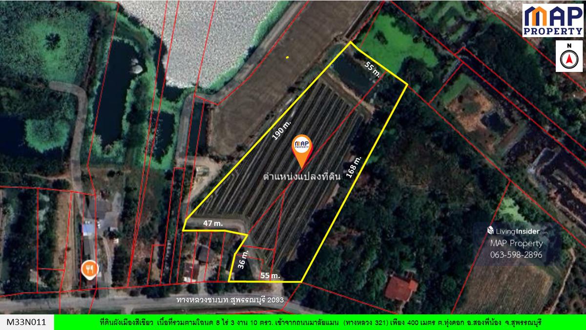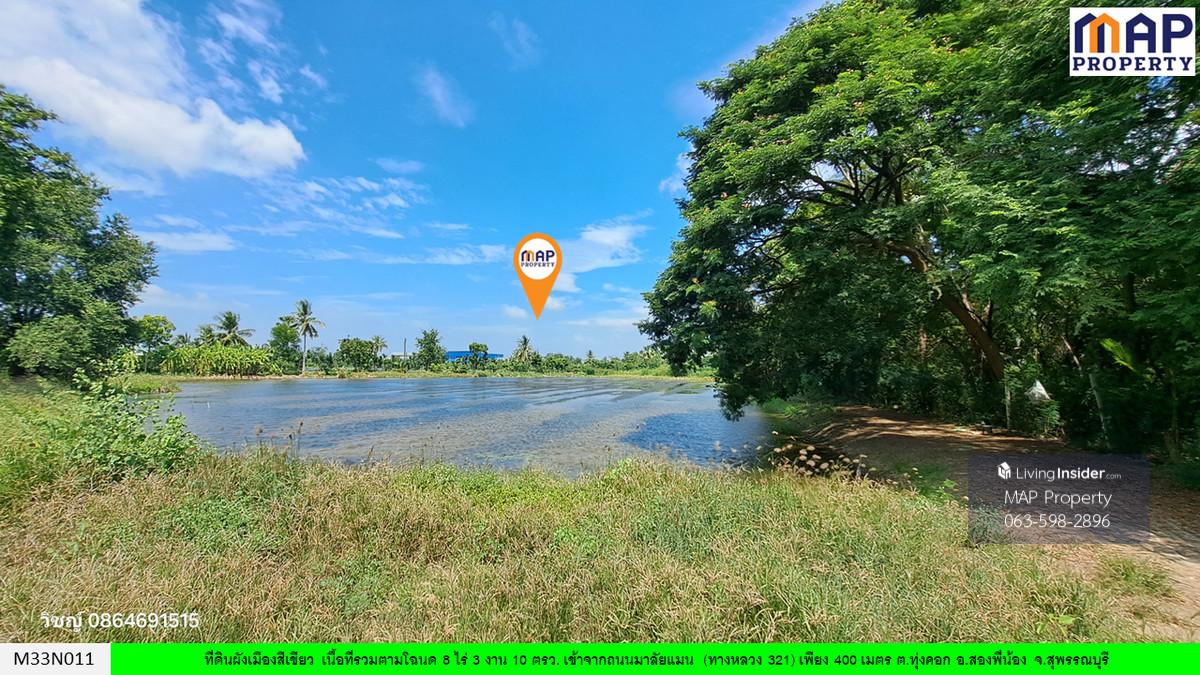 ที่ดินผังเมืองสีเขียว ใกล้ถนนมาลัยแมน (ทางหลวง 321) ต.ทุ่งคอก อ.สองพี่น้อง จ.สุพรรณบุรี -เนื้อที่ 8-3-10 ไร่ เป็นพื้นที่ทุ่งนาเดิม ไม่ได้ขุดดินหรือขุดบ่อแต่อย่างใด อากาศดี เดินทางสะดวกมาก: -ติดทางหลวง