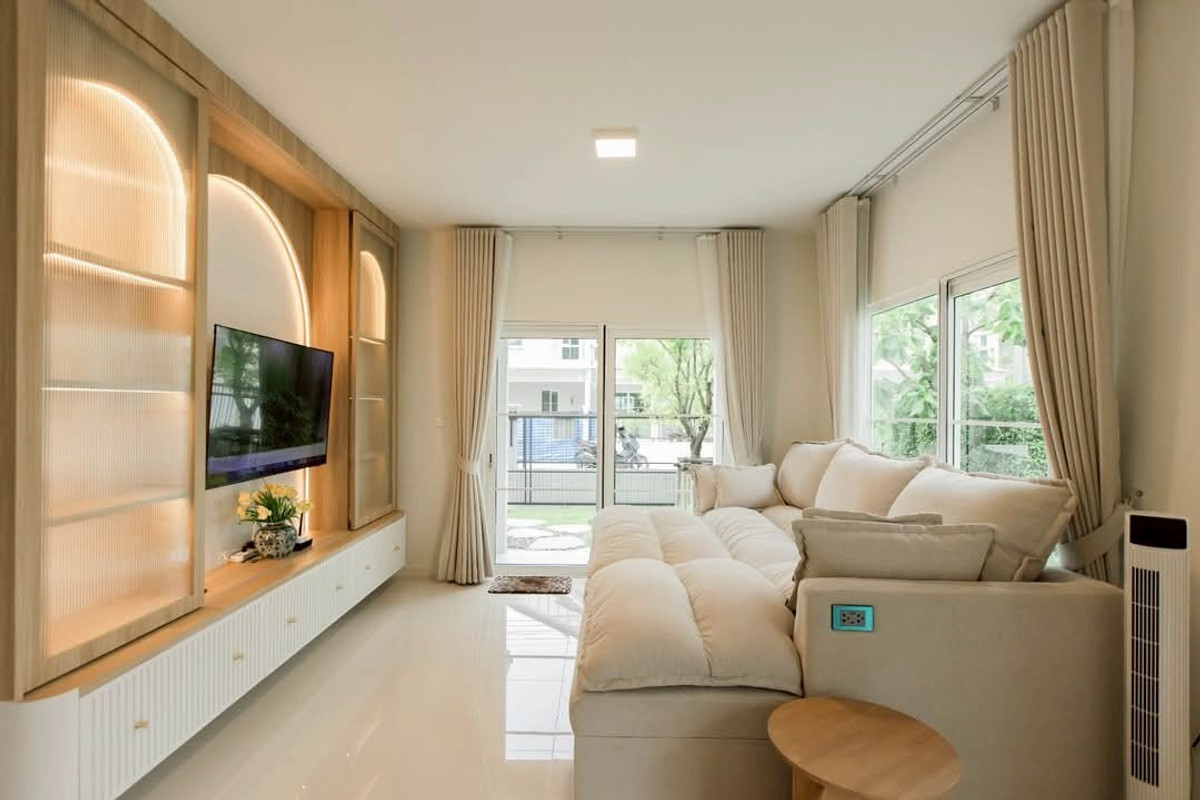 SH88 ให้เช่า บ้านเดี่ยว หมู่บ้าน วิลลาจจิโอ 3 ศรีนครินทร์-บางนา Villaggio 3 Srinakarin-Bangna #บ้านเดี่ยวใกล้เมกาบางนา #บ้านเดี่ยวถนนเลียบคลองหลวงแพ่ง #จุดเด่น : บ้านตกแต่งสวยพร้อมอยู่ ไม่เคยมีใครเข้าอยู่มาก่อน #รายละเอียด - รหัสทรัพย์ : SH88 - หมู่บ้าน : วิลลาจจิโอ 3 ศรีนครินทร์-บางนา (Villaggio 3 Srinakarin-Bangna) ** เช่า : 75,000 บาท/เดือน - รวมค่าส่วนกลางแล้ว - สัญญาขั้นต่ำ 1 ปี มัดจำ 2 เดือน และ ล่วงหน้า 1 เดือน - ไม่รับเคสมีสัตว์เลี้ยง, สูบบุหรี่ และ ทำธุรกิจกัญชา - ประเภท : บ้านเดี่ยว - แบบบ้าน : Comfy - ตำแหน่งบ้าน : หลังกลาง - ขนาด : 52.10 ตารางวา - พื้นที่ใช้สอย : 208.4 ตารางเมตร - จำนวนชั้น : 2 ชั้น - จำนวนห้อง : 3 ห้องนอน 3 ห้องน้ำ 1 ห้องอเนกประสงค์ - จอดรถ : 2 คัน - เฟอร์นิเจอร์และตู้เสื้อผ้าโต๊ะเครื่องแป้งบิ้วอิน สไตล์ cozy มินิมอล - ตกแต่งห้องครัวบิ้วอินตู้ผนัง - ต่อเติมหลังคาหลังบ้าน และลานจอดรถปูหินสวยงาม - ตู้ชั้นเก็บของต่างๆ - โซฟา luxury ขนาดใหญ่ สามารถปรับเป็น daybed ได้ - ชุดโต๊ะกินข้าว 4 ที่นั่ง - แอร์ 4 เครื่อง / living Room / 1 ห้องนอนใหญ่ / 2 ห้องนอน #ห้องนอน - ห้องใหญ่ เตียง6ฟุต+ที่นอน ตู้เสื้อผ้า โต๊ะเครื่องแป้ง - ห้องนอนกลาง เตียง6ฟุต+ที่นอน ตู้เสื้อผ้า โต๊ะเครื่องแป้ง - ห้องเล็ก เตียง5ฟุต+ที่นอน ตู้เสื้อผ้า โต๊ะเครื่องแป้ง #เครื่องใช้ไฟฟ้า - CCTV หน้าบ้าน 1 ตัว ในบ้าน 1 ตัว - ระบบ Home automation และ สัญญาณกันขโมย พร้อมทั้งมี home air filter กรองอากาศทั้งบ้าน - ทีวี 55 นิ้ว Samsung Crystal UHD 4K SMART TV 2 เครื่อง - ตู้เย็น LG Instaview Door-in-Door รุ่น GC-X257CMEW ขนาด 22.4 คิว - เครื่องซักผ้าฝาหน้า Electrolux 10KG - เตาไฟฟ้าแบบ Induction+ที่ดูดควัน - เครื่องทำน้ำอุ่น 3 ตัว - กระจกกั้นอาบน้ำ/ผ้าม่านพร้อมชุดม่าน Back out + ม่านโปร่ง+มู่ลี่ ทั้งหลัง #สิ่งอำนวยความสะดวก : Clubhouse, สวนสาธารณะ, สนามเด็กเล่น, สระว่ายน้ำระบบเกลือ, ฟิตเนส, ทะเลสาบขนาดใหญ่, Co-Working Space, Library Room, CCTV, เข้า-ออกผ่านระบบ LPR และ VMS, รปภ.24 ชม. #ทำเล ที่ตั้ง - ซอย พัฒนา 2 ตำบลบางแก้ว อำเภอบางพลี สมุทรปราการ 10540 - ใกล้ Mega Bangna, ทางด่วนบางนา, รถไฟฟ้า และสนามบินสุวรรณภูมิ #ติดต่อ คุณบอย : เพื่อความสะดวกและข้อมูลที่ชัดเจนกรุณาแอดไลน์ และแจ้งรหัสทรัพย์ : SH88 : ติดต่อผ่าน line : https://page.line.me/989rdsgq : ID line : @989rdsgq : โทร : 084_282_3944 #ติดตาม บ้านและคอนโดสวยๆ จากช่องทางด้านล่างค่ะ - เว็บไซต์ : https://bit.ly/3WPDFqd - เพจ Facebook : บ้าน คอนโด มือสอง by Jangproperty - คลิกลิงค์ >> https://web.facebook.com/jangproperty9