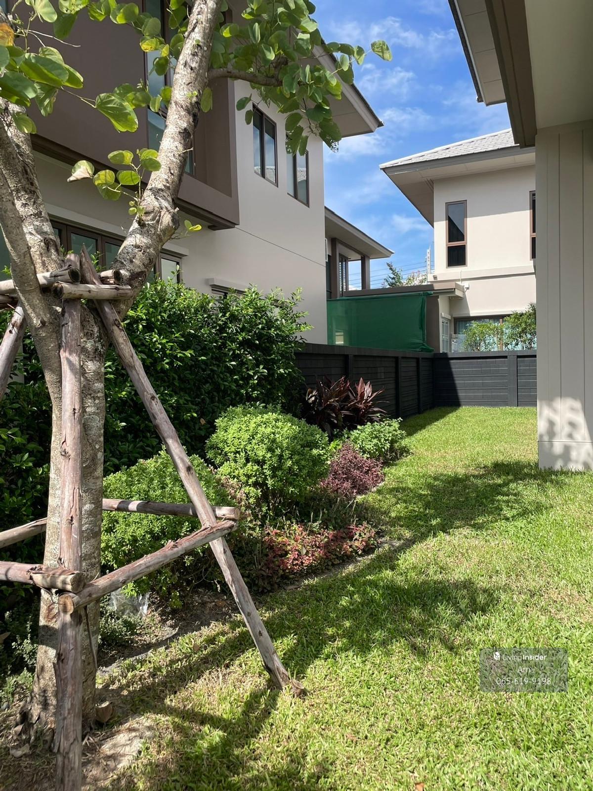 Burasiri Krungthep Kreetha: Land area: 65.2 sqwah Usable area: 238 sqm. 4bed 4bath Thai and Western kitchen 3 parking with EV charger Solar Roof Rent: 160,000/mth. -900 meter from Brighton College -Ne