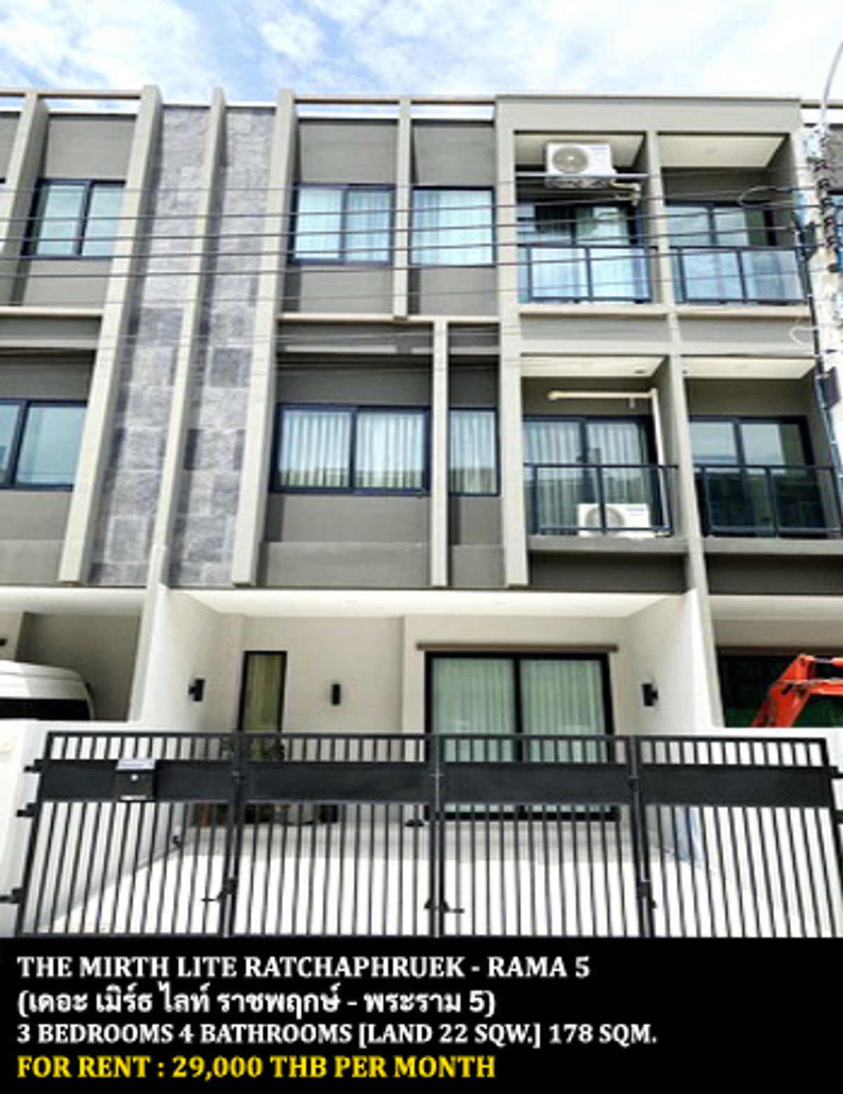 ทาวน์โฮมให้เช่า โครงการ : หมู่บ้าน เดอะ เมิร์ธ ไลท์ ราชพฤกษ์ - พระราม 5 ที่ตั้ง : ถนน นครอินทร์ ตำบลบางขุนกอง อำเภอบางกรวย นนทบุรี อสังหาริมทรัพย์ : ทาวน์โฮม จำนวนห้องนอน / ห้องน้ำ : 3 ห้องนอน 4 ห้องน้ำ ขนาดที่ดิน : 22 ตารางวา พื้นที่ใช้สอย : 178 ตารางเมตร รายละเอียด : เฟอร์นิเจอร์ครบชุด สถานที่ใกล้เคียง : - ร.ร.เด่นหล้า พระราม 5 - มหาวิทยาลัยราชพฤกษ์ - เดอะ วอล์ค ราชพฤกษ์ ------------------------------------------------------- ราคาเช่า : 29,000 บาท / เดือน ------------------------------------------------------- ต้องการนัดหมายเข้าชมหรือต้องการข้อมูลเพิ่มเติม กรุณาติดต่อ เบอร์ติดต่อ : คลิกเพื่อดูเบอร์โทรติดต่อ [คุณนัท] LINE ID : @roomfinderthailand [ใส่ @ ด้วยครับ] WHAT'S APP : คลิกเพื่อดูเบอร์โทรติดต่อ WECHAT : saintz69 EMAIL : คลิกเพื่อดูอีเมล llllllllllllllllllllllllllllllllllllllllllllllllllllllllllllllllllllllllllllllllllllllll ROOMFINDER (THAILAND) CO.,LTD. PROPERTY AGENTS HOMEPAGE : www.facebook.com/roomfinderthailand ------------------------------------------------------- บริษัท รูมไฟเดอร์ (ไทยแลนด์) จำกัด ตัวแทนรับฝาก ขาย เช่า อสังหาริมทรัพย์ทุกชนิด
