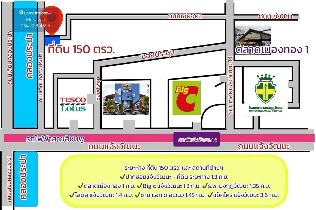ขายที่ดินแปลงสวย ที่ตั้ง ซอยแจ้งวัฒนะ 14 ✔️ที่ดิน 2 แปลง แปลงละ 75 ตารางวา เนื้อที่ติดกัน รวมเนื้อที่ 150 ตารางวา ✔️ที่ดินถมสูงกว่าถนน 60 ซม. ✔️มีต้นไม้ใหญ่ในที่ดิน ร่มรื่น ✔️ปลูกไม้ผล มะม่วง กล้วย ✔️ที่ดิน (บ้าน) รอบข้าง สงบ ร่มรื่น ✔️ใกล้สถานีรถไฟฟ้าส่ยสีชมพู, โลตัส, ชาน แอท ดิ อเวนิว, บิ๊กซี, รพ.มงกุฎวัฒนะ, ตลาดเมืองทอง1, แม็คโคร ✔️เจ้าของขายเอง ท่านสามารถติดต่อสอบถามได้