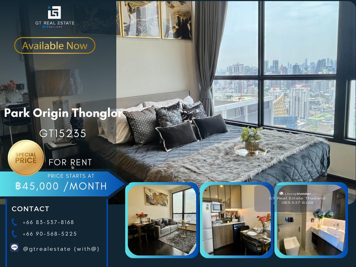 CODE : GT15235 Project : Park Origin Thonglor Type : 1 ห้องนอน 1 ห้องน้ำ Size : 37 ตร.ม. Floor : 21+ อาคาร : - MRT/BTS : BTSทองหล่อ Rental Price : ราคาพิเศษเพียง 45,000 บาทต่อเดือนเท่านั้น!!! จากราคาป