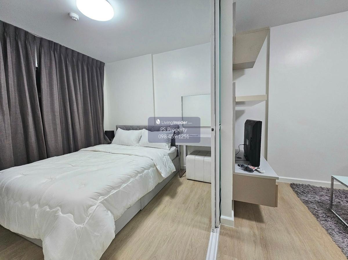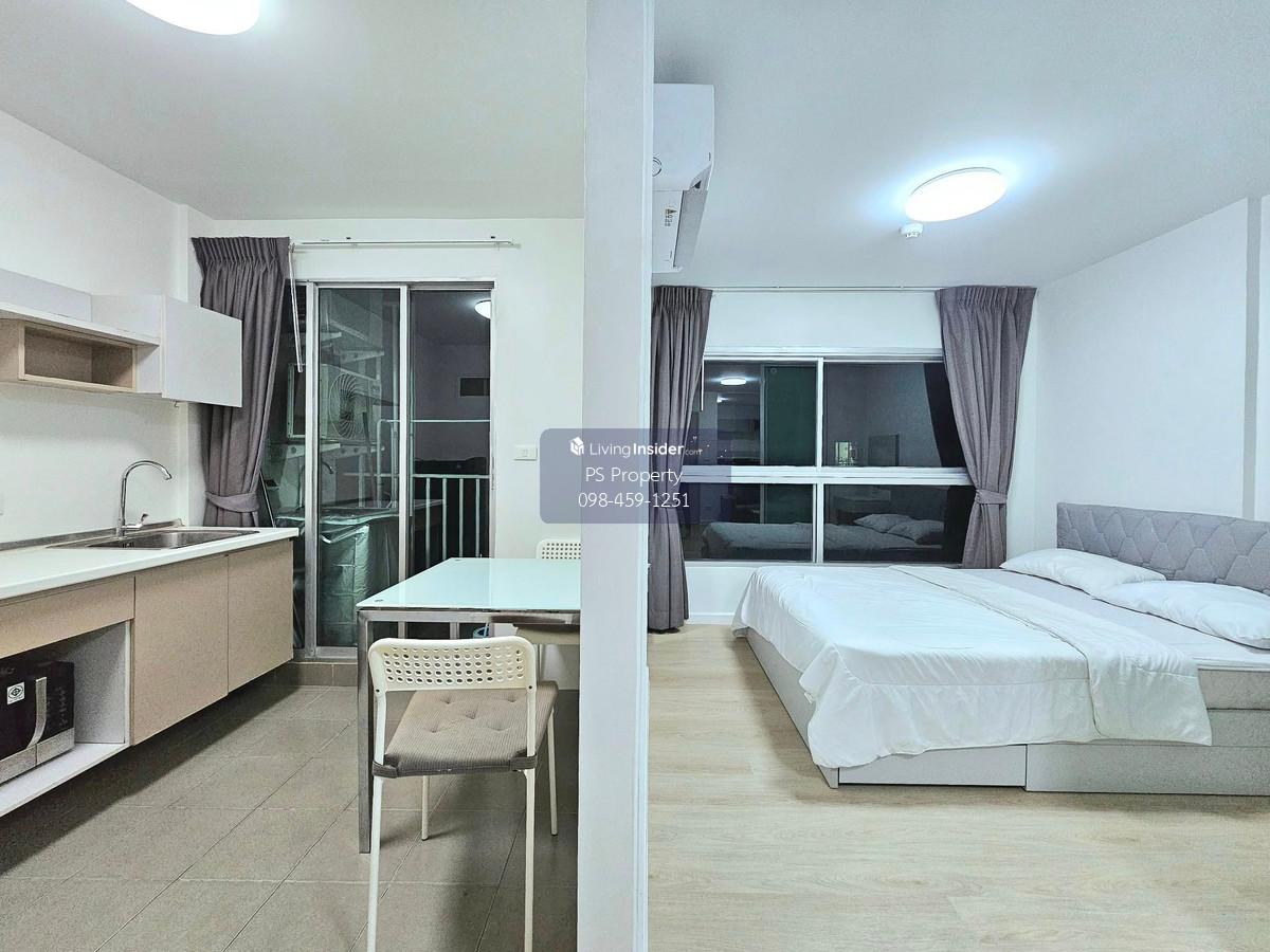ราคา: 12,000 บาท/เดือน  ขนาด: 30 ตรม.  ชั้น: 7 ตึก: D รูปแบบห้อง: ONE BEDROOM สิ่งอำนวยความสะดวก: ร้านสะดวกซื้อ, กล้องวงจรปิด, คีย์การ์ด, ฟิตเนส, สระว่ายน้ำ, ห้องซักรีด, รปภ. 24 ชม. เฟอร์นิเจอร์: ทีวี