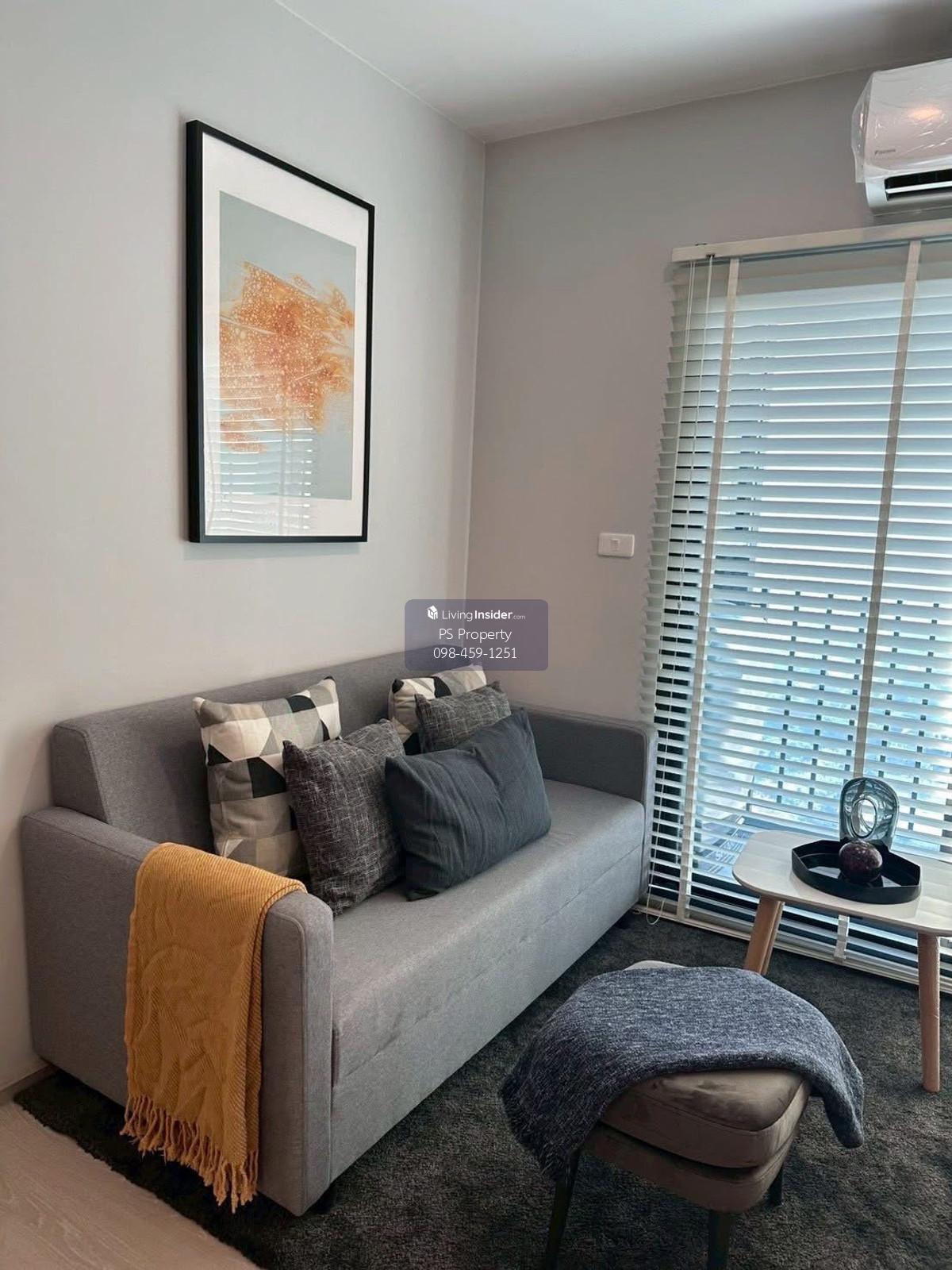 ราคา: 9,500 บาท/เดือน  ขนาด: 30 ตรม.  ชั้น: 10+ รูปแบบห้อง: ONE BEDROOM สิ่งอำนวยความสะดวก: ร้านสะดวกซื้อ, กล้องวงจรปิด, คีย์การ์ด, ฟิตเนส, สระว่ายน้ำ, ห้องซักรีด, รปภ. 24 ชม. เฟอร์นิเจอร์: ทีวี, โซฟา