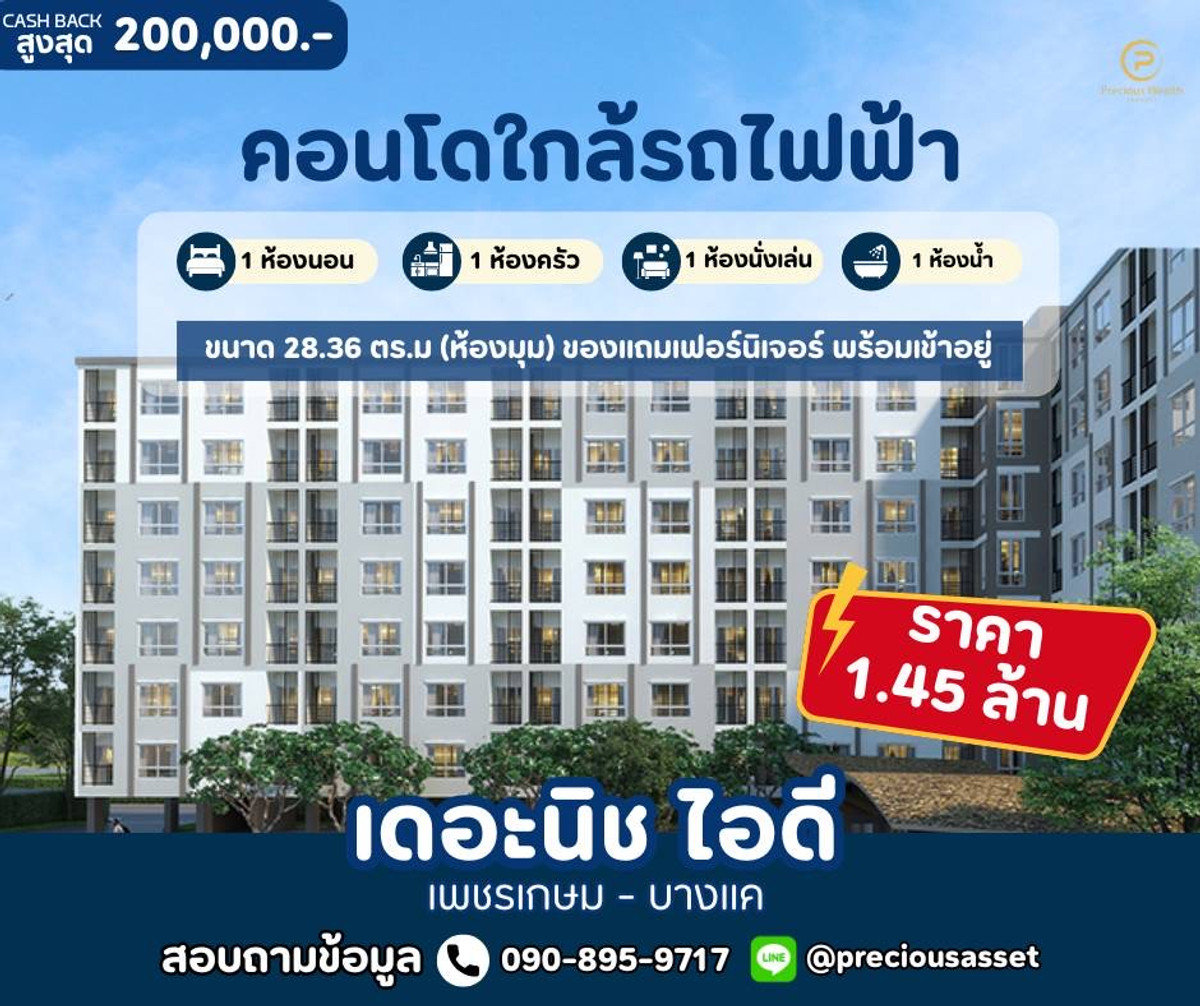 🏙️ ขายคอนโด นิช ไอดี เพชรเกษม - บางแค ใกล้รถไฟฟ้าเดินทางสะดวก ⭐️ รหัสทรัพย์ : CD-54368 💎 รายละเอียด ➡️ ขนาด 28.36 ตร.ม. ชั้น 2 อาคาร c ➡️ 1 ห้องนอน | 1 ห้องน้ำ ➡️ เฟอร์นิเจอร์ครบพร้อมเข้าอยู่✅ 💥ราคาขาย 1,450,000 ฿💥 ✨สิ่งอำนวยความสะดวก 🔷 สระว่ายน้ำ 🔷 ฟิตเนส 🔷 Jogging Track 🔷 สนามเด็กเล่น 🔷 ลานโยคะกลางแจ้ง 🔷 Out door-working 🔷 ลิฟต์ล็อกชั้น 🔷 Access Card 🔷 ระบบ CCTV 🔷 รปภ. 24 ชม. 📍 สถานที่ใกล้เคียง : 🔸 ซีคอน บางแค : 3.6 กม. 🔸 เทสโก้ โลตัส บางแค : 3.6 กม. 🔸 สำเพ็ง 2 : 3.9 กม. 🔸 บิ๊กซี กัลปพฤกษ์ : 3.2 กม. 🔸 แม็คโคร : 8.9 กม . 🔸เทสโก้ โลตัส กัลปพฤกษ์ : 8.7 กม. 🔸 ตลาดบางแค : 1.2 กม. 🔸 รพ.เพชรเกษม 2 : 3.7 กม. 🔸 รพ.เกษมราษฎร์ บางแค : 4.1 กม. 🔸 รพ.พญาไท 3 : 6.5 กม. ☎ สนใจสอบถามหรือนัดชม • คลิกเพื่อดูเบอร์โทรติดต่อ (ฝ่ายขาย) • คลิกเพื่อดูเบอร์โทรติดต่อ (สำนักงาน) • Line ID: Precious Asset #ปล่อยคอนโด #นืสไอดี #ขายคอนโด #คอนโดพร้อมอยู่ #บางแค #เพชรเกษม #ใกล้รถไฟฟ้า