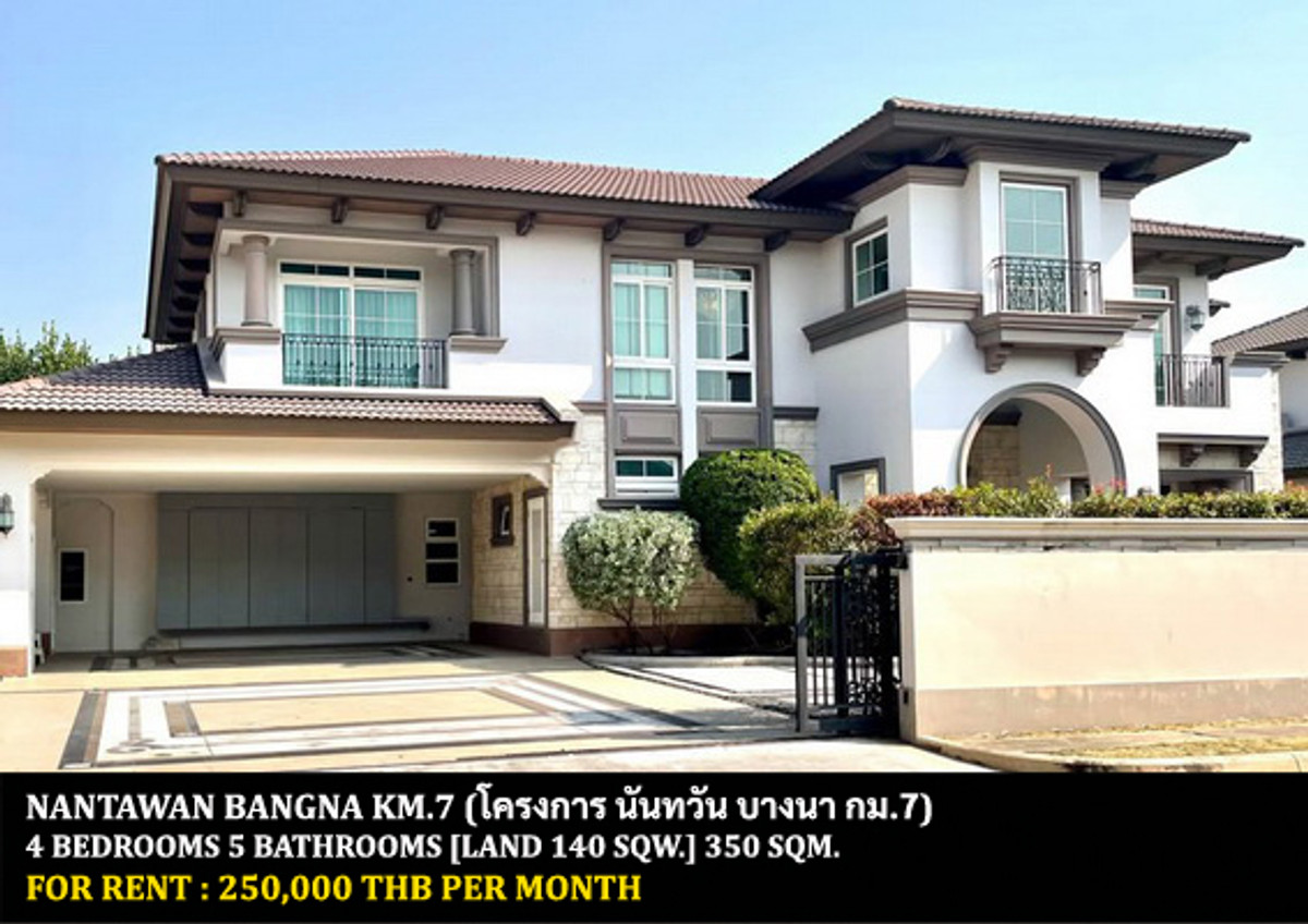 บ้านให้เช่า โครงการ : หมู่บ้าน นันทวัน บางนา กม.7 ที่ตั้ง : ซอย ราชวินิตบางแก้ว ตำบลบางแก้ว อำเภอบางพลี จังหวัดสมุทรปราการ อสังหาริมทรัพย์ : บ้านเดี่ยว จำนวนห้องนอน / ห้องน้ำ : 4 ห้องนอน 5 ห้องน้ำ (1 ห้องแม่บ้าน) ขนาดที่ดิน : 140 ตารางวา พื้นที่ใช้สอย : 350 ตารางเมตร รายละเอียด : เฟอร์นิเจอร์และเครื่องใช้ไฟฟ้าครบชุด สถานที่ใกล้เคียง : - ห้างเมกาบางนา - โรงเรียนนานาชาติคอนคอร์เดียน ------------------------------------------------------- ราคาเช่า : 250,000 บาท / เดือน ------------------------------------------------------- ต้องการนัดหมายเข้าชมหรือต้องการข้อมูลเพิ่มเติม กรุณาติดต่อ เบอร์ติดต่อ : คลิกเพื่อดูเบอร์โทรติดต่อ [คุณนัท] LINE ID : @roomfinderthailand [ใส่ @ ด้วยครับ] WHAT'S APP : คลิกเพื่อดูเบอร์โทรติดต่อ WECHAT : saintz69 EMAIL : คลิกเพื่อดูอีเมล llllllllllllllllllllllllllllllllllllllllllllllllllllllllllllllllllllllllllllllllllllllll ROOMFINDER (THAILAND) CO.,LTD. PROPERTY AGENTS HOMEPAGE : www.facebook.com/roomfinderthailand ------------------------------------------------------- บริษัท รูมไฟเดอร์ (ไทยแลนด์) จำกัด ตัวแทนรับฝาก ขาย เช่า อสังหาริมทรัพย์ทุกชนิด