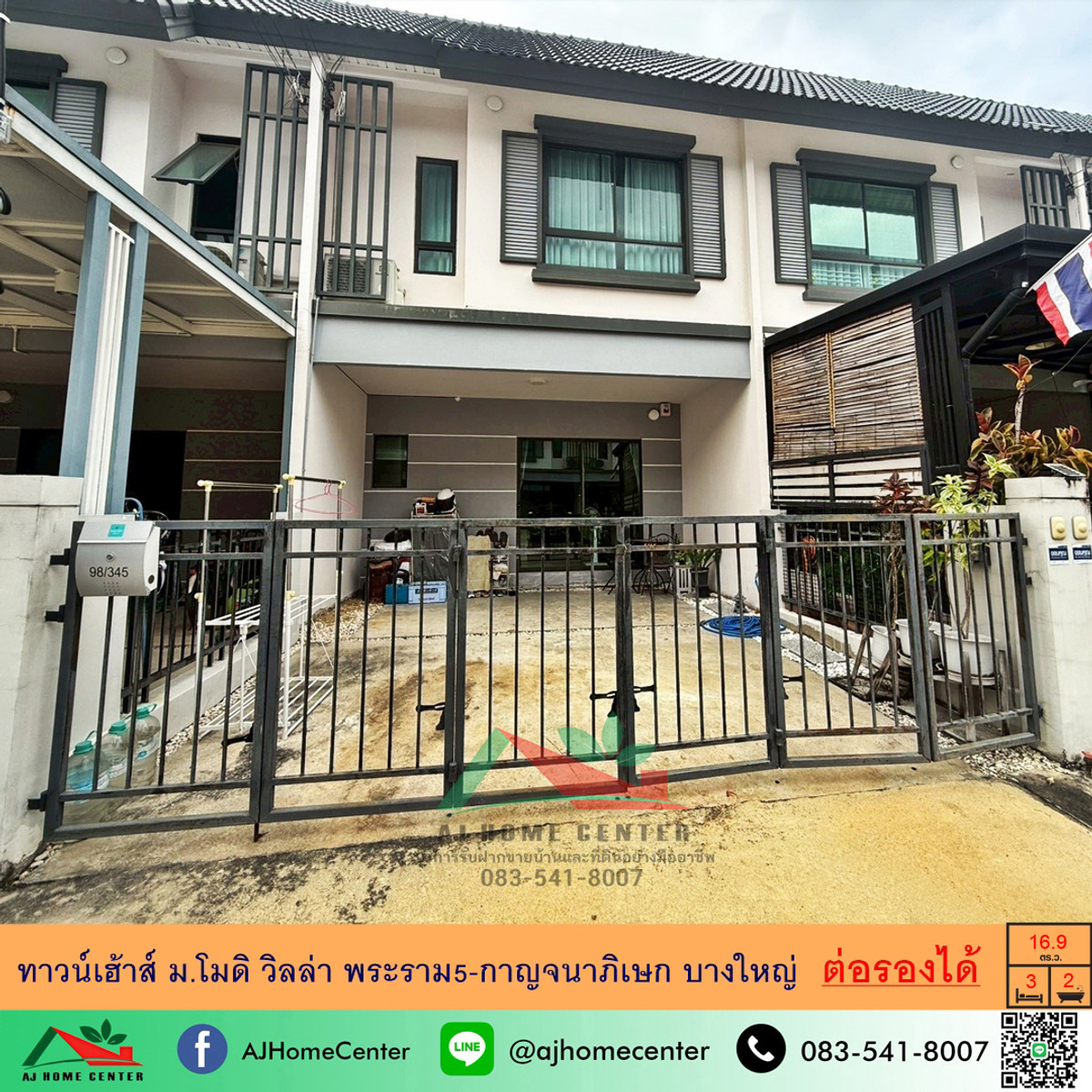 ขายทาวน์เฮ้าส์16.9ตรว. ม.โมดิ วิลล่า พระราม5-กาญจนาภิเษก บางใหญ่ ราคาพร้อมคุย . ทาวน์เฮ้าส์ 16.9 ตารางวา พื้นที่ใช้สอย 120 ตารางเมตร 3ห้องนอน 2ห้องน้ำ 1ห้องรับแขก 1ห้องครัว 2ที่จอดรถ - ต่อเติมหลังคาหลังบ้าน - เฟอร์นิเจอร์ยกลอยแล้วแต่ต่อรอง - วัสดุปูพื้น : ชั้นล่าง-แกรนิตโต้ / ชั้นบน-ลามิเนต - ค่าส่วนกลาง/เดือน 600 บาท . ที่ตั้งทรัพย์สิน : ม.โมดิ วิลล่า พระราม5-กาญจนาภิเษก ต.บางใหญ่ อ.บางใหญ่ จ.นนทบุรี พิกัดโครงการ : https://maps.app.goo.gl/5FLFuuxBeyt759jj6 . ราคาขาย 2,490,000 บาท . จุดเด่น - บ้านใหม่ สภาพดี บรรยากาศแบบยุโรป - โครงการคุณภาพในเครือ Property Perfect มี Concept - เข้า-ออกได้ 2 ซอย ทั้งจากซอยวัดพระเงิน และ ซอยกันตนา - เดินทางสะดวก ใกล้ถนนกาญจนาภิเษก, ถนนบางกรวย-ไทรน้อย และทางพิเศษศรีรัช-วงแหวนรอบนอก - ใกล้รถไฟฟ้าสายสีม่วง สถานีตลาดบางใหญ่ - ใกล้มอเตอร์เวย์ บางใหญ่-กาญจนบุรี - สิ่งอำนวยความสะดวกในโครงการครบครัน - บริการจัดสินฟรีเชื่อโดยมืออาชีพ - มีบริการรับผ่อนตรงกับบริษัทชั้นนำ . สิ่งอำนวยความสะดวกภายในโครงการ • คลับเฮ้าส์ • สระว่ายน้ำ • ฟิตเนส • สวนสาธารณะ • สนามเด็กเล่น • Jogging Track • เข้า-ออกโครงการระบบ Access Card Control • ระบบ CCTV • รปภ. 24 ชม. • Smart Home Automation . สถานที่ใกล้เคียง • Plus Mall บางใหญ่ • เซ็นทรัล เวสต์เกต • อิเกีย บางใหญ่ • Big C • Index Living Mall • รพ.บางใหญ่ • รพ.เกษมราษฎร์ อินเตอร์เนชั่นแนล • ตลาดบางใหญ่ . สนใจติดต่อ คุณจ๊ะจ๋า เบอร์โทรศัพท์ คลิกเพื่อดูเบอร์โทรติดต่อ / คลิกเพื่อดูเบอร์โทรติดต่อ / คลิกเพื่อดูเบอร์โทรติดต่อ